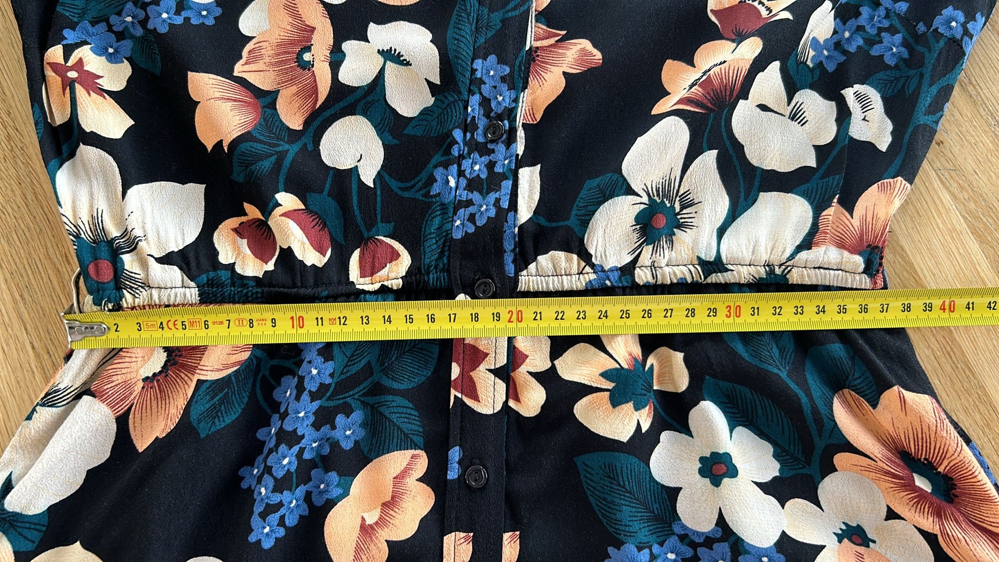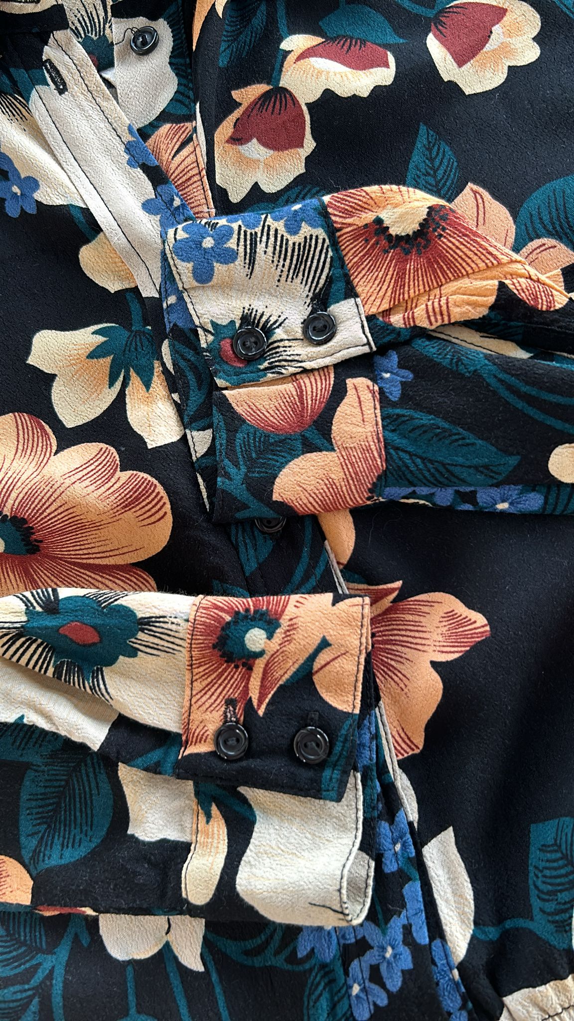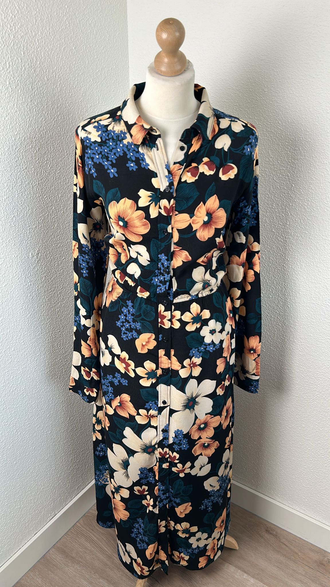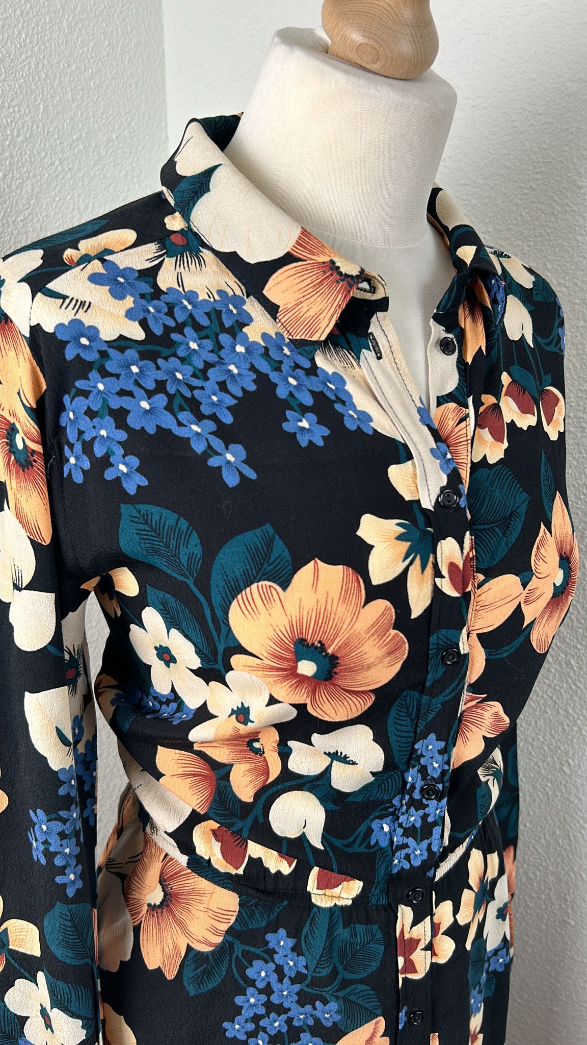 - Zwart met pastel bloemen print in creme beige oranje blauw geel