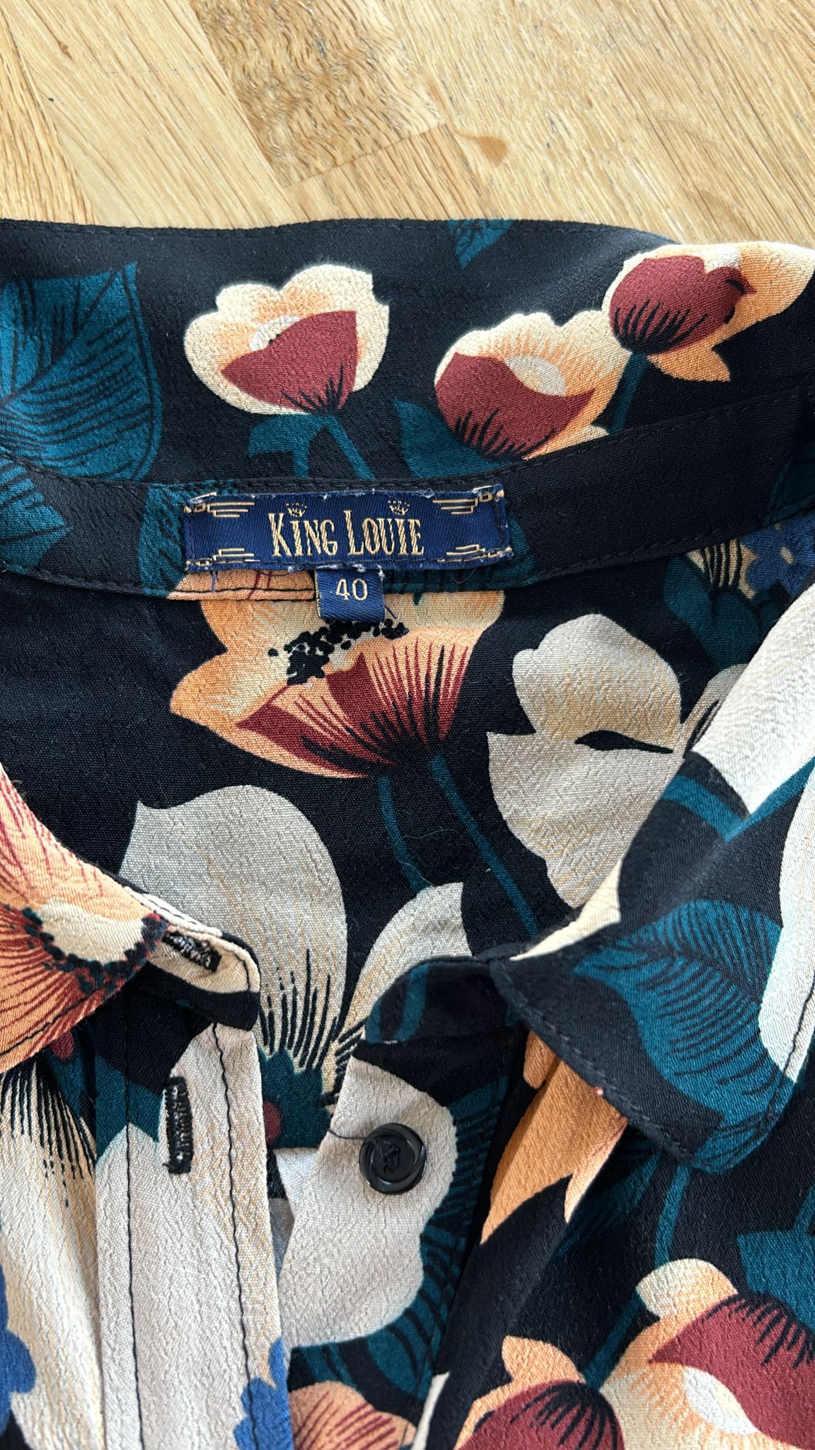 - Retro blouse jurk, doorknoop jurk, midi lengte