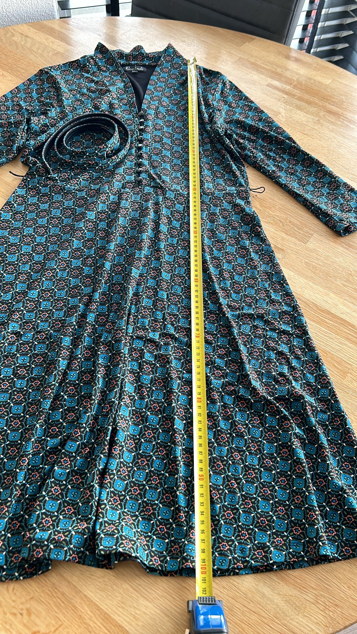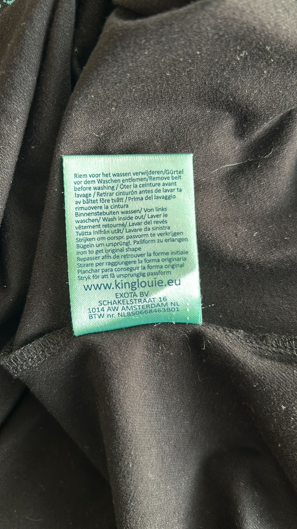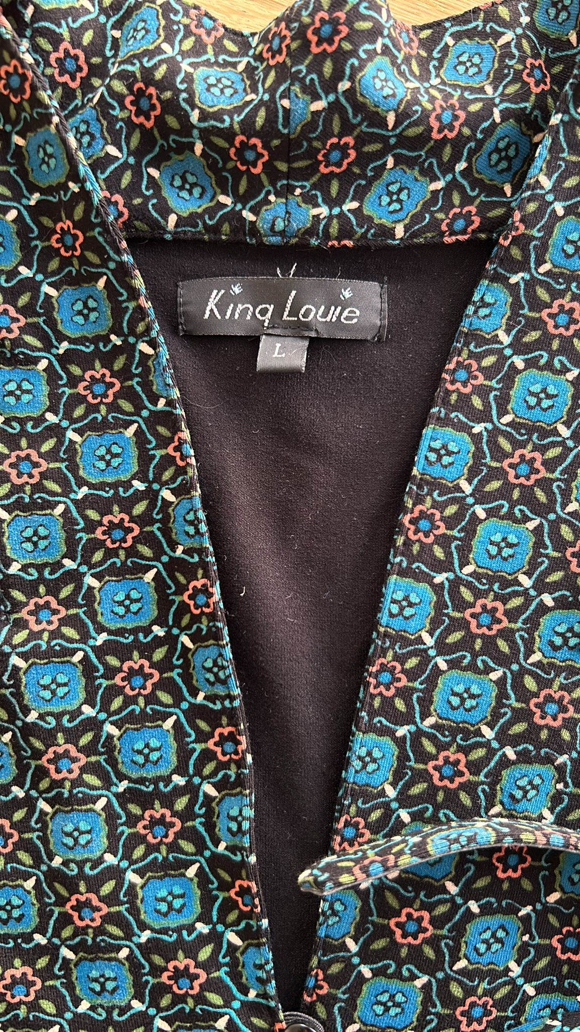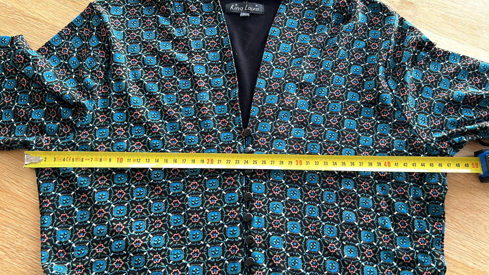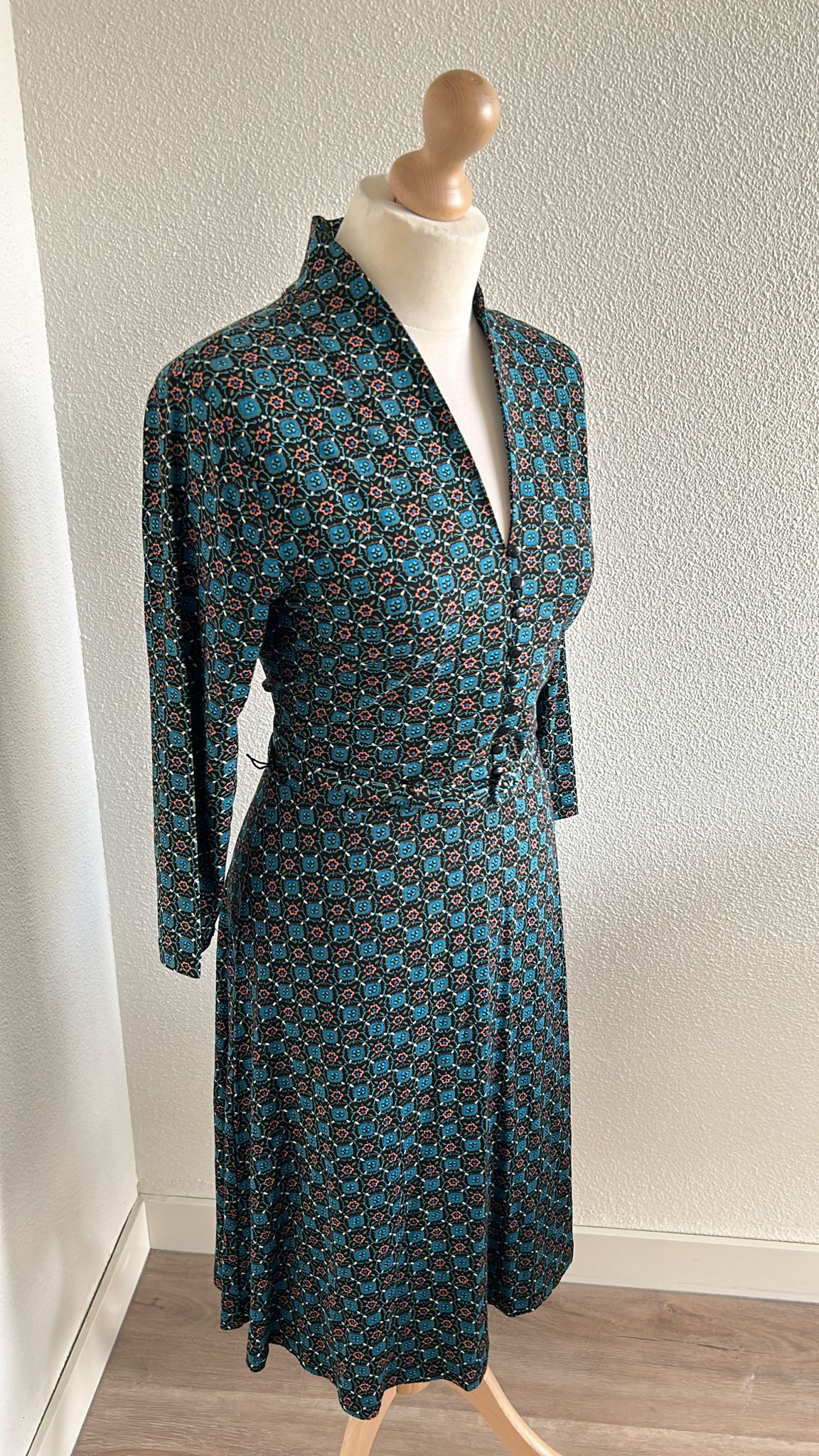 - Zwart met blauwe, creme wit en wijnrode retro print