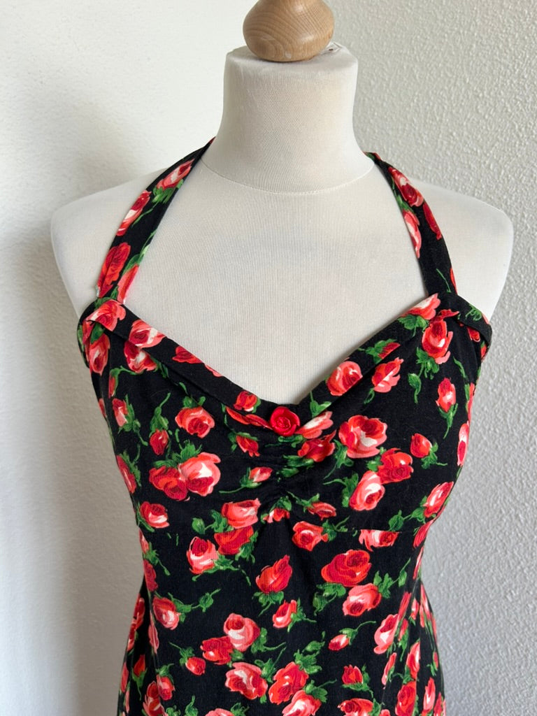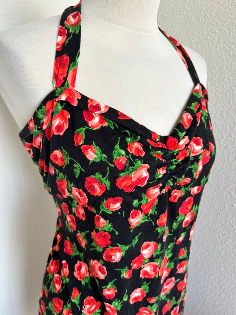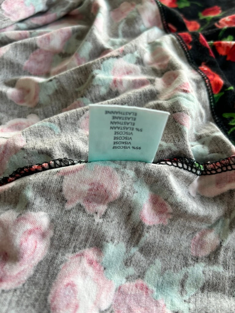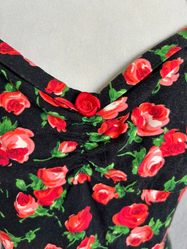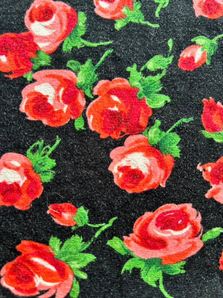 - Zwart met lieve rozen bloemen print in rood roze en groen