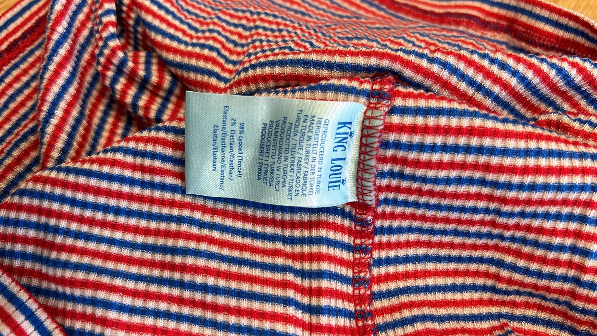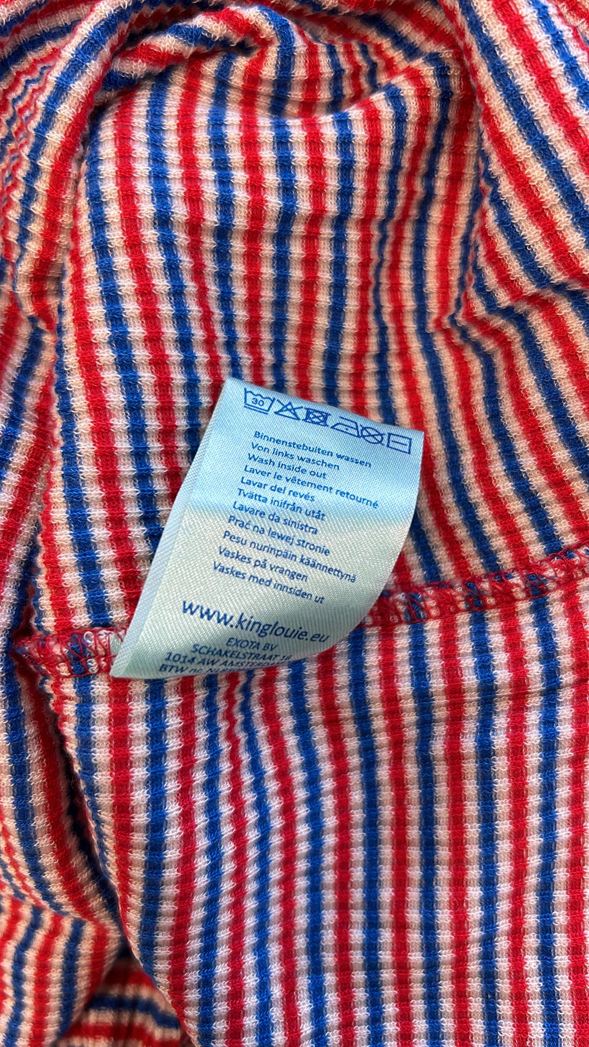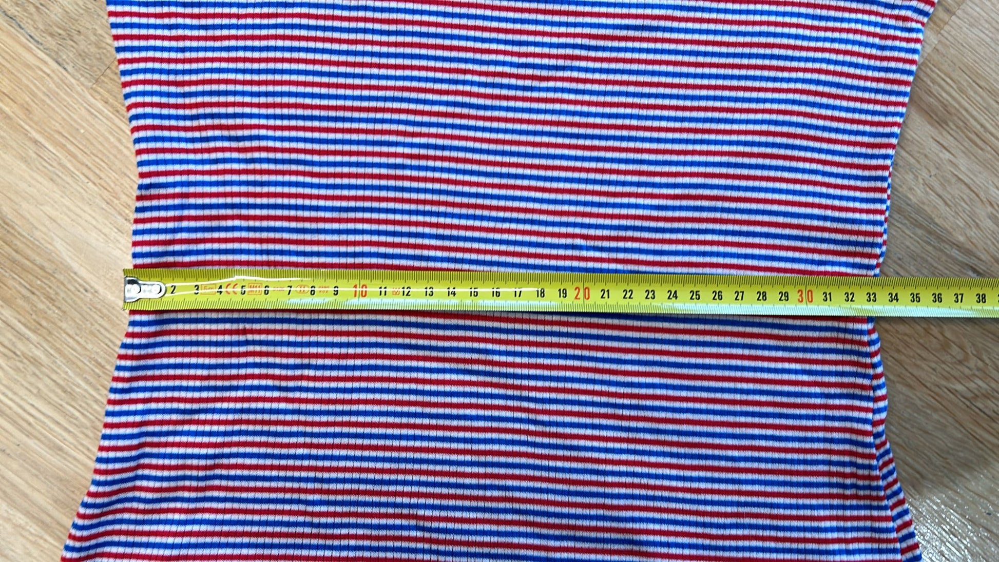 - Rood wit blauwe streepjes met ribbetje in de stof