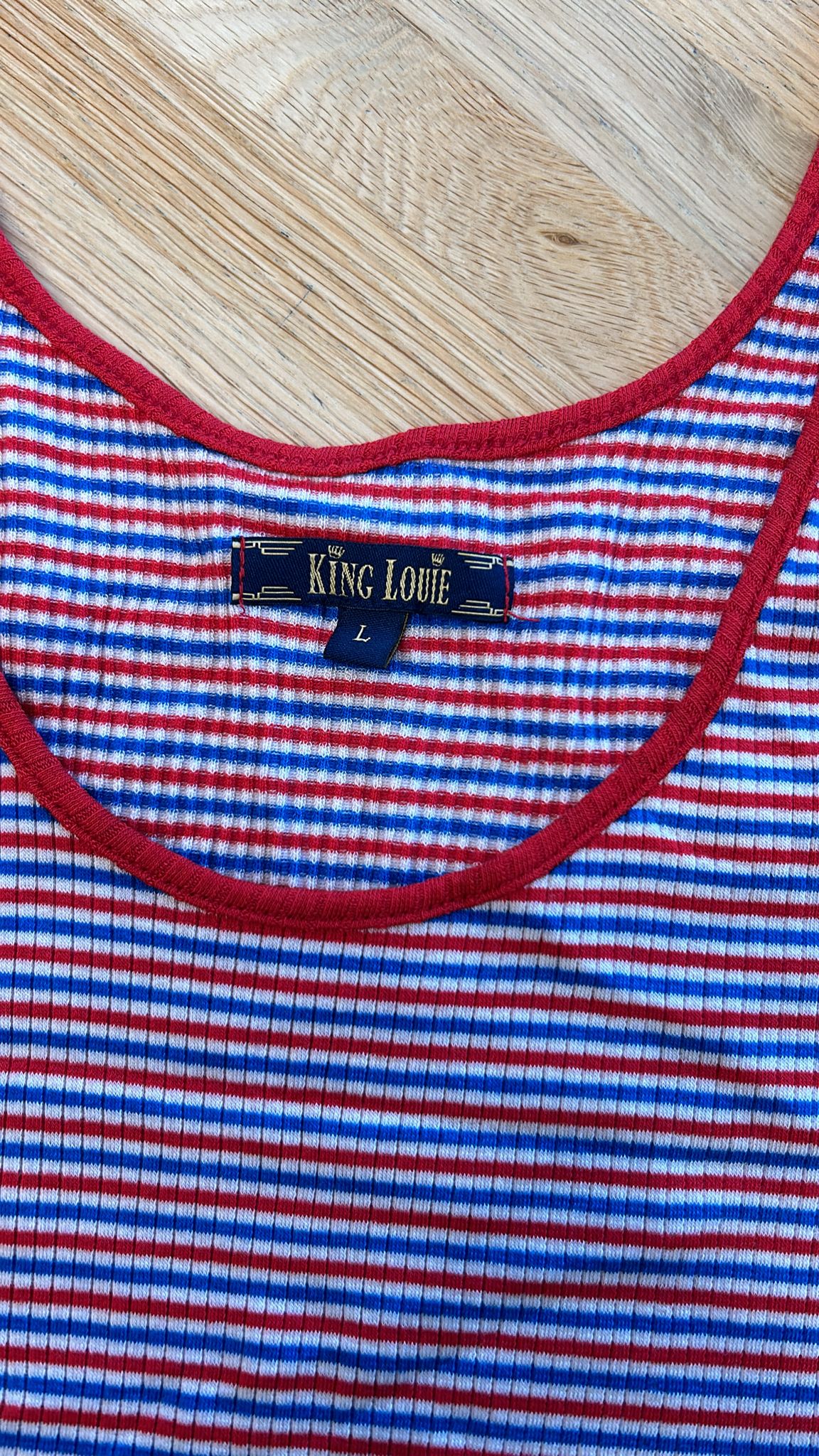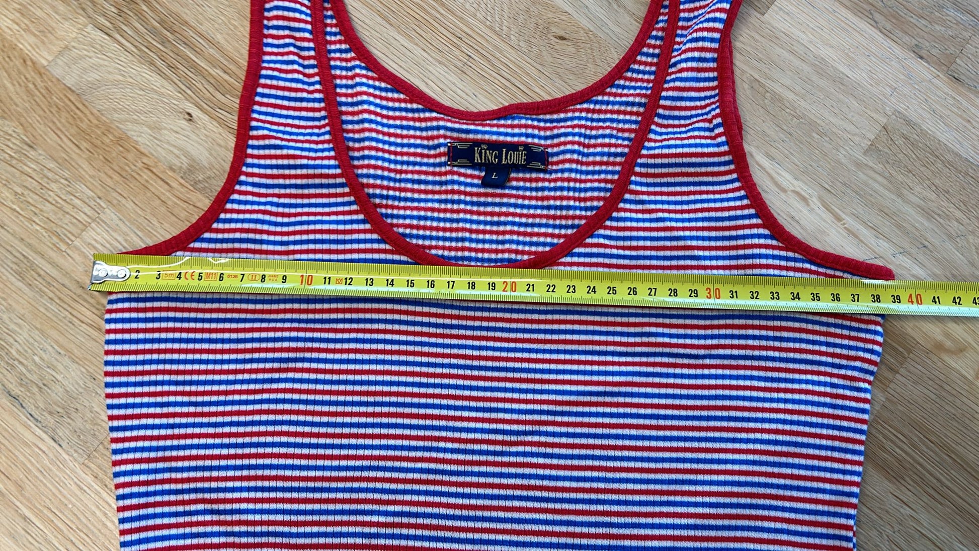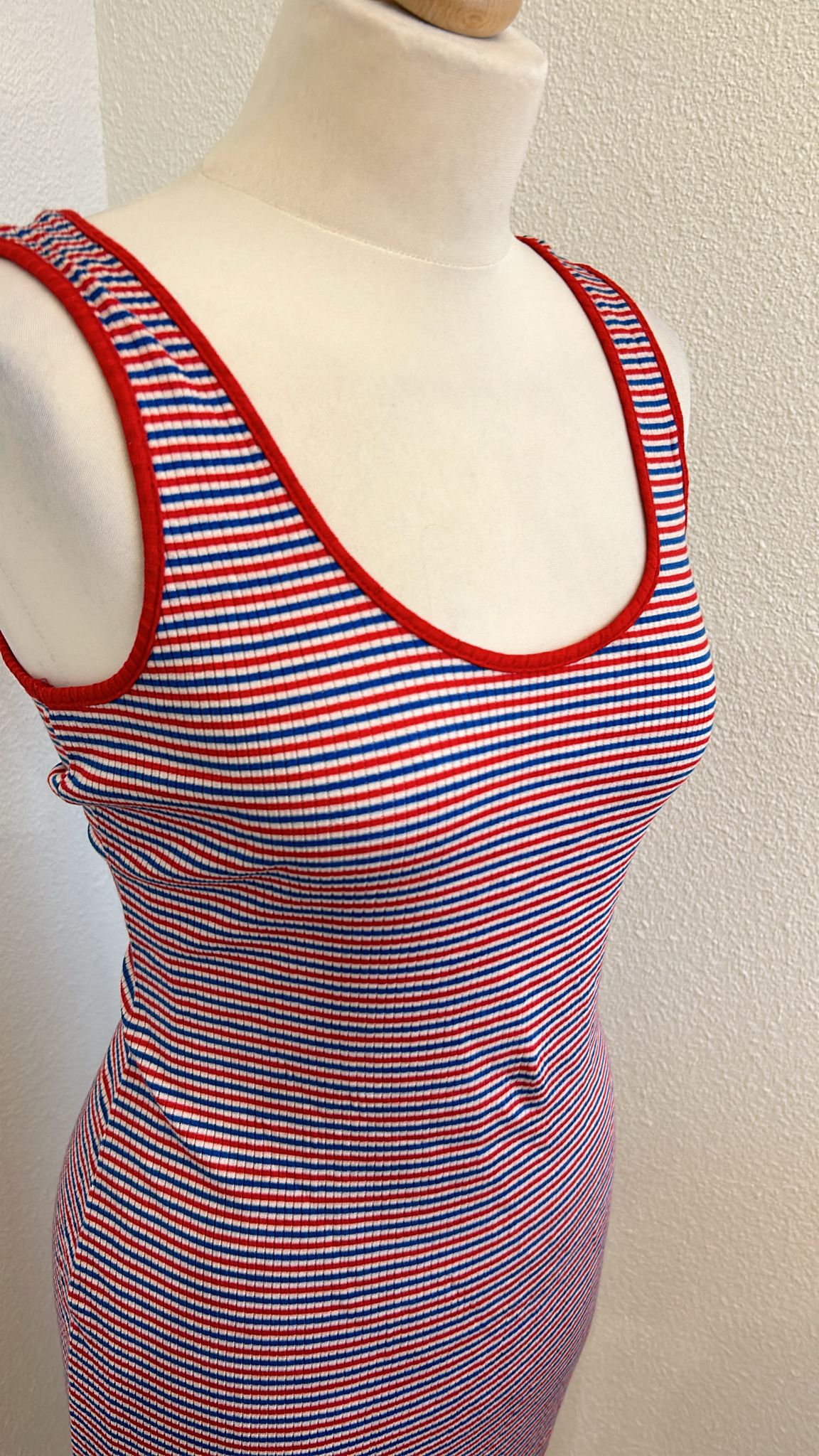 - Rood wit blauwe streepjes met ribbetje in de stof