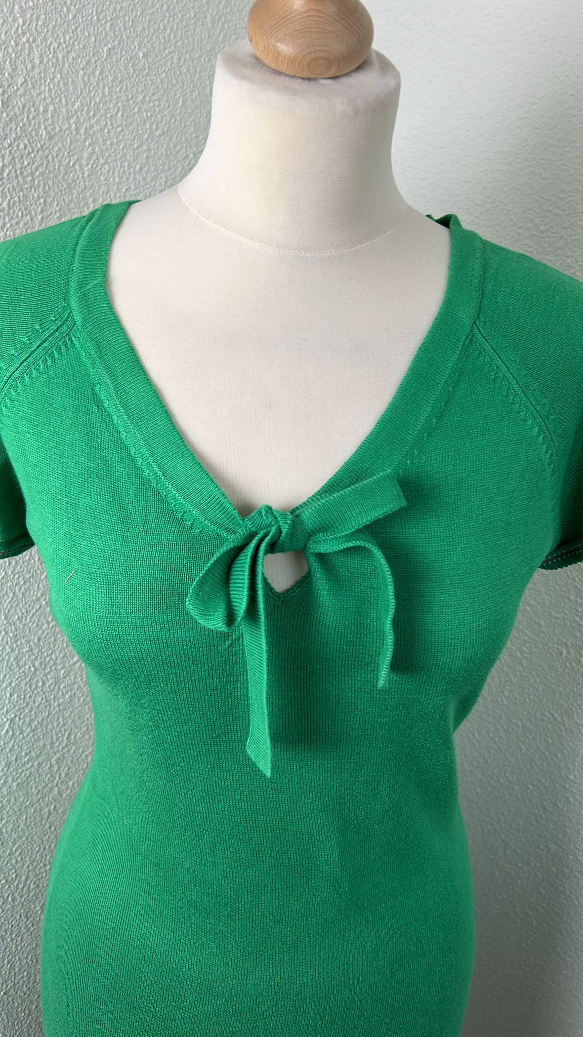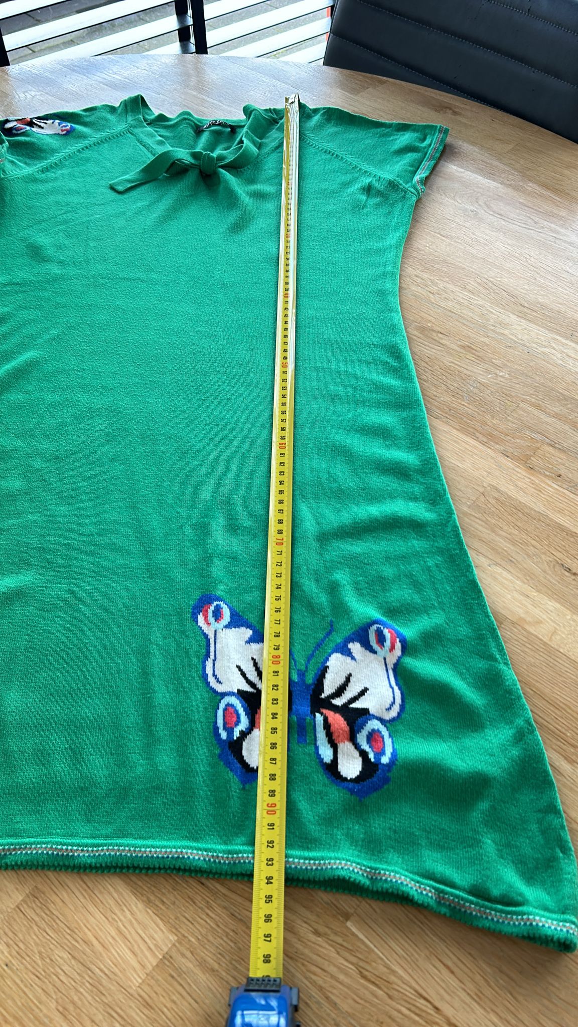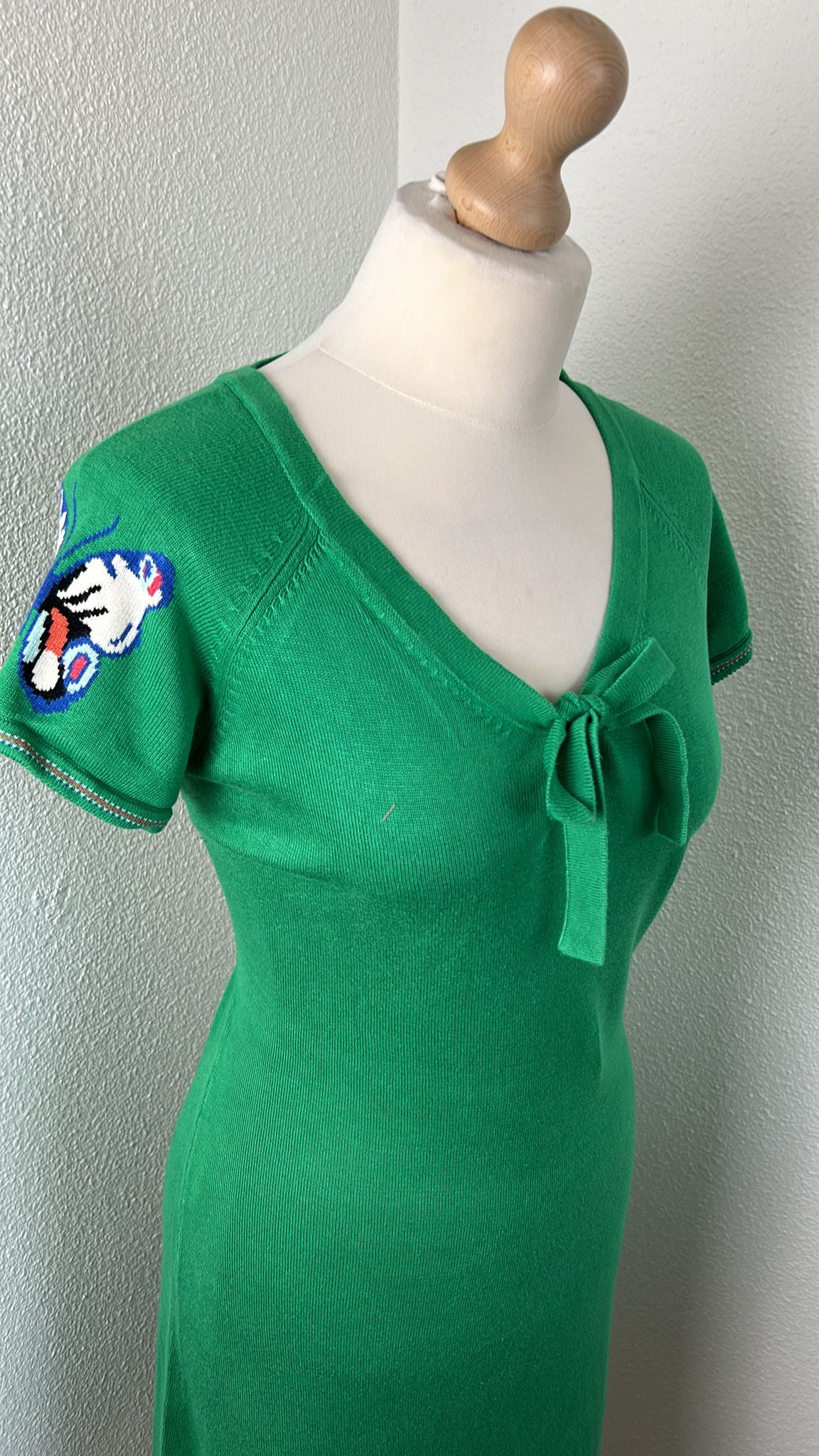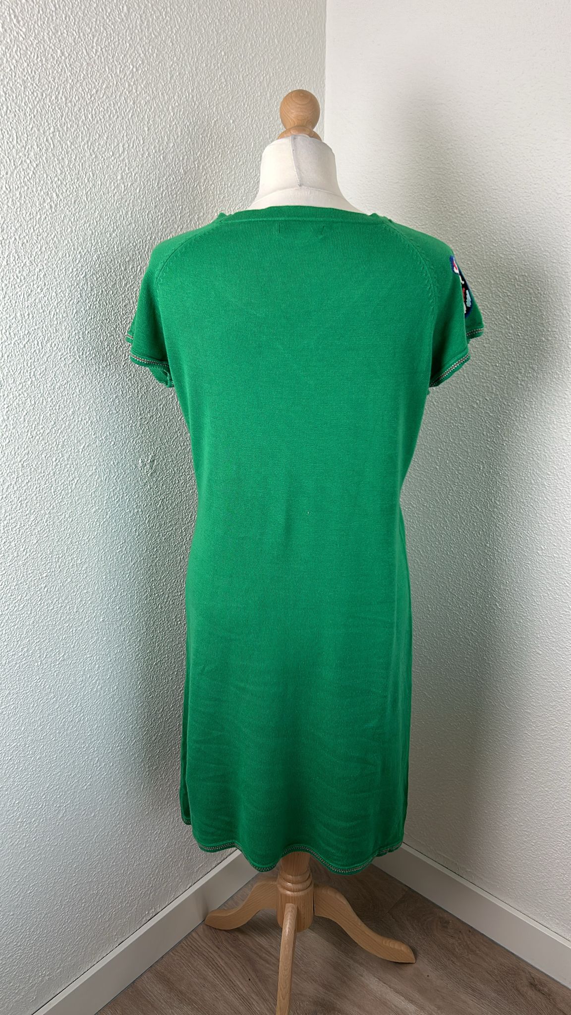 - Gras groen met zwart witte vlinder patroon op mouw en onderin de rok