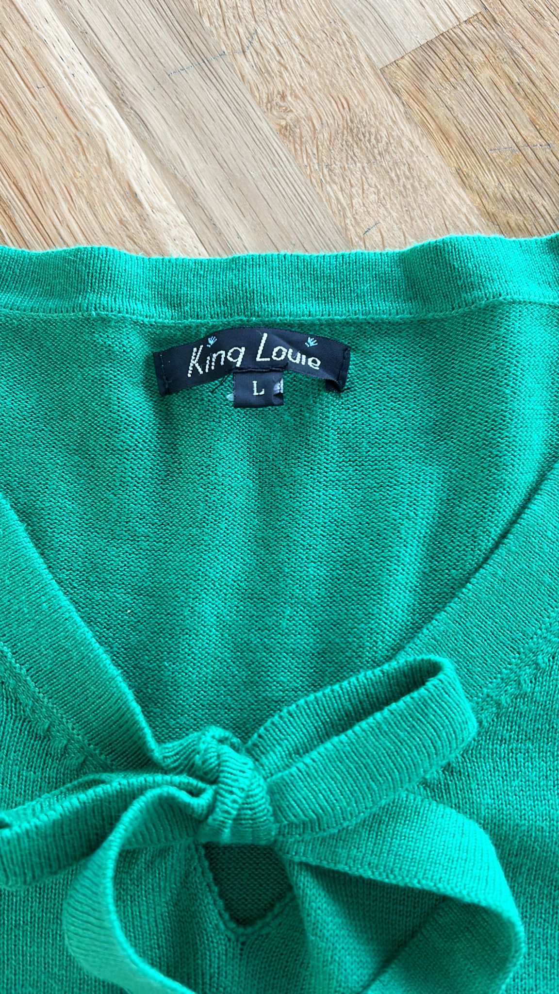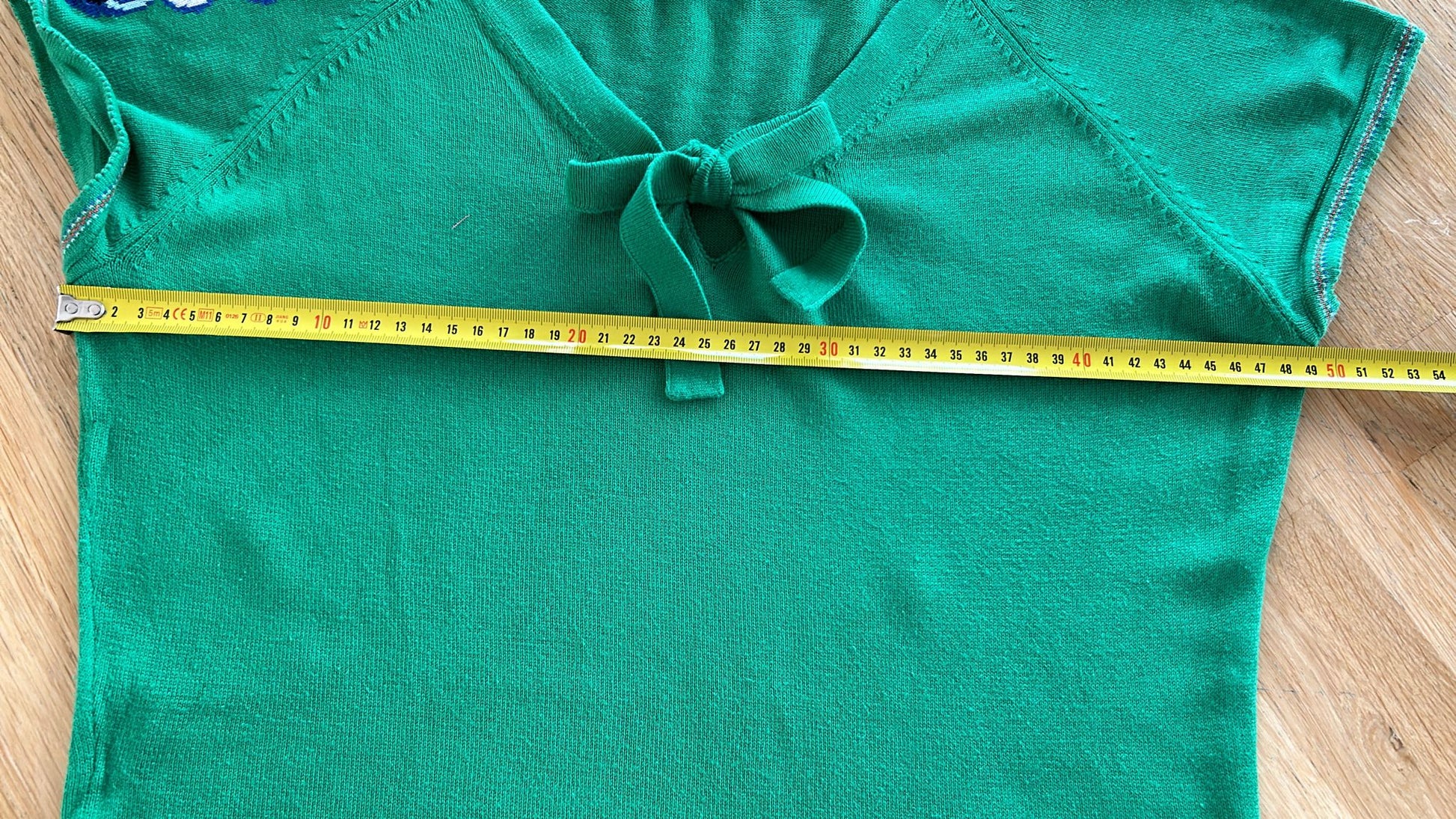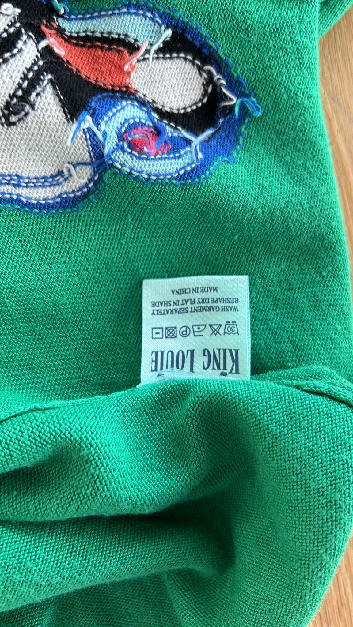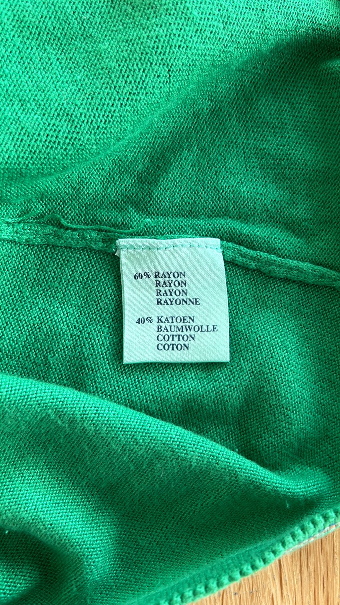 - Gras groen met zwart witte vlinder patroon op mouw en onderin de rok