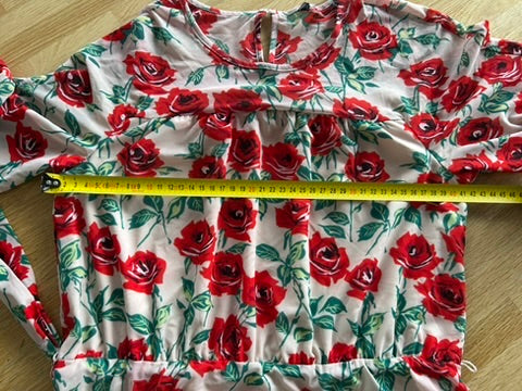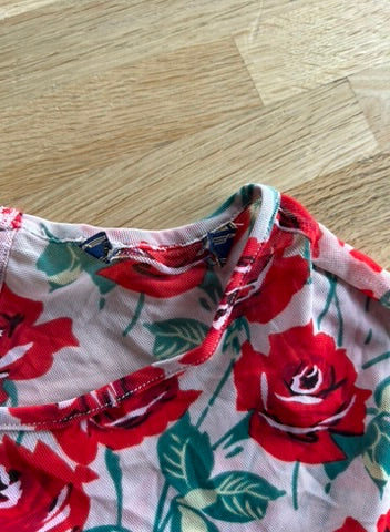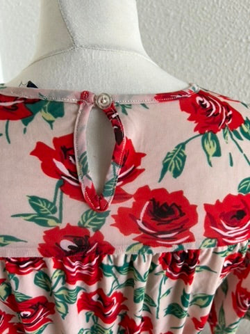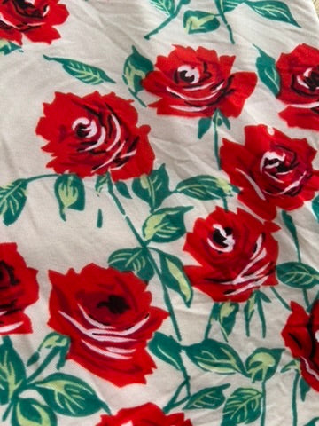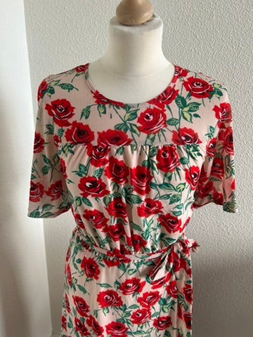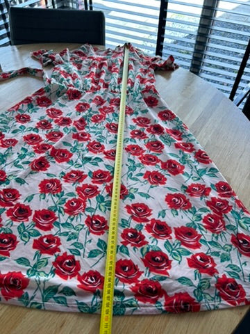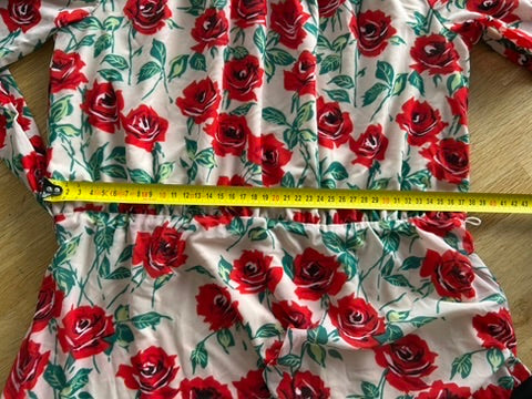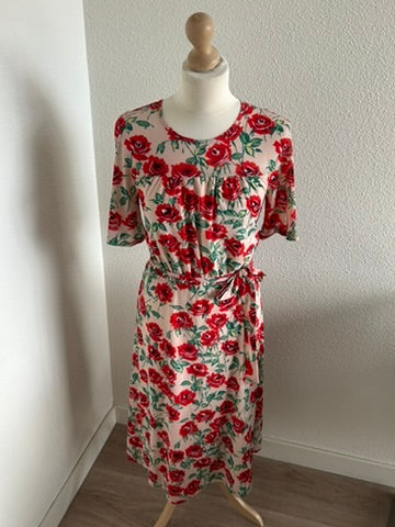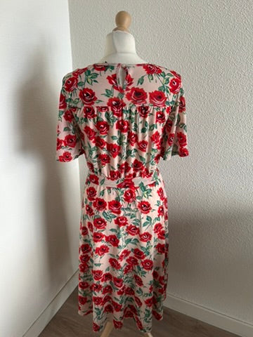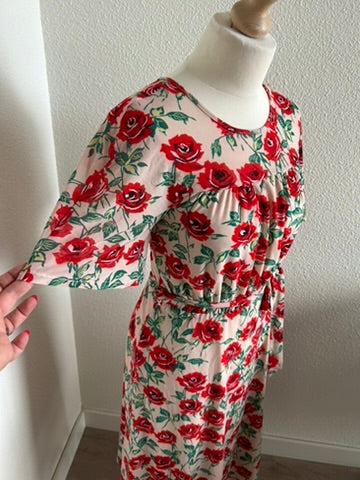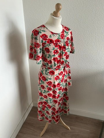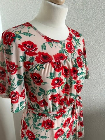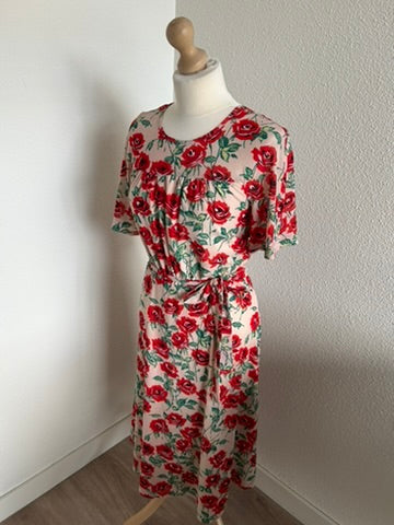 - Creme witte jurk met retro rode en groene rozen/bloemen print
