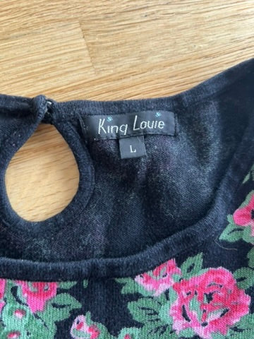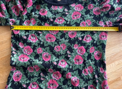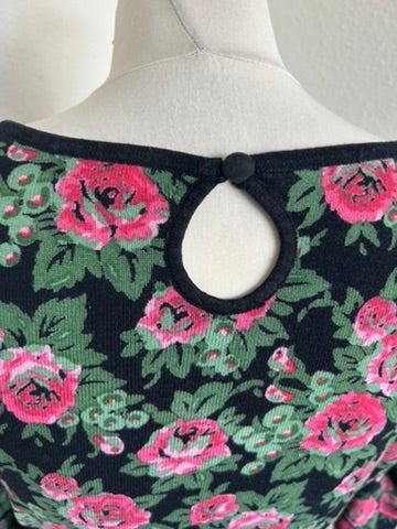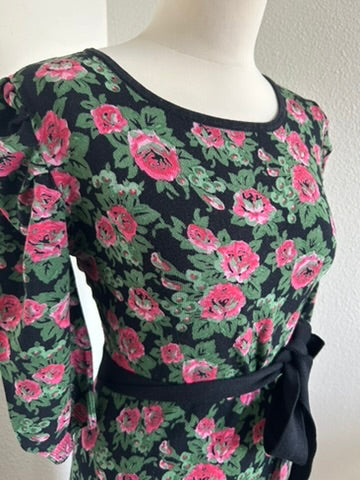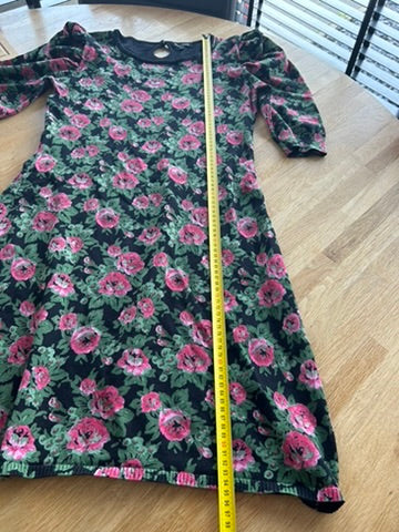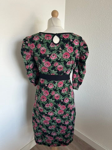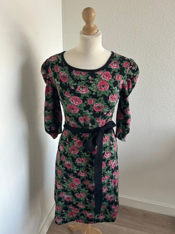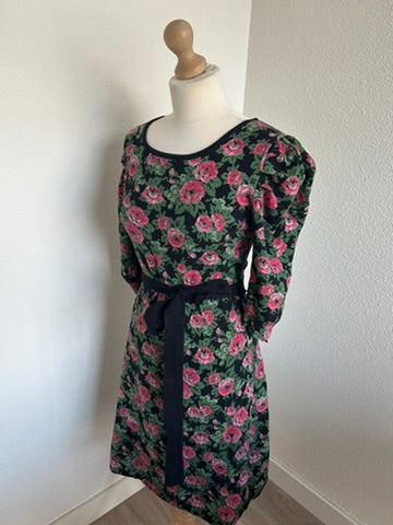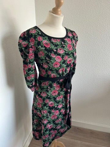 - Leuke winter jurk in zwart met roze groene rozen/bloemetjes print