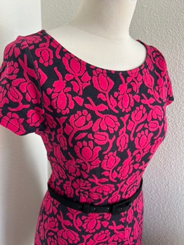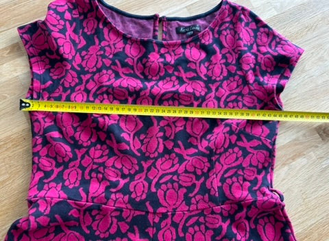 - Zwart met fuchsia roze rozen/bloemen print