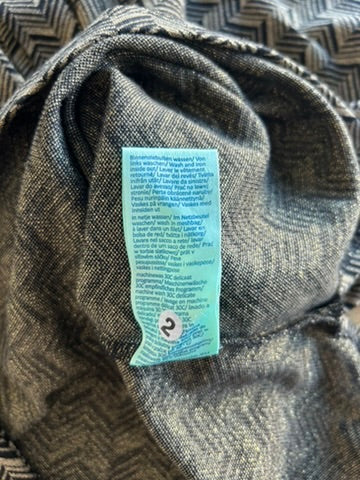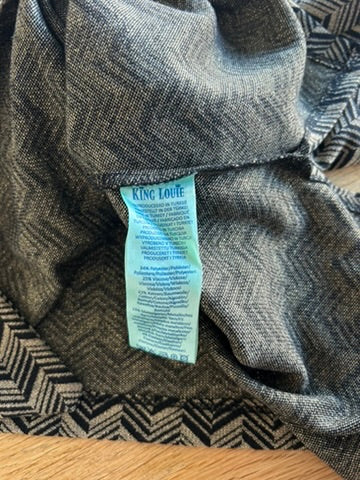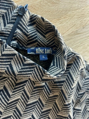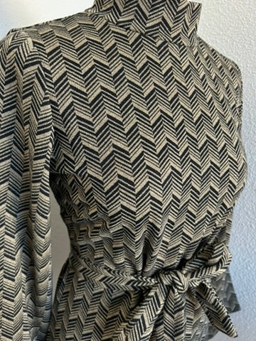 - Kraagje, rits in de nek, lange mouwen, knooplint rond het middel, langer model/tuniek