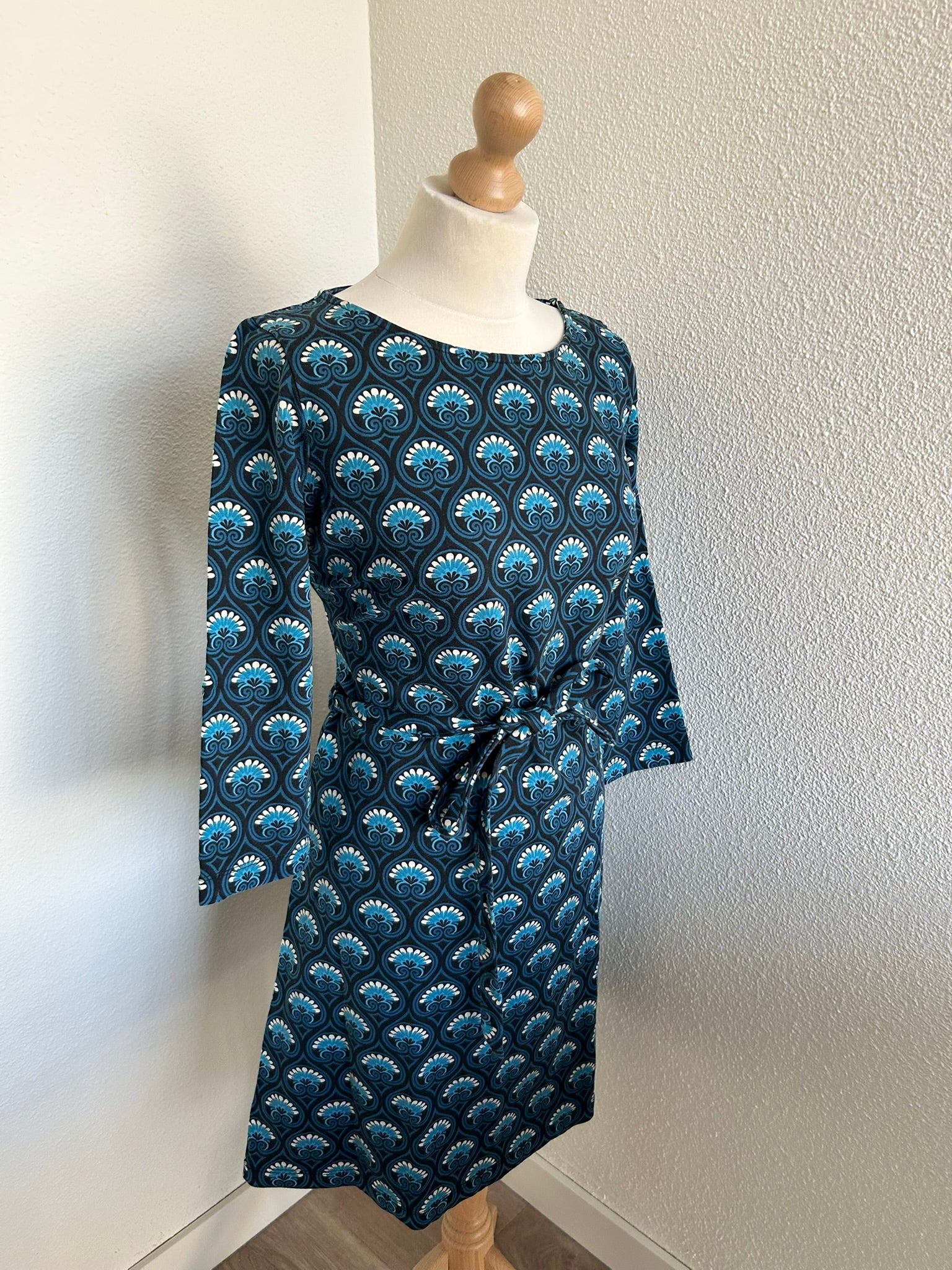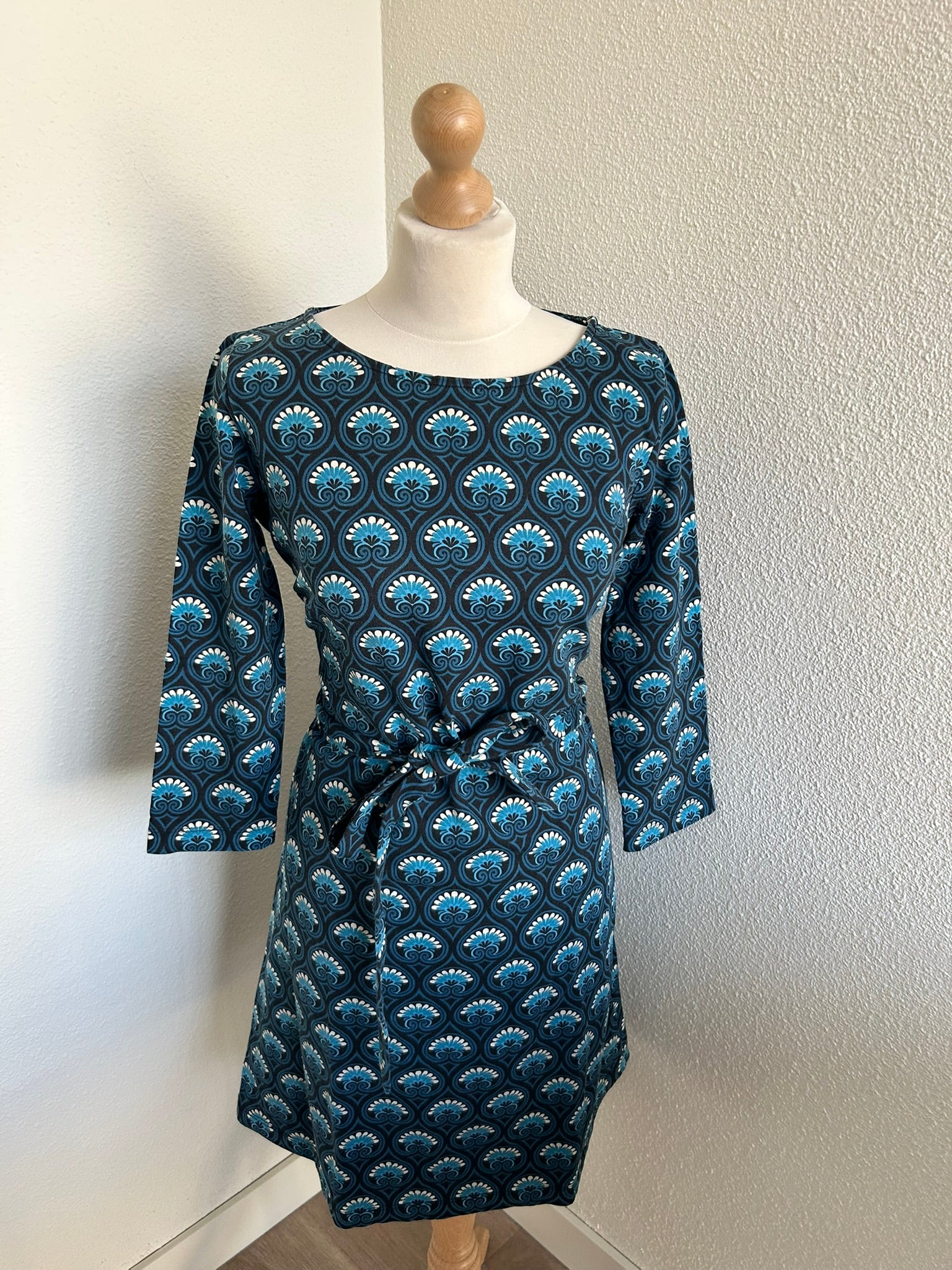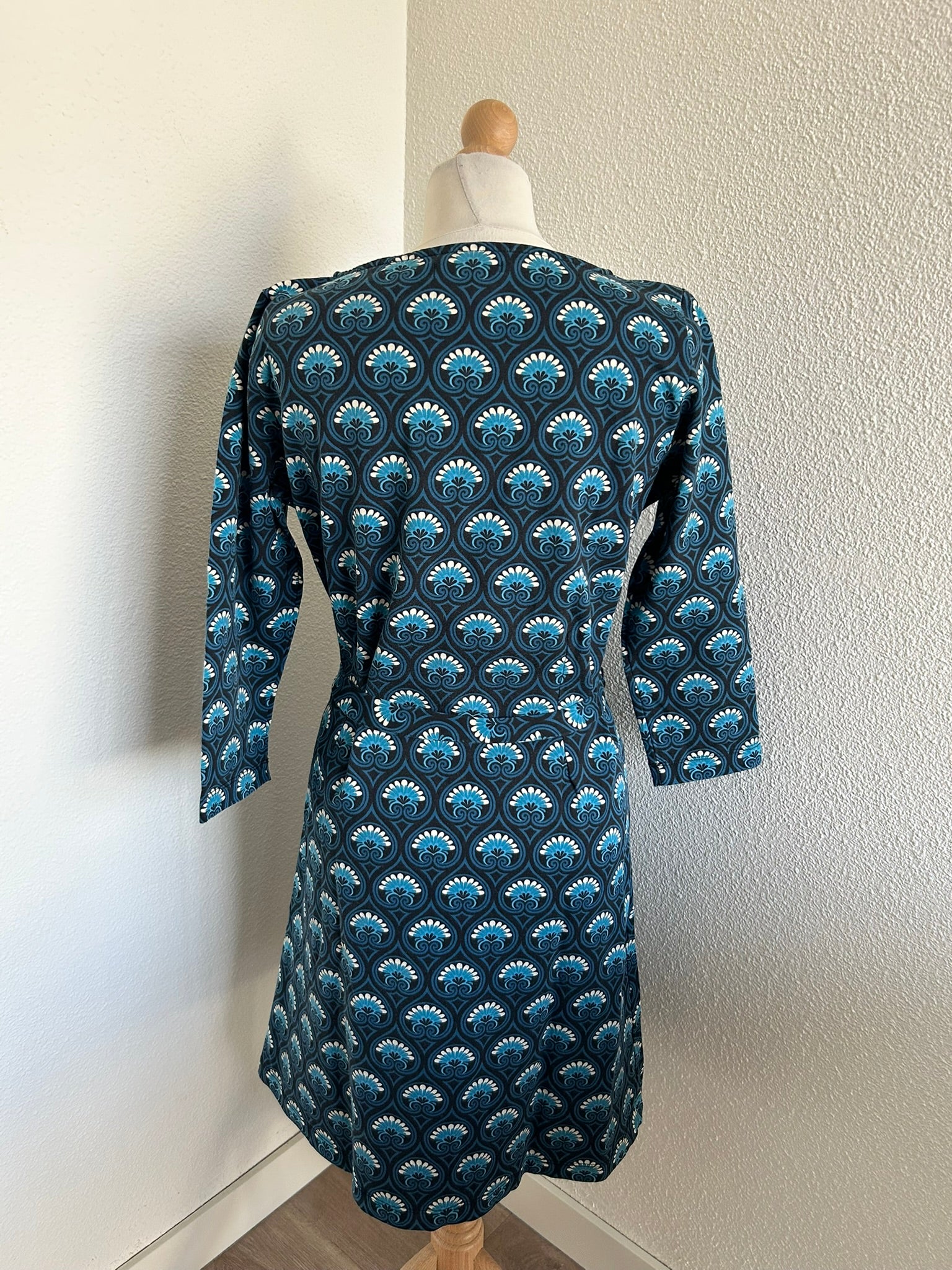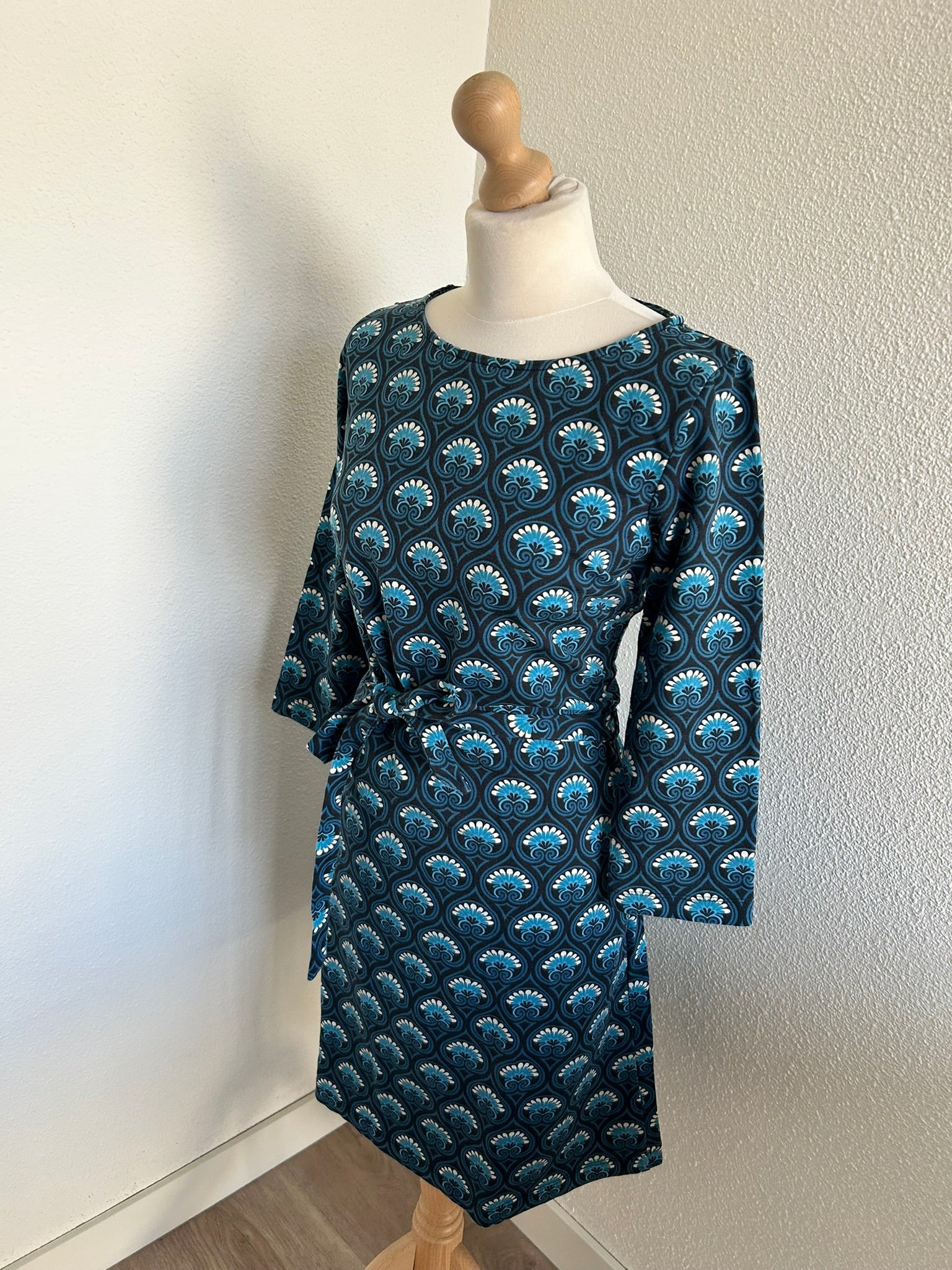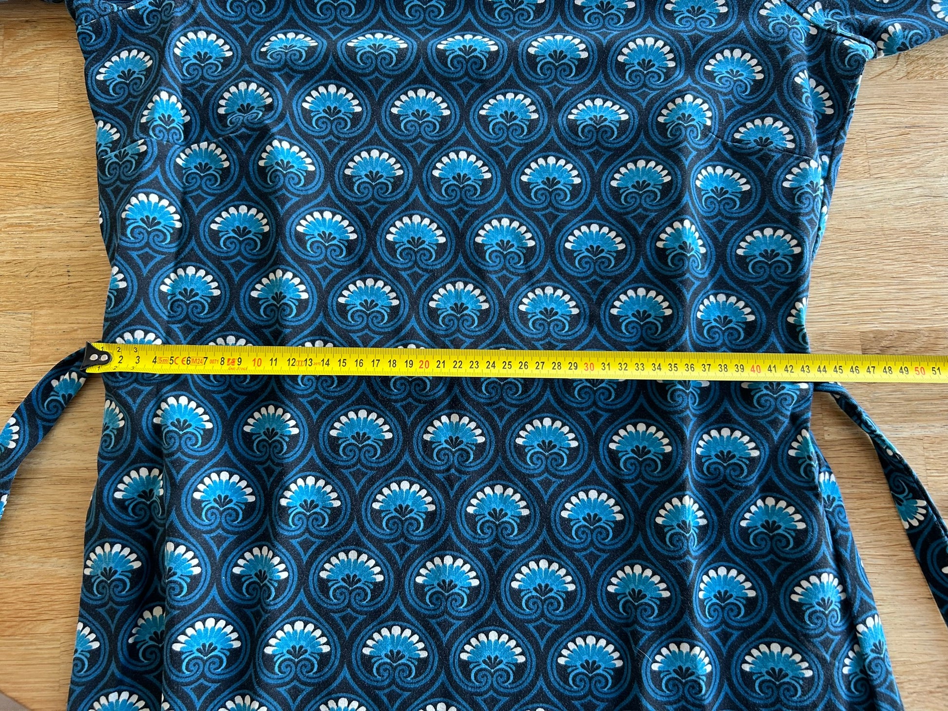 - Leuke retro jurk in donkerblauw, marine met beetje bloemen print in creme wit en zwart