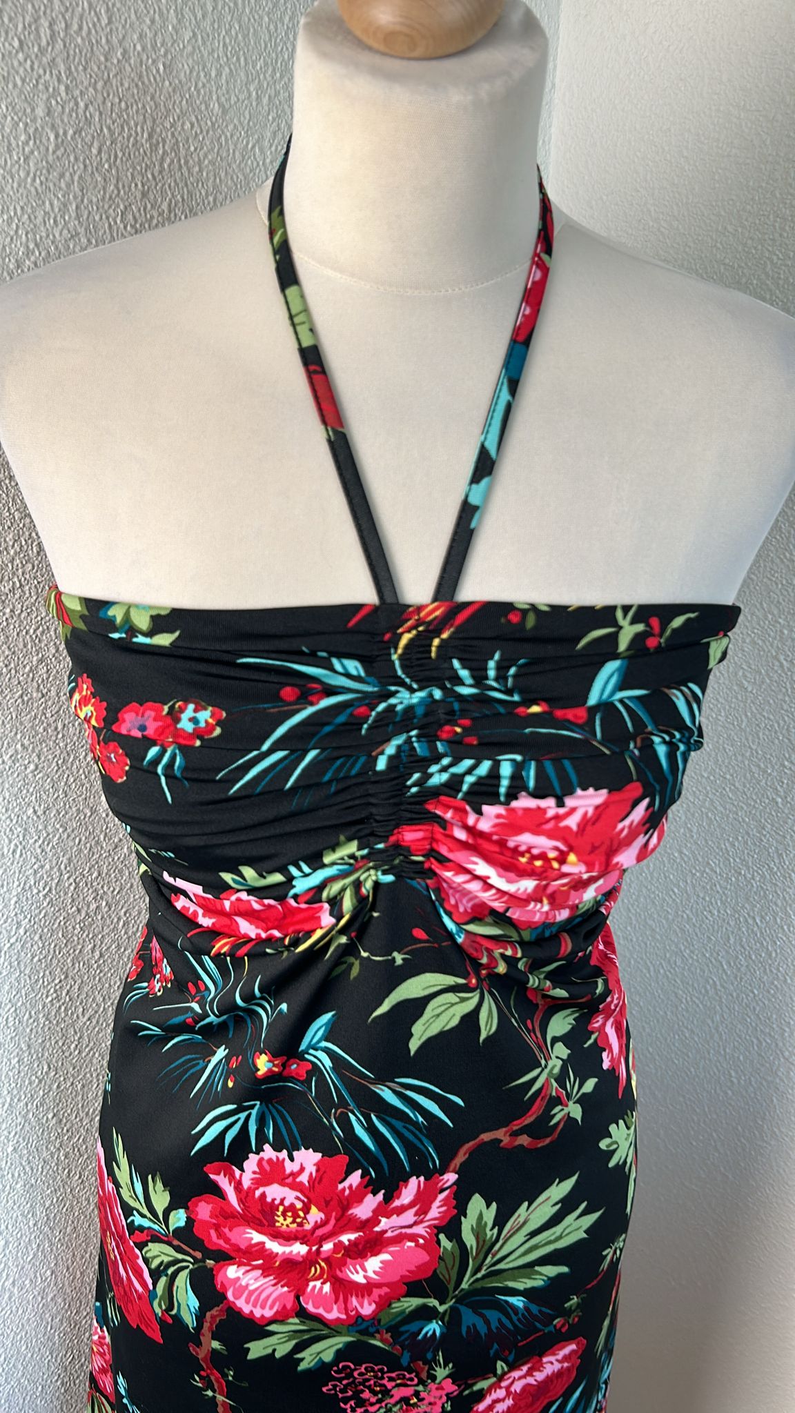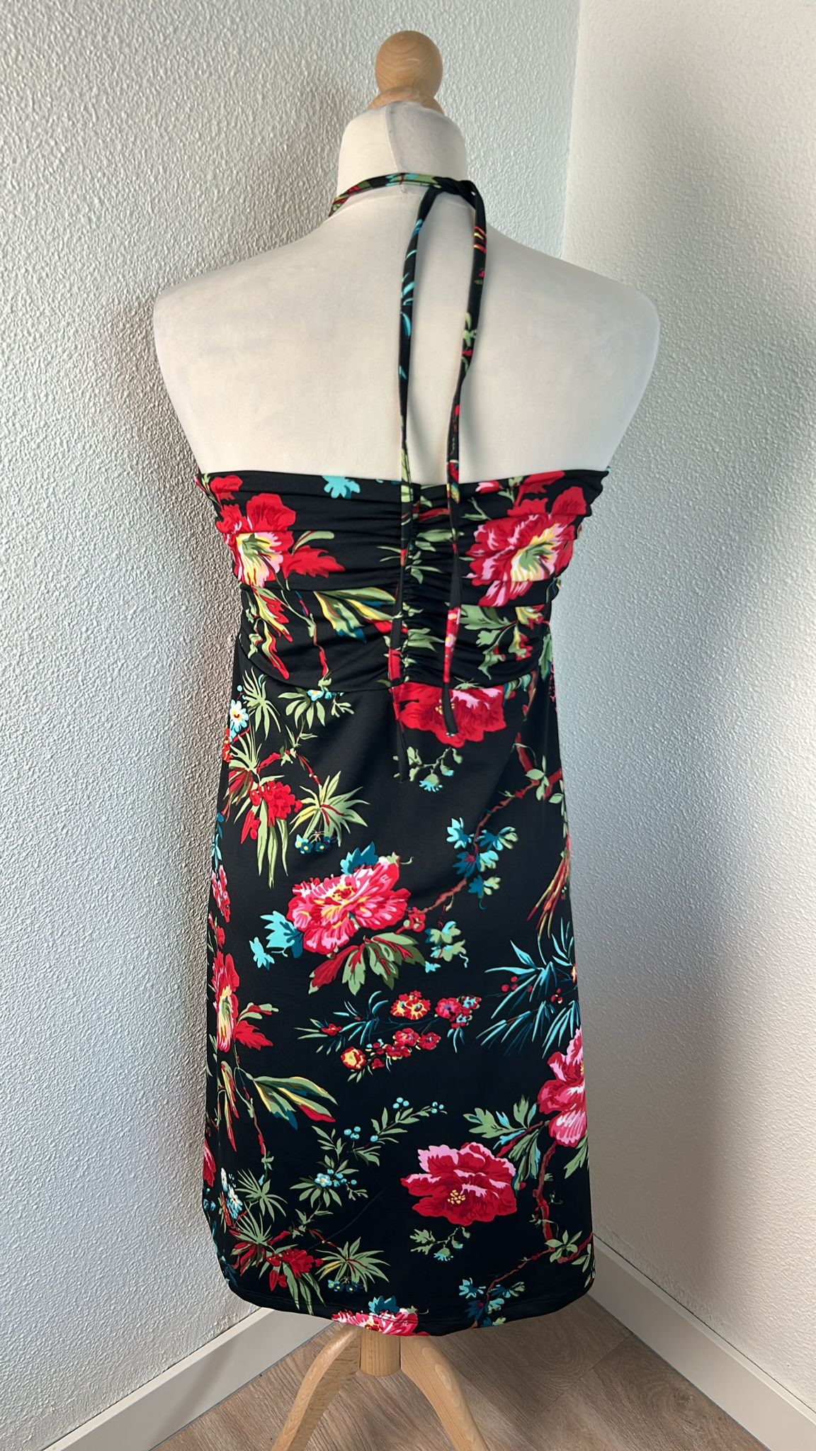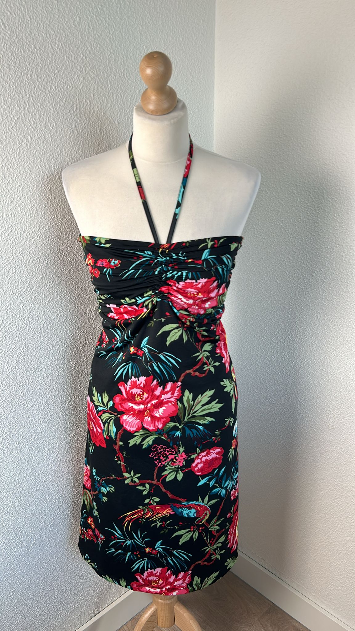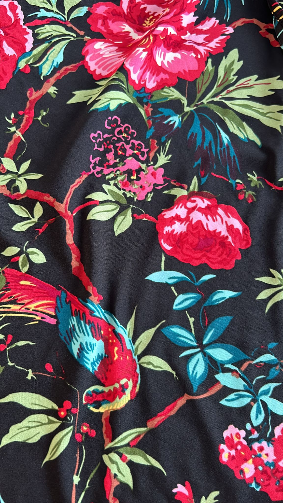 - Zwart met leuke print bloemen en vogels in felle kleuren