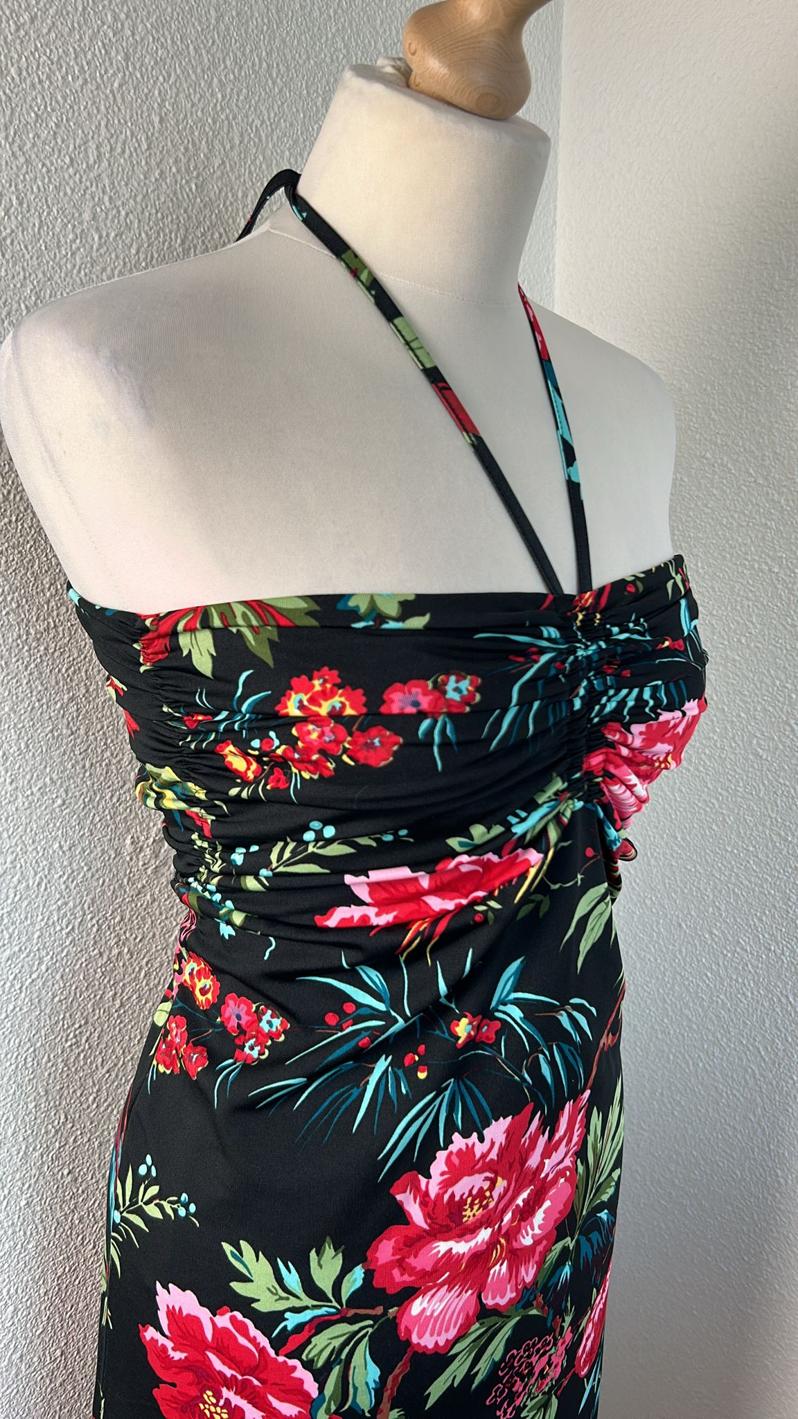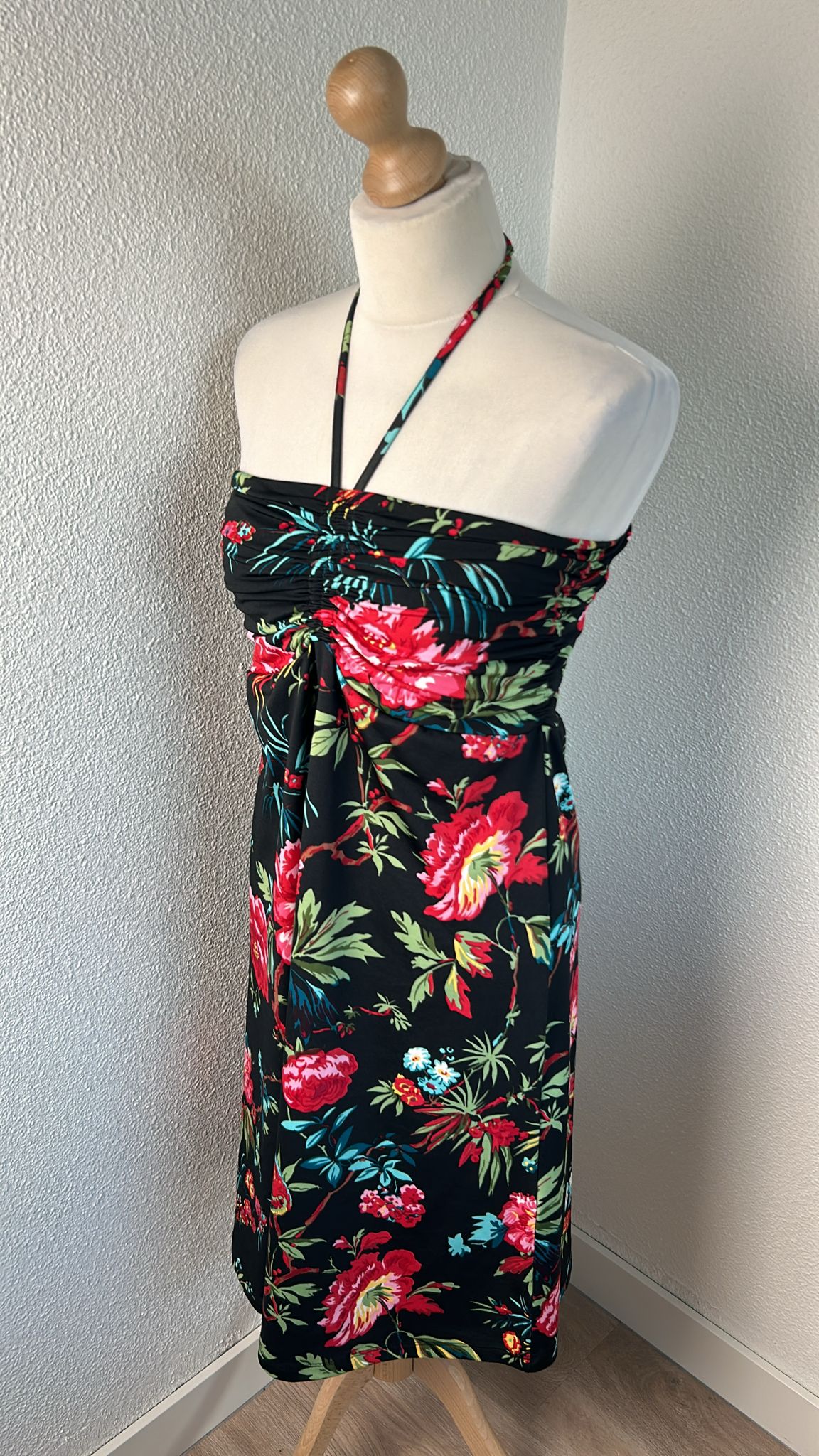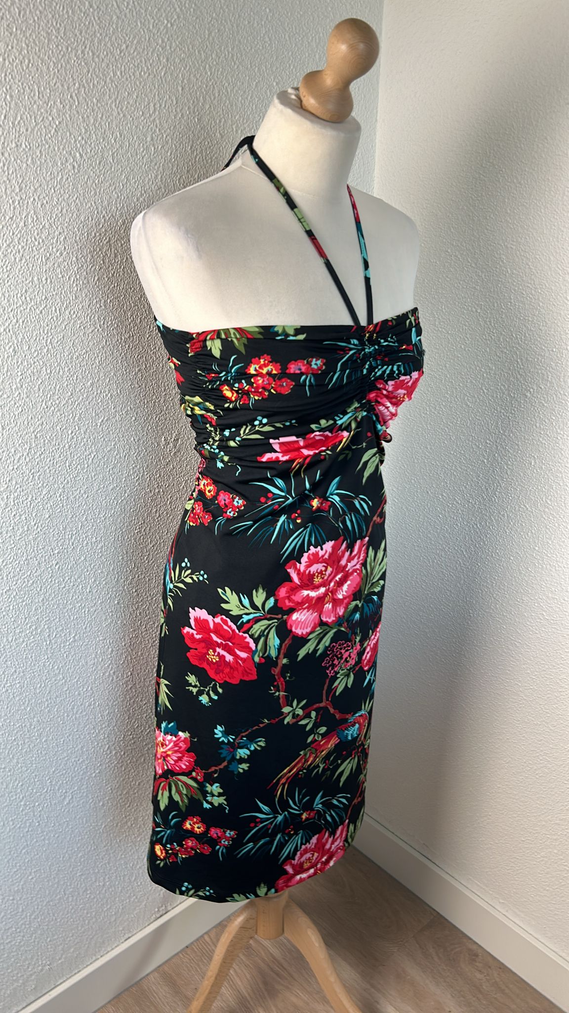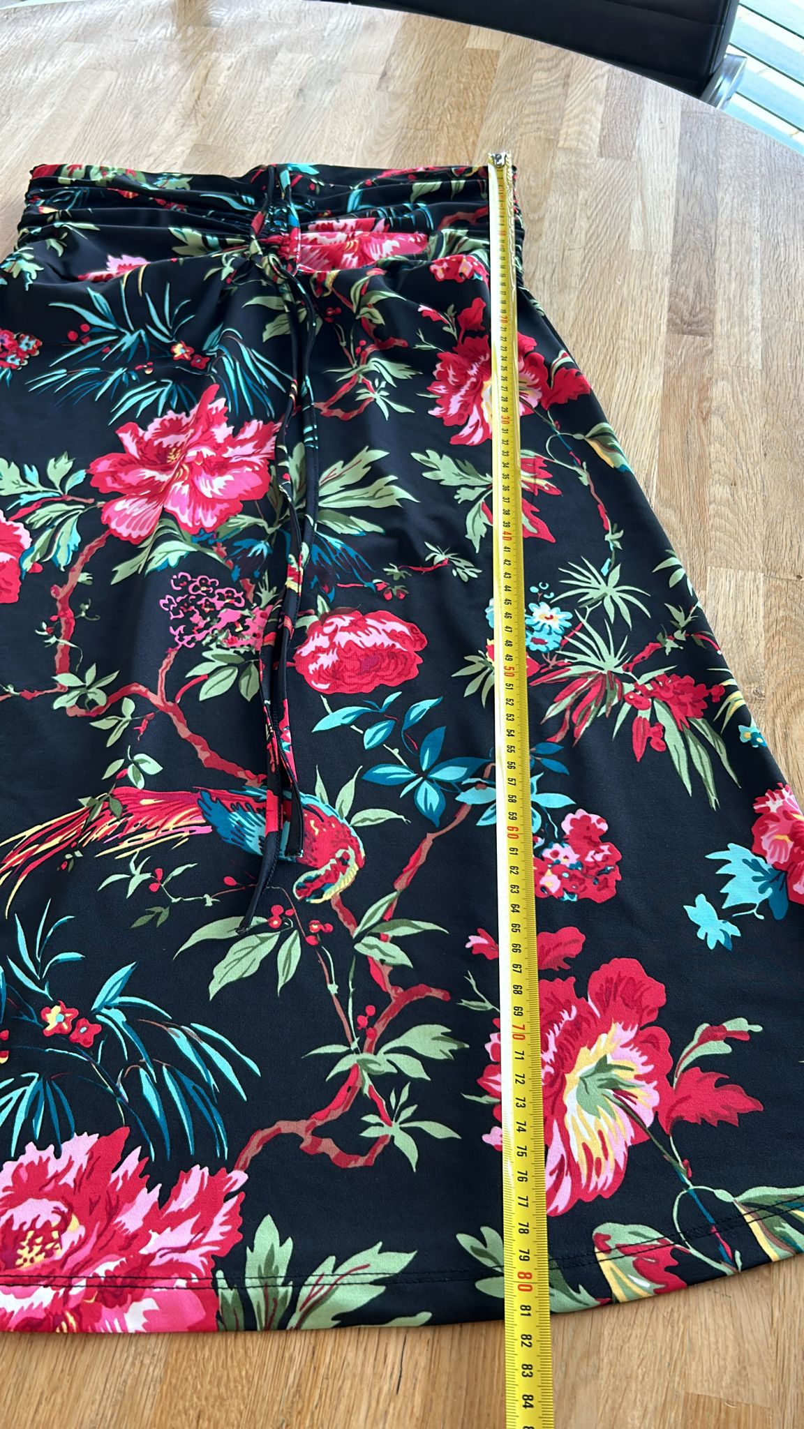 - Zwart met leuke print bloemen en vogels in felle kleuren