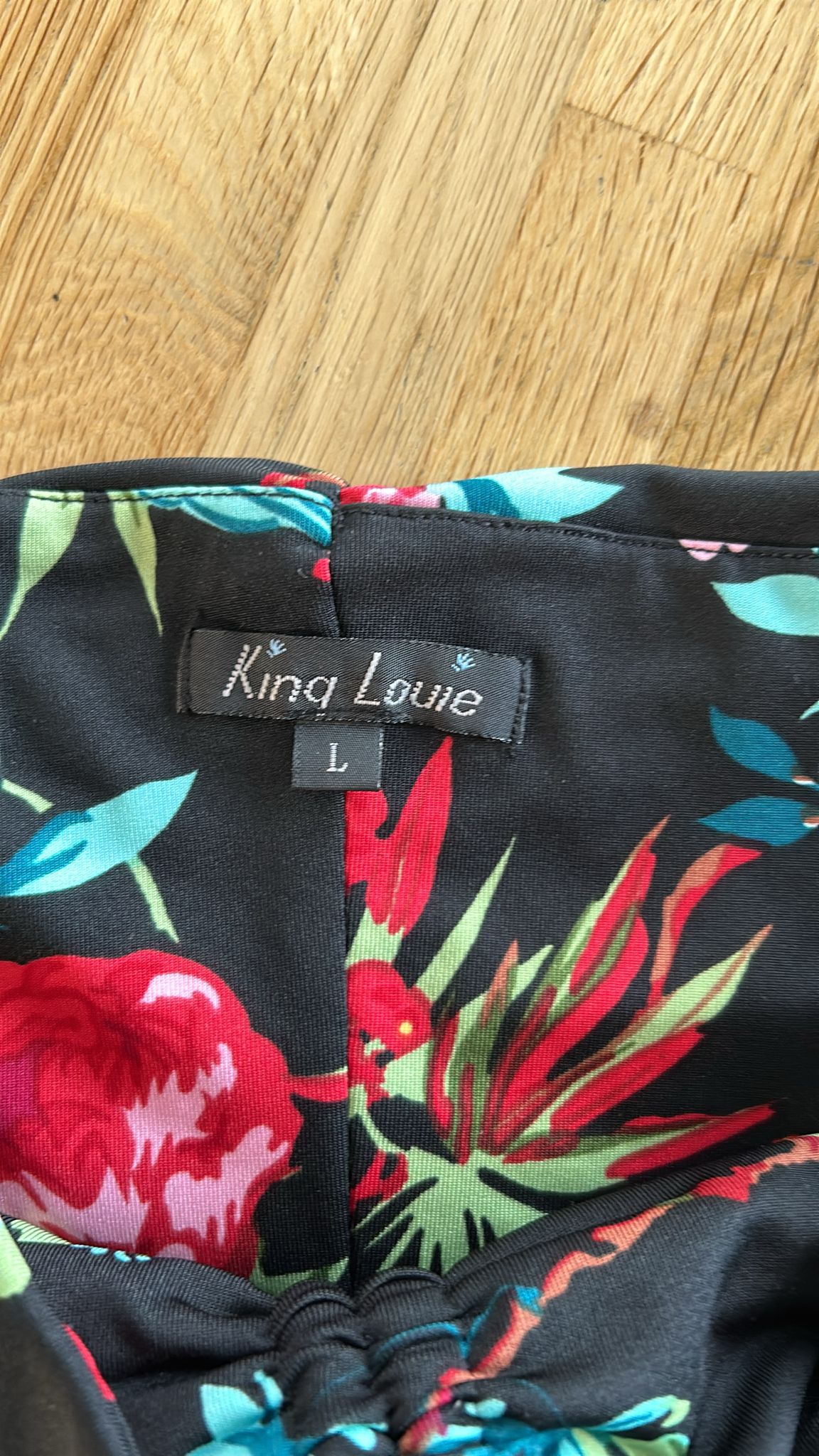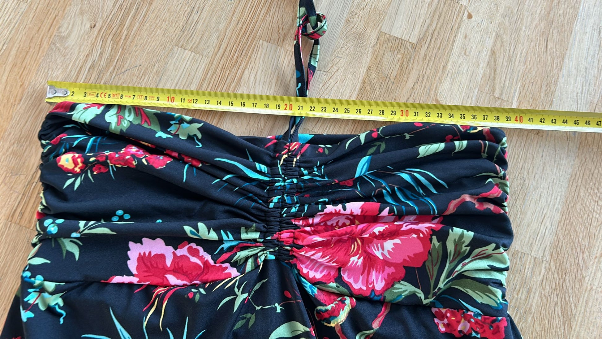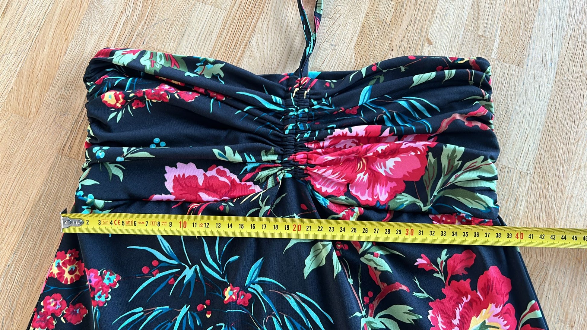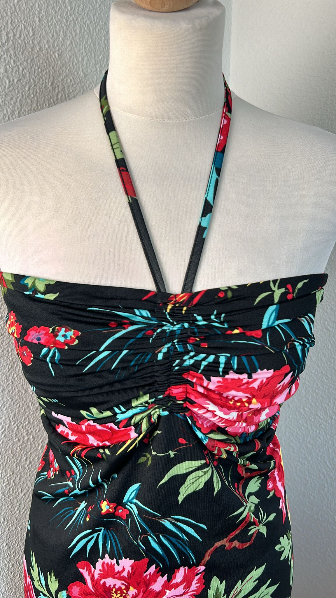 - Zwart met leuke print bloemen en vogels in felle kleuren