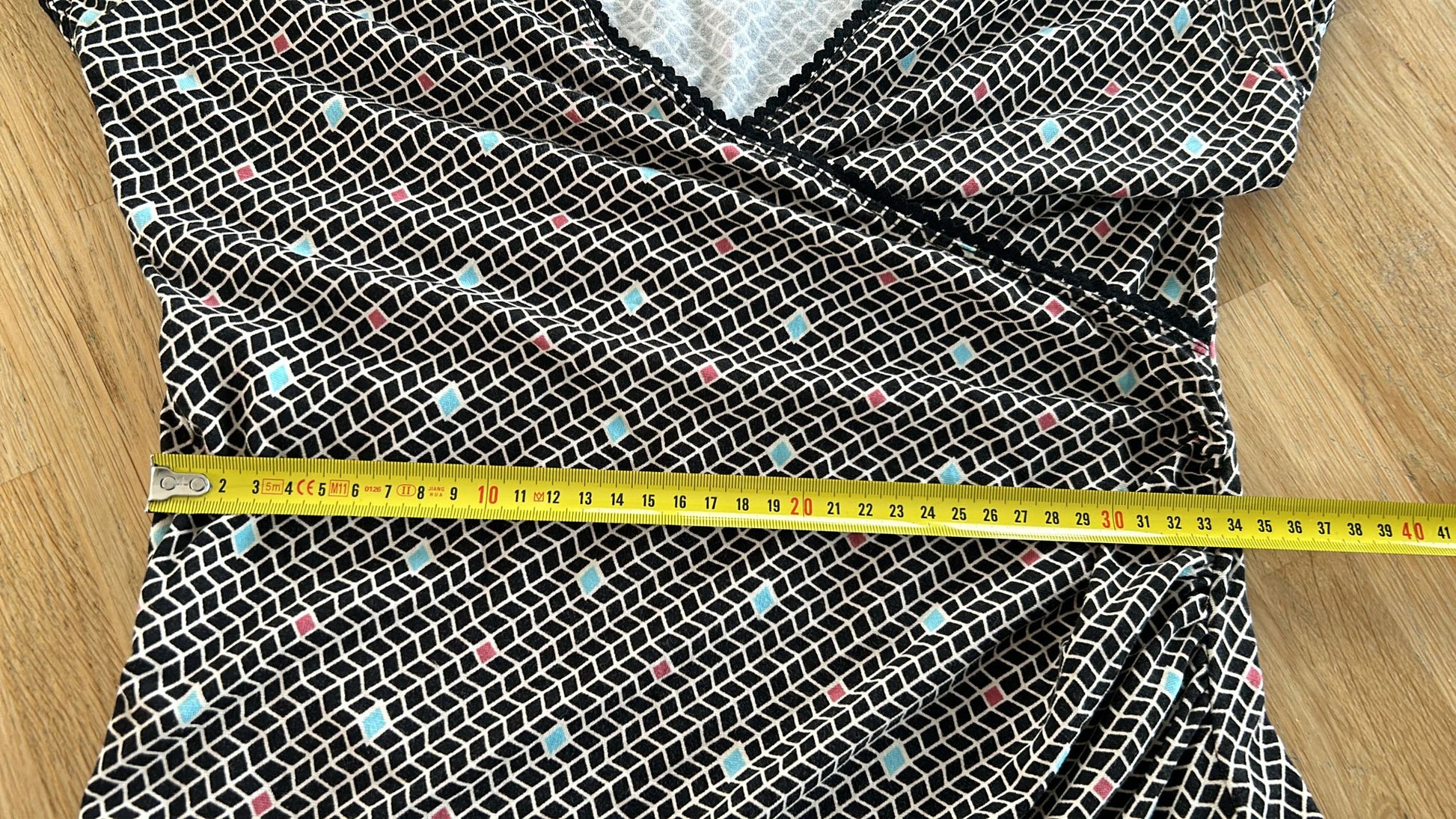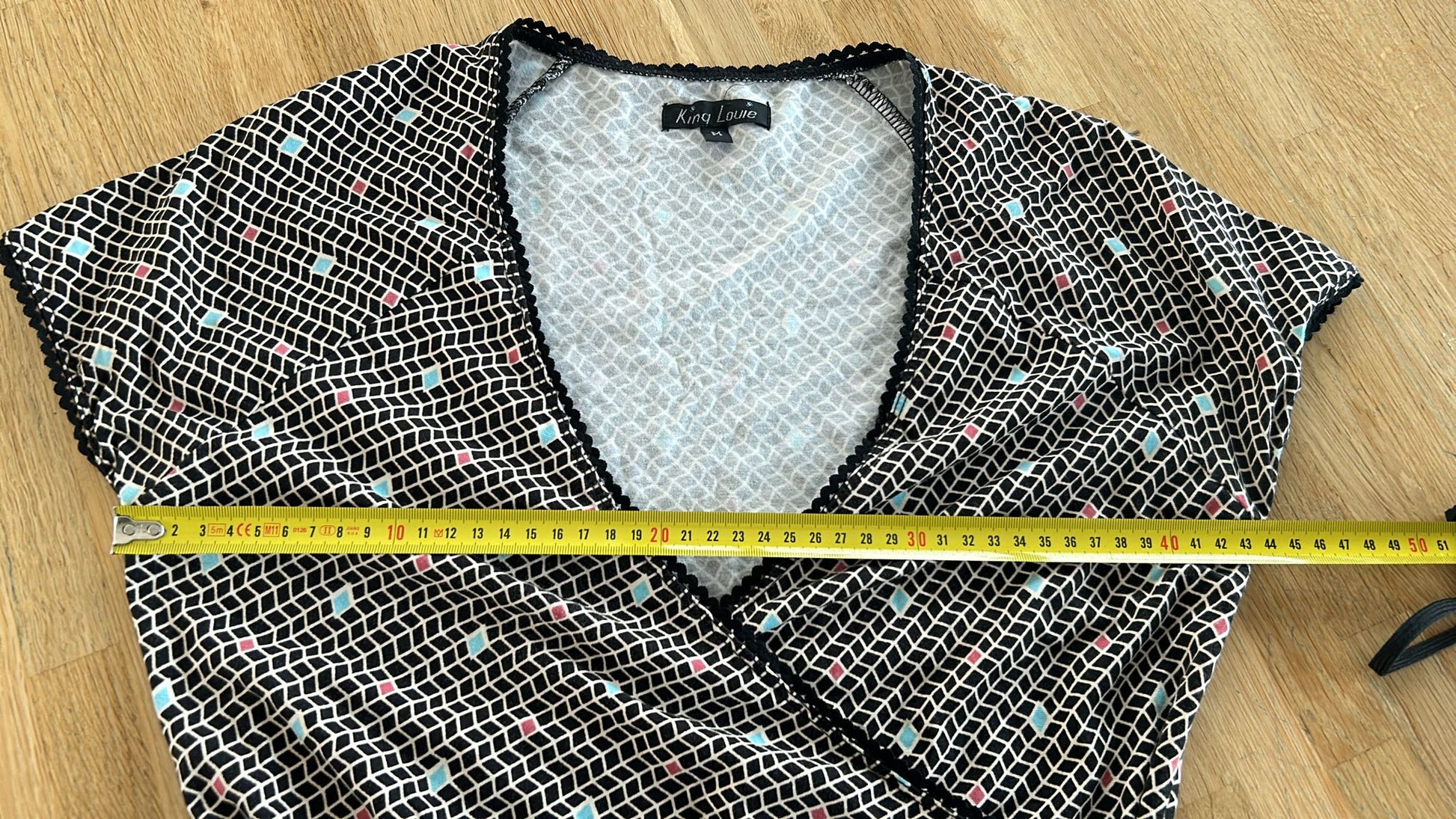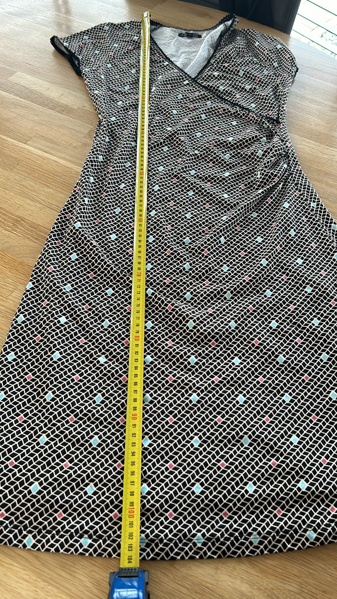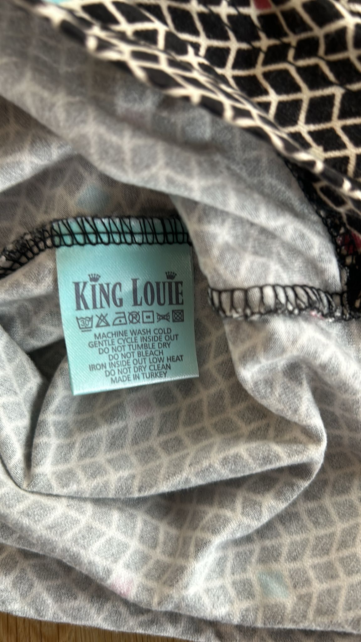- Zwart wit geruite retro print met turquoise en koraal details