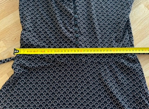- Kraagje, knoopje op de borst, korte mouwen, knooplint rond het middel