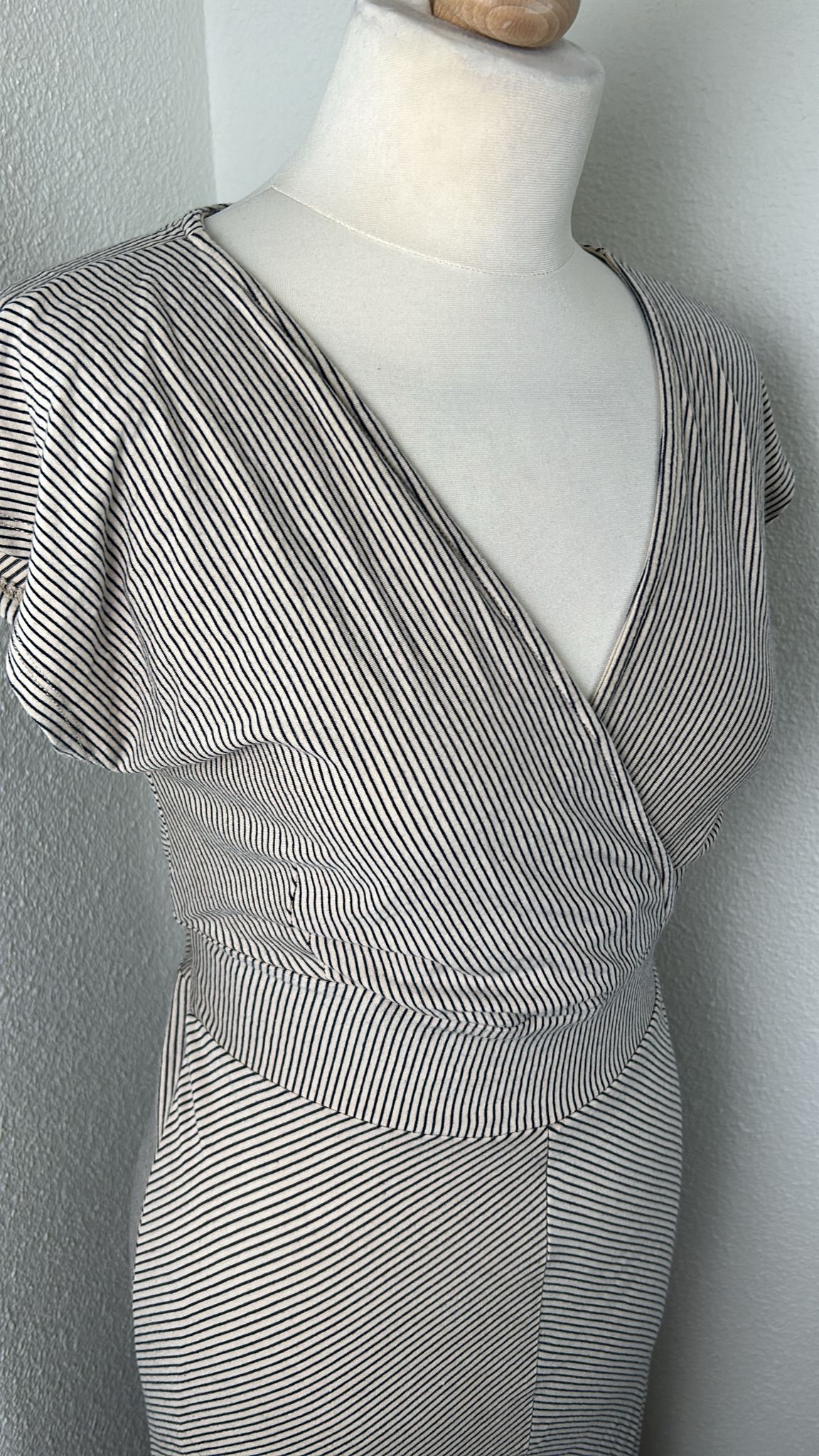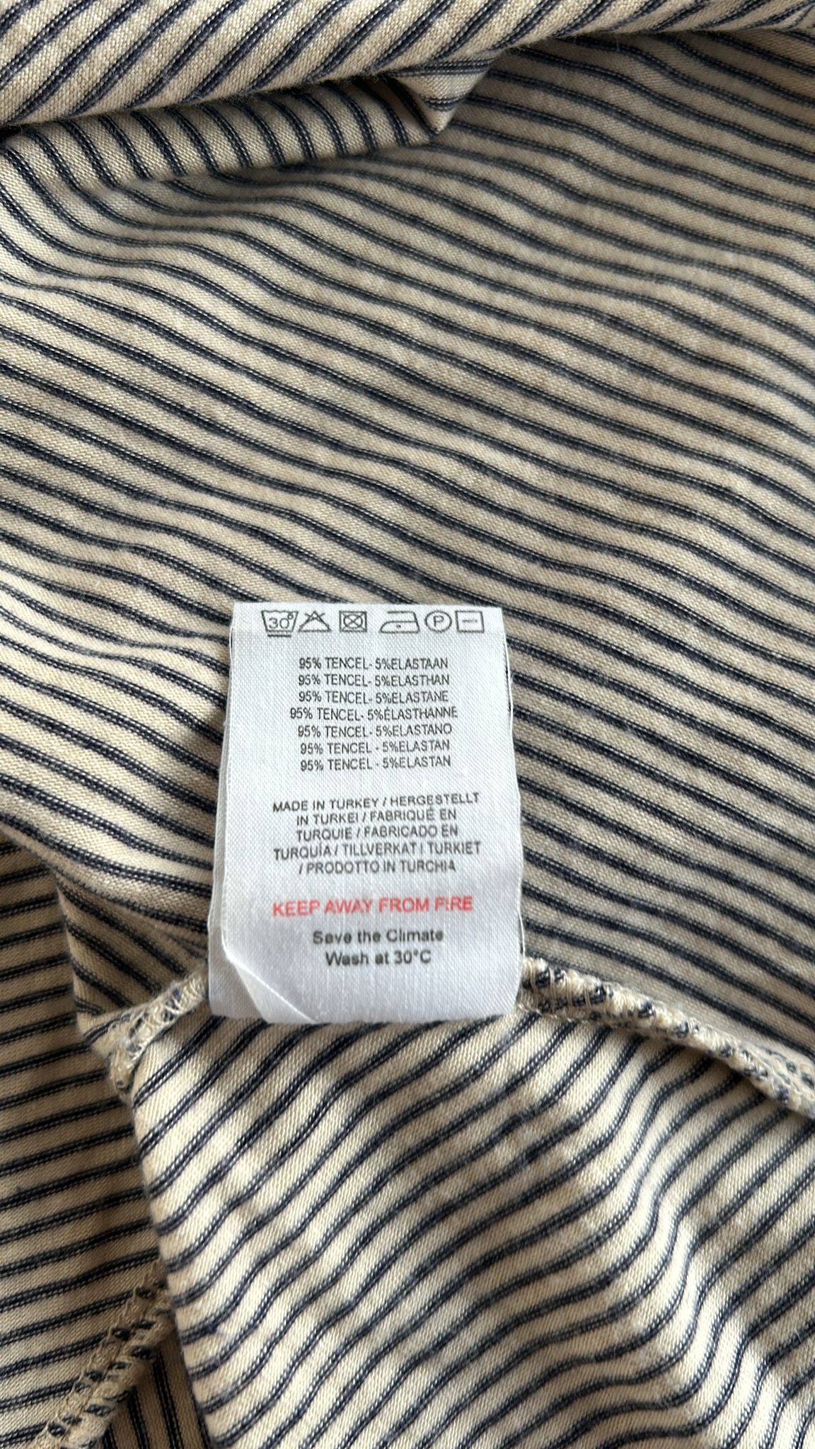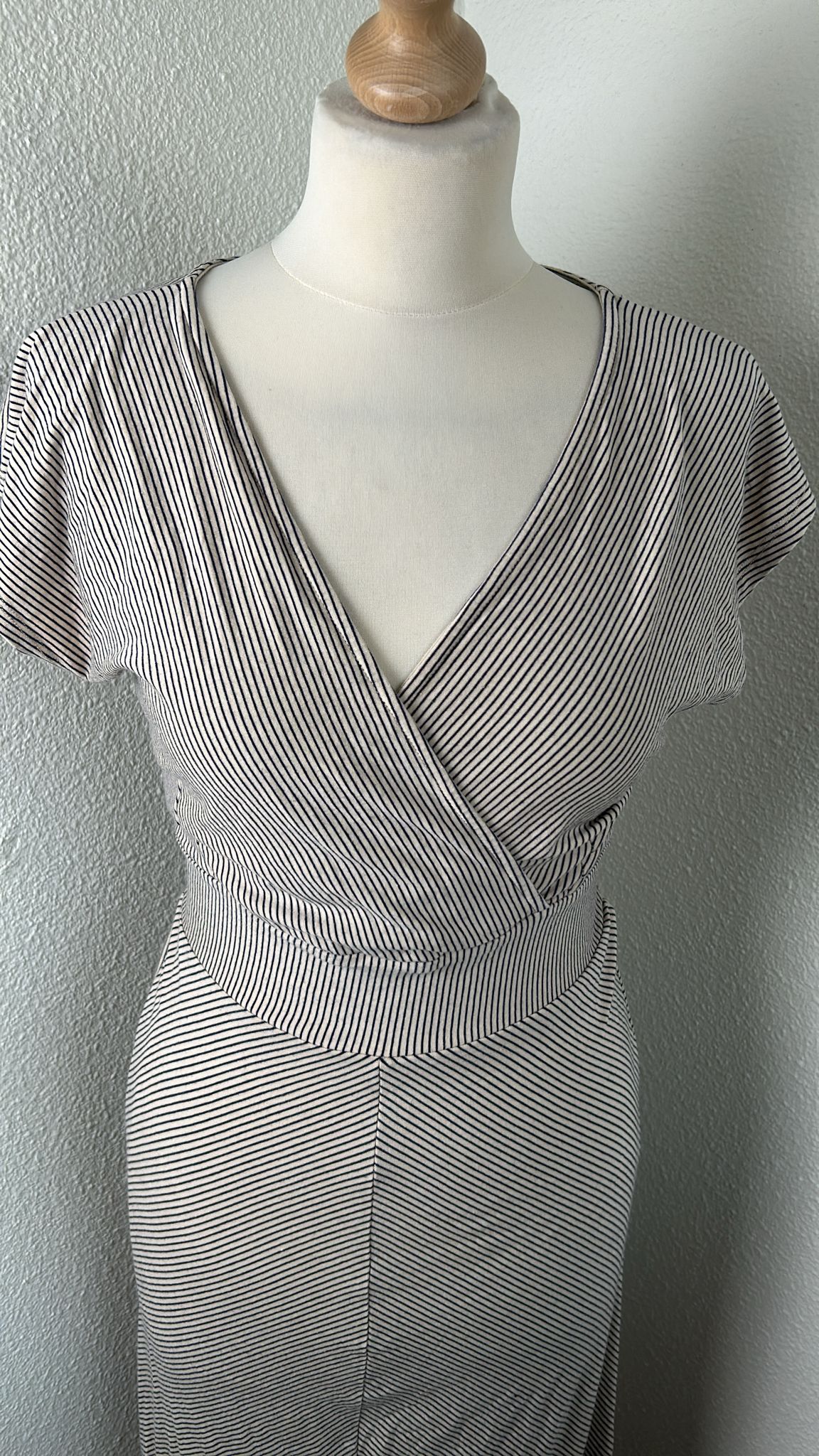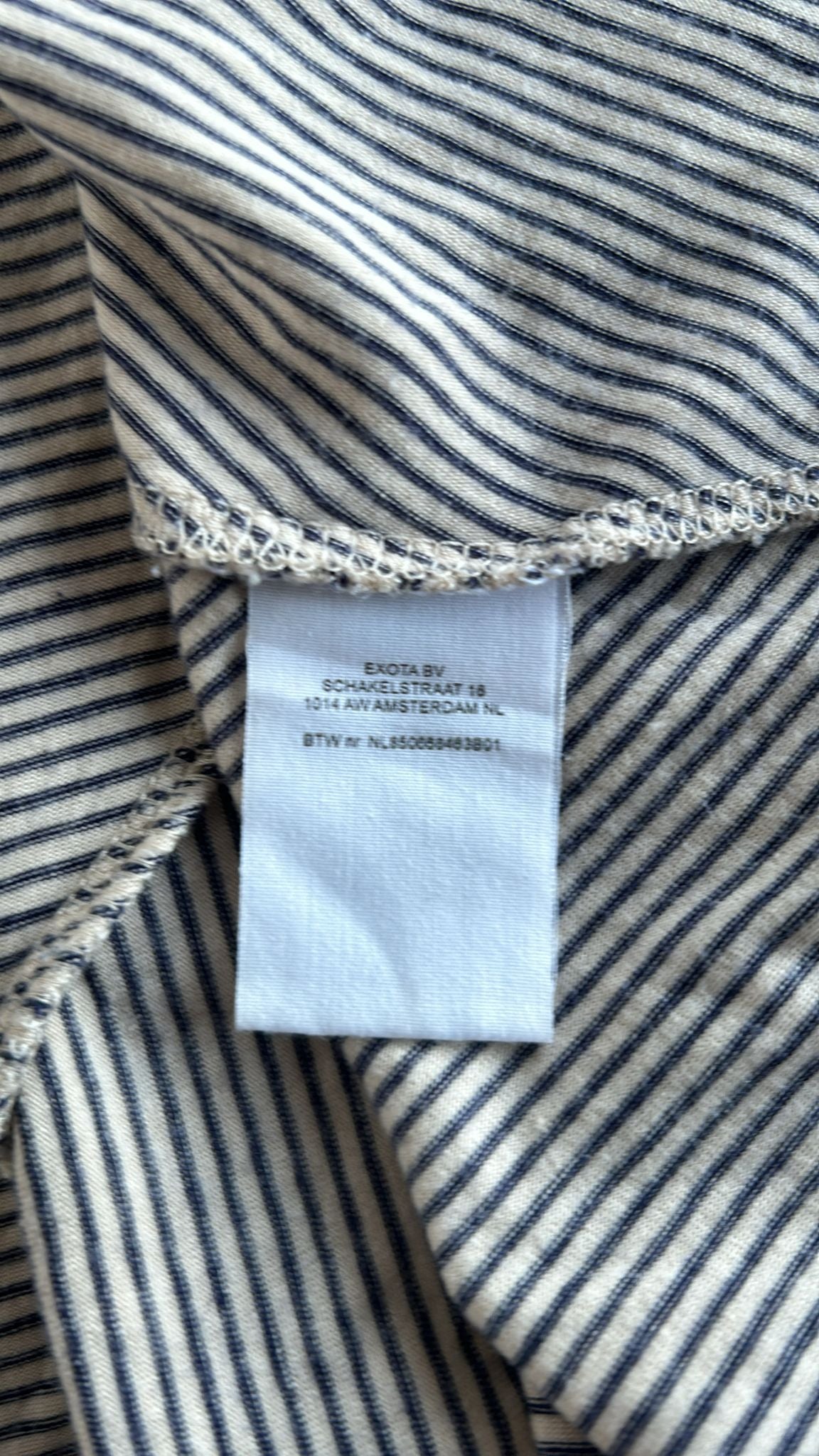 - Creme wit met blauw-grijze streepjes print