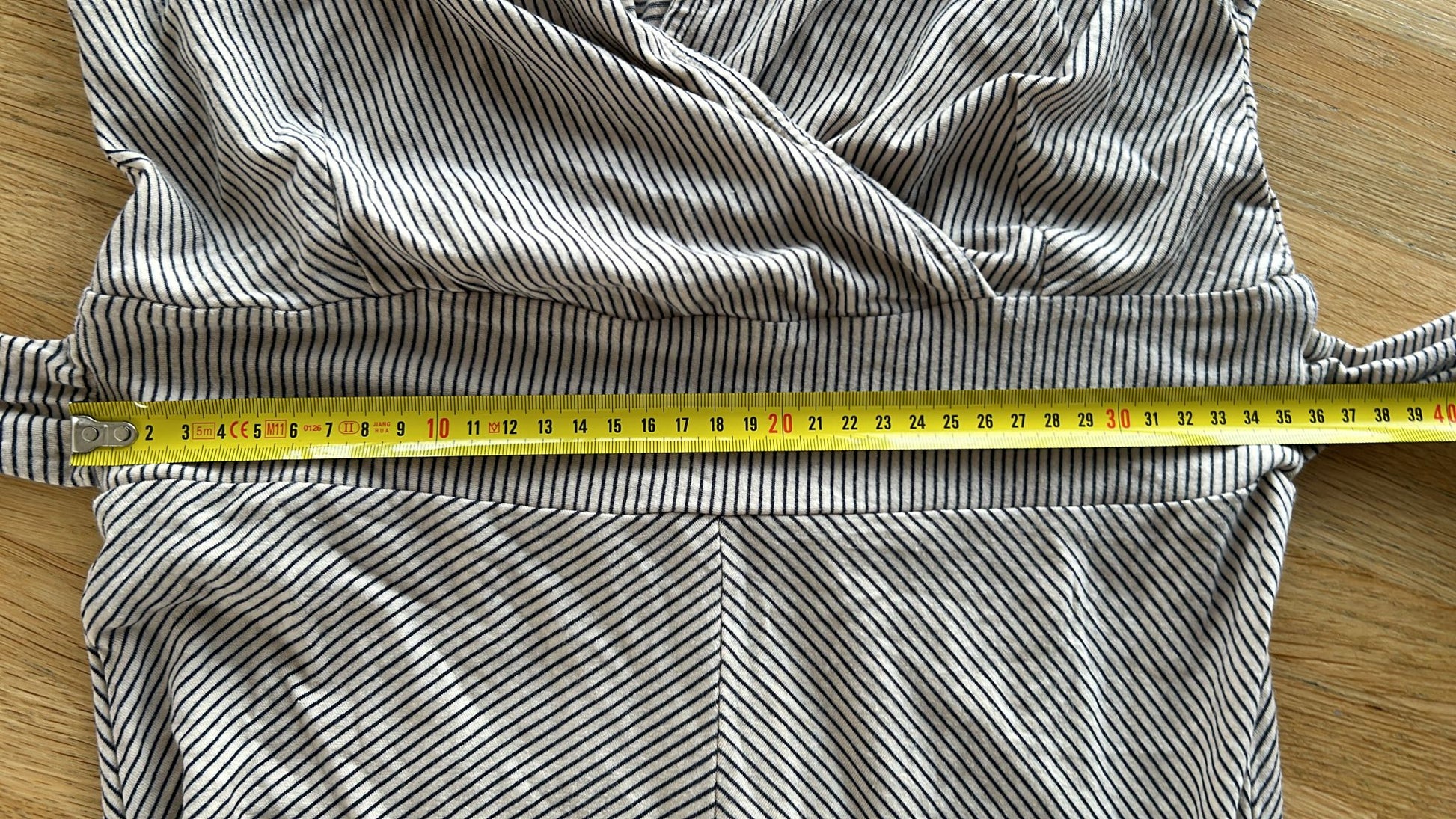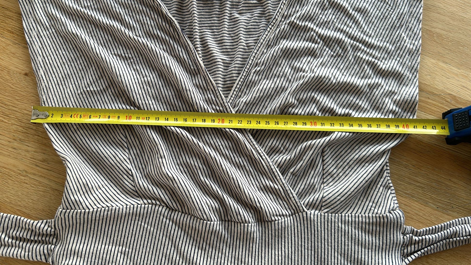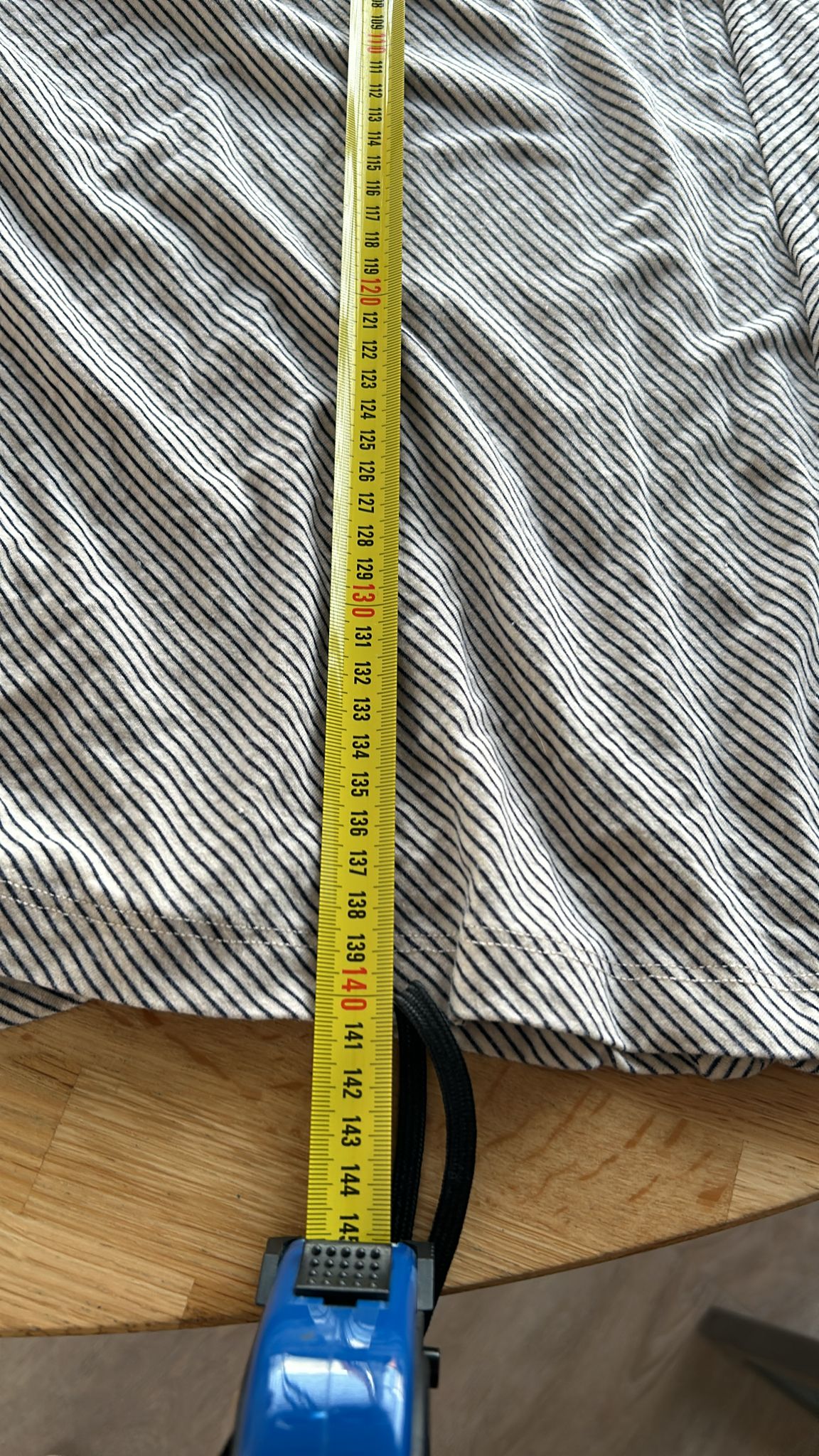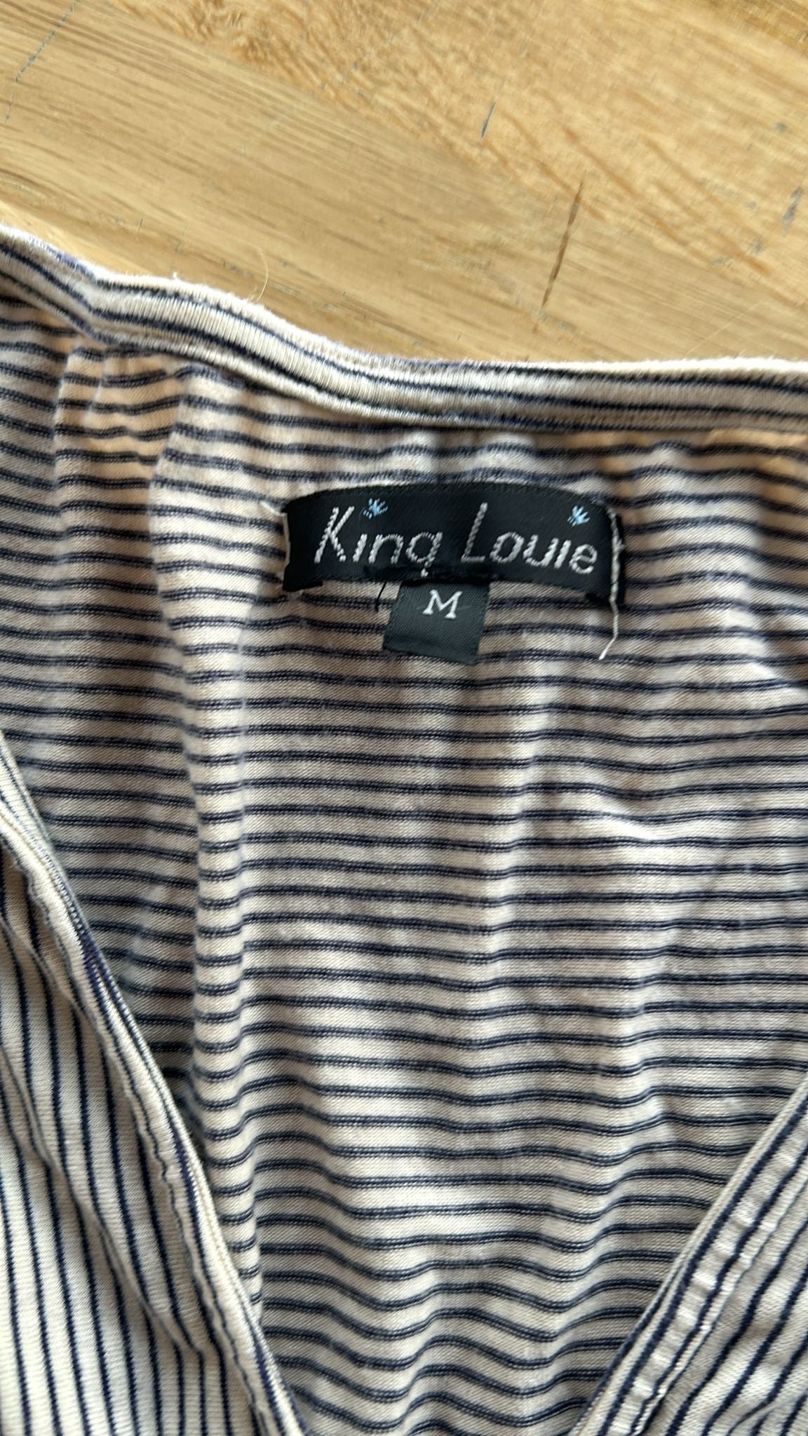 - Creme wit met blauw-grijze streepjes print