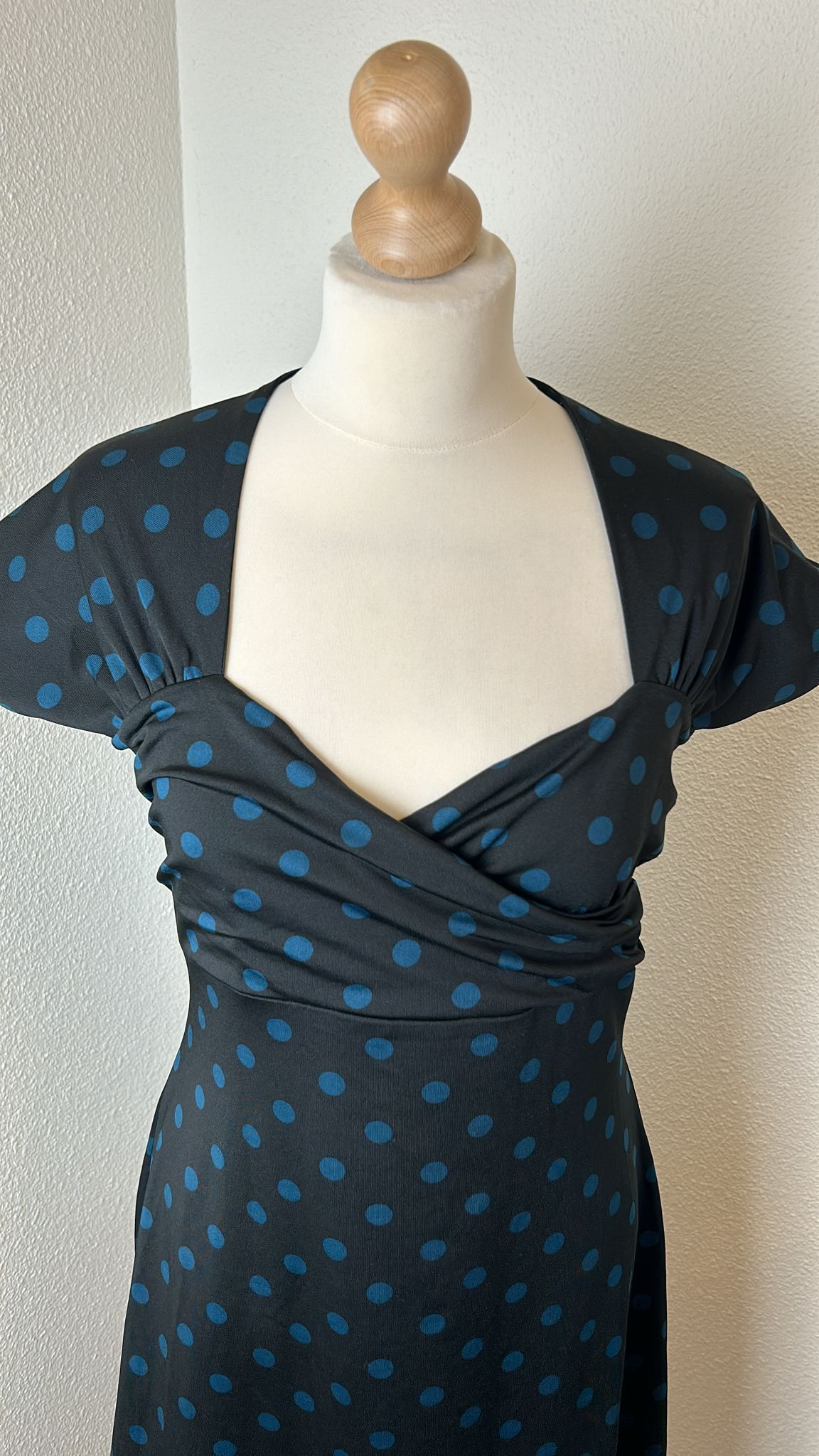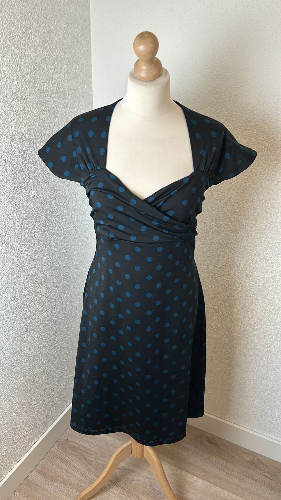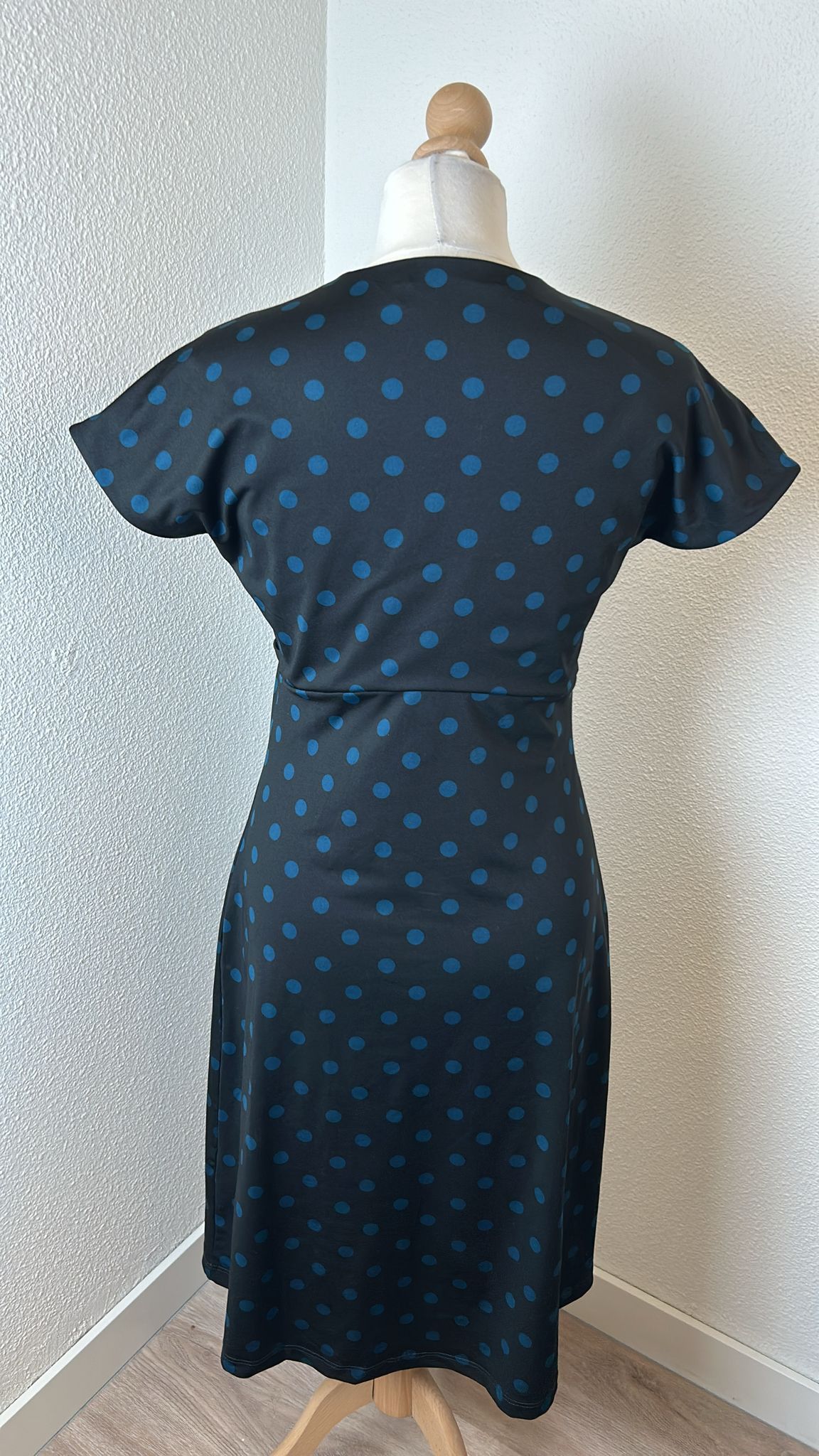 - Donkerblauwe polkadot stippen op zwarte ondergrond