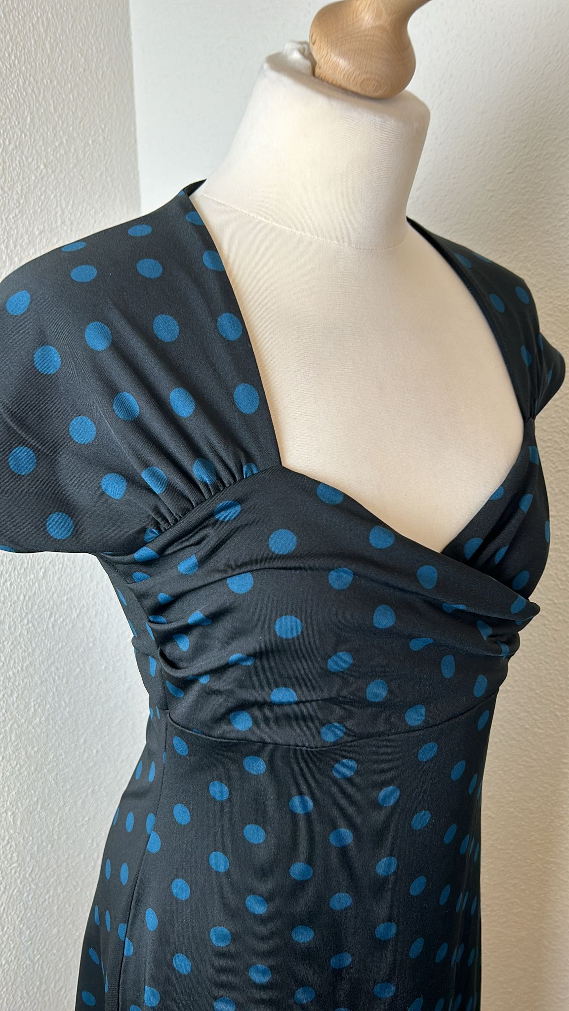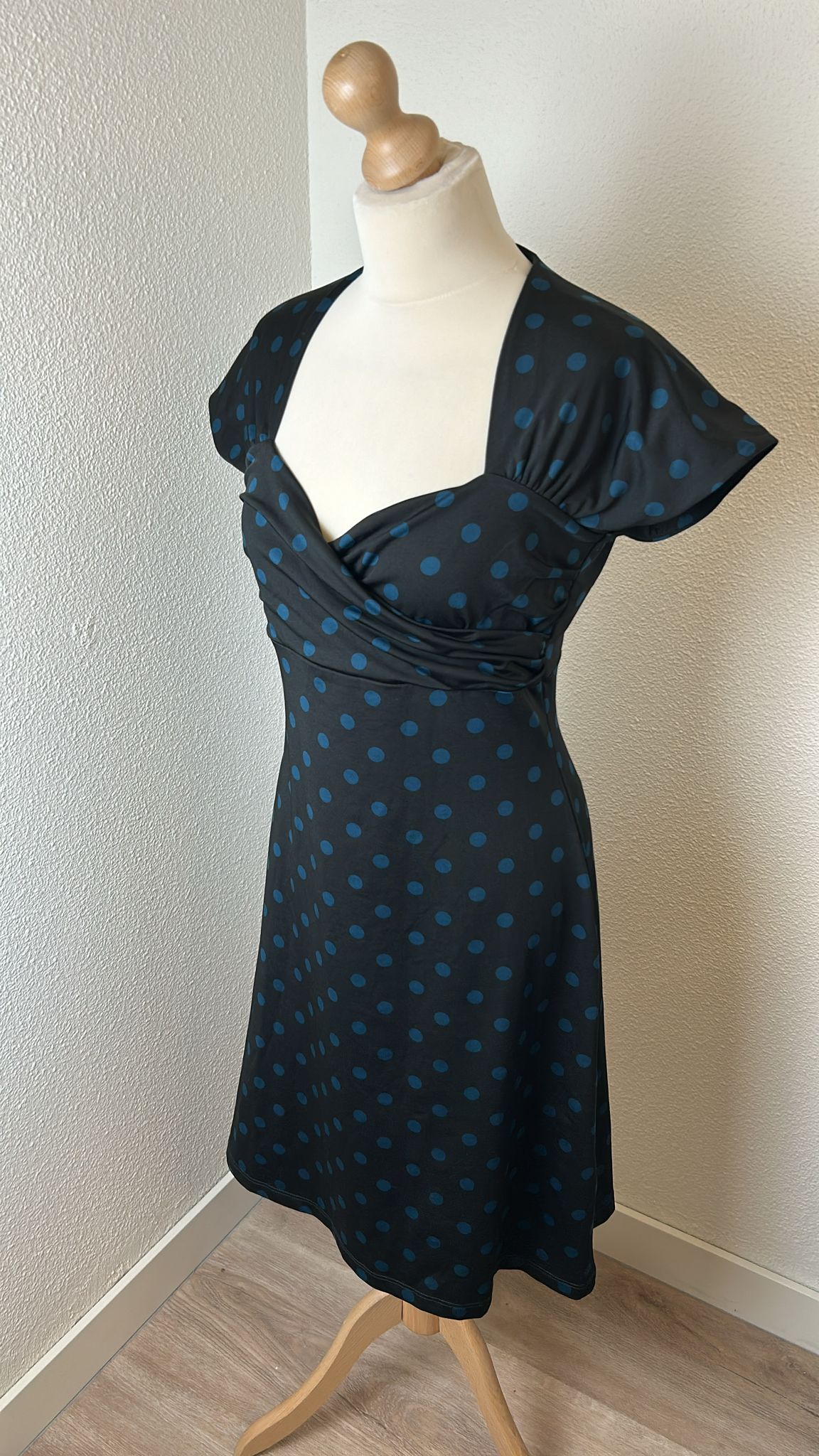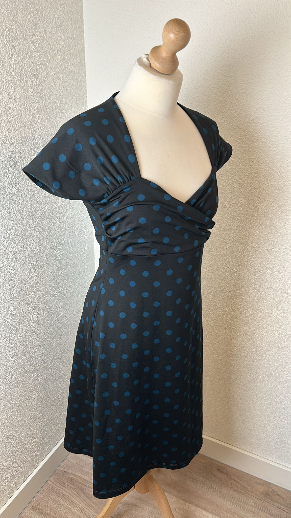 - Donkerblauwe polkadot stippen op zwarte ondergrond