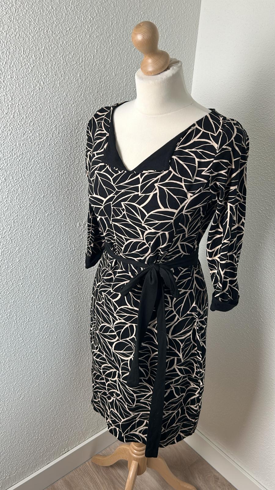 - Zwart met creme witte bladeren print