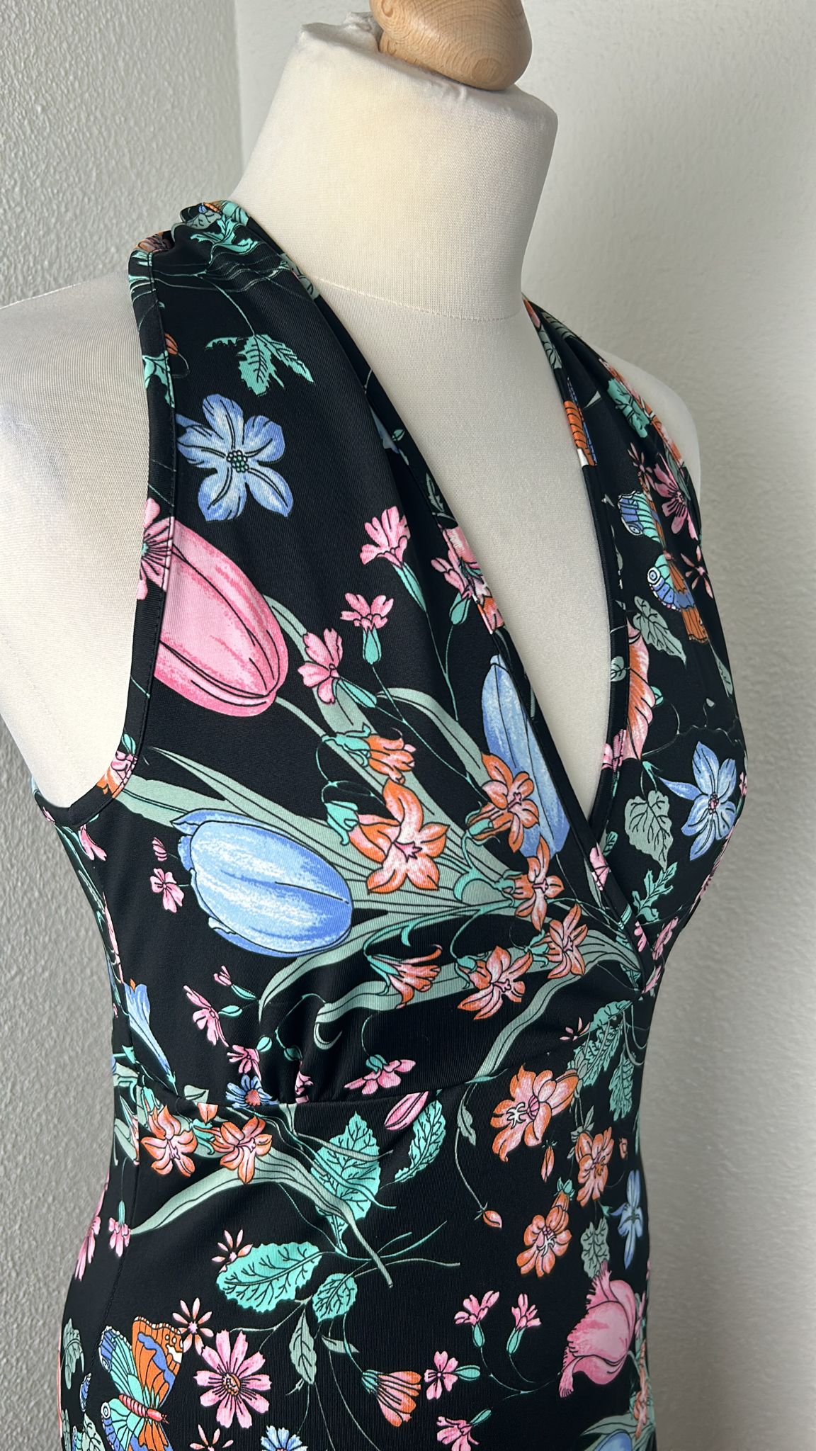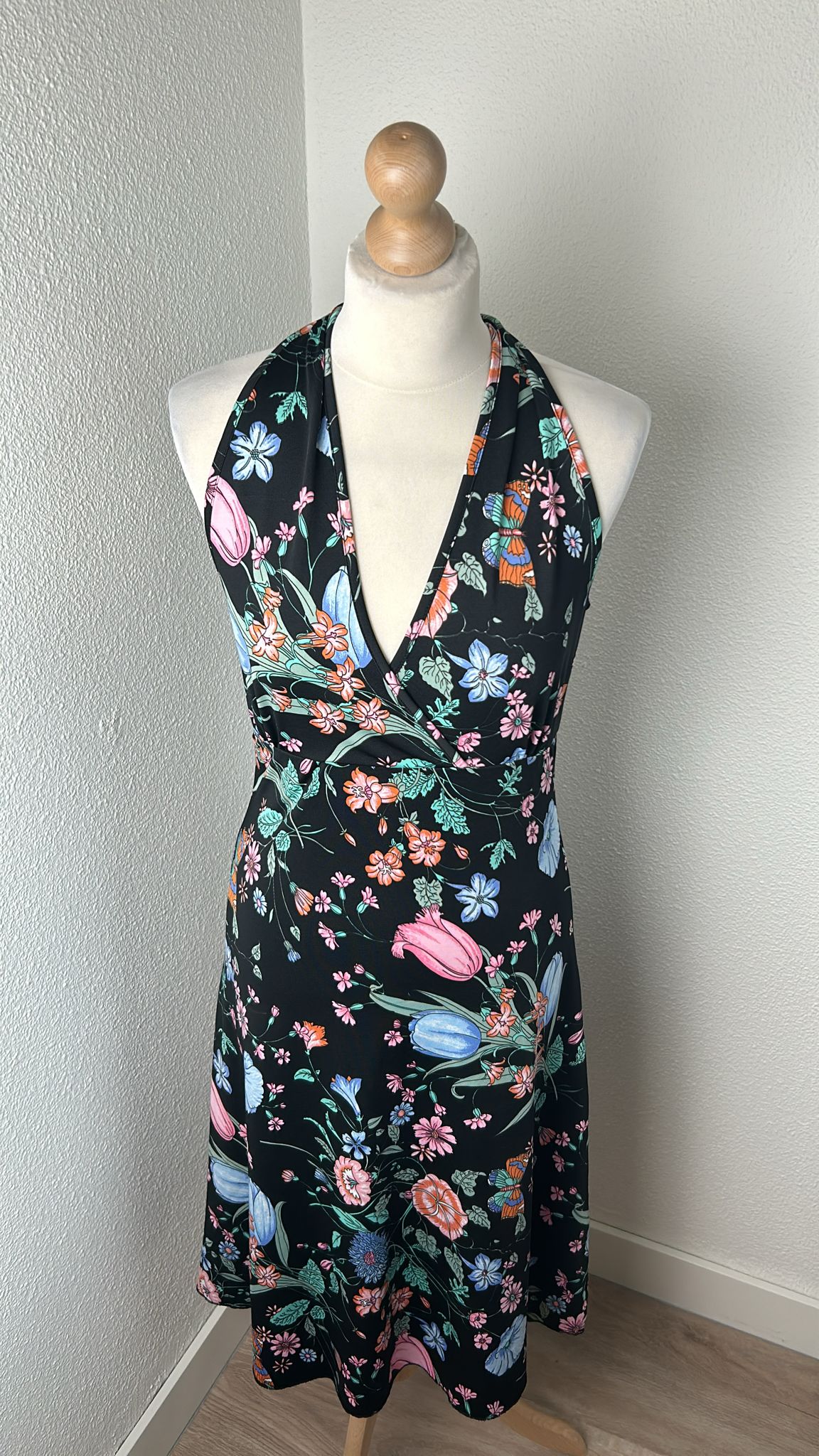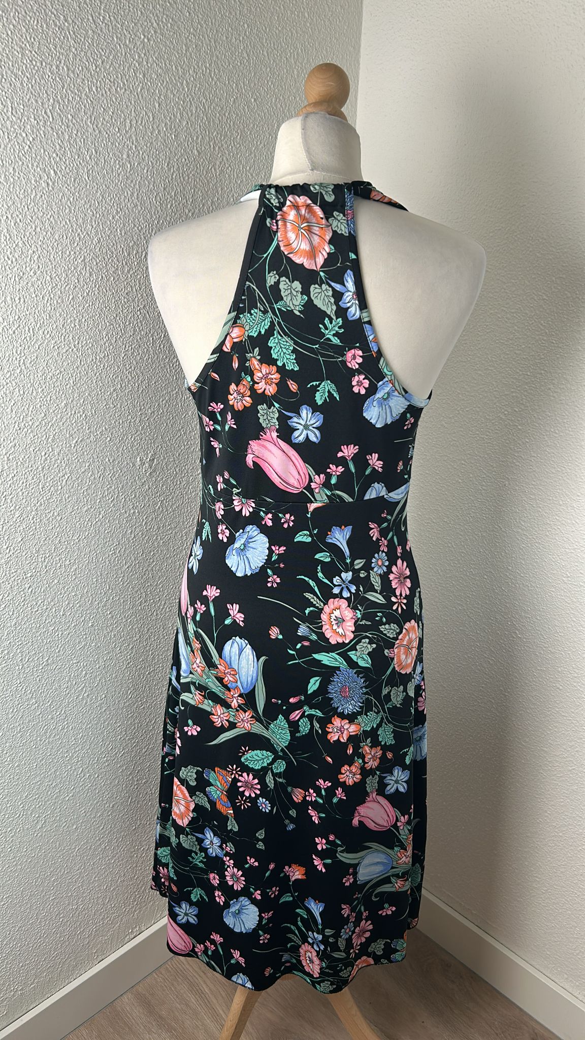 - Zwart met pastel kleurige bloemetjes print