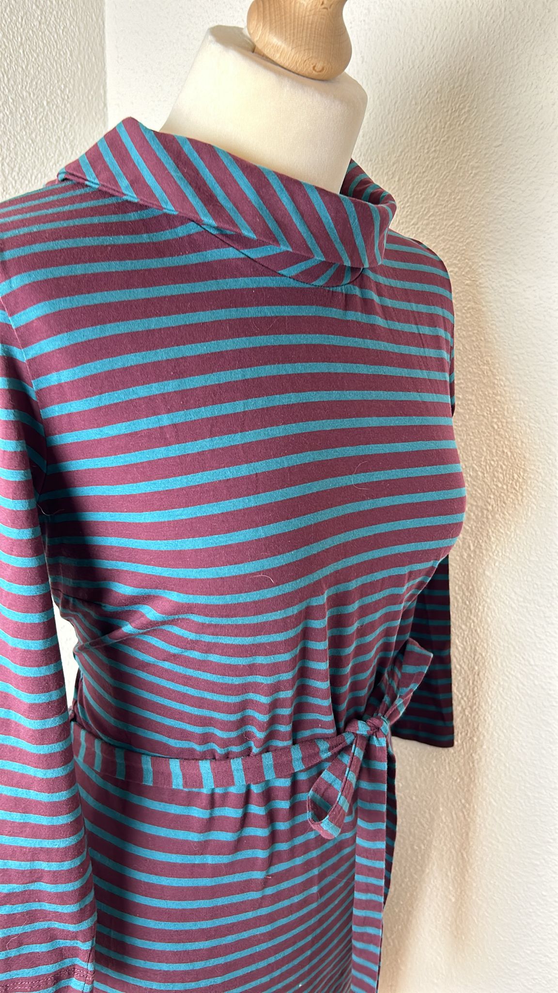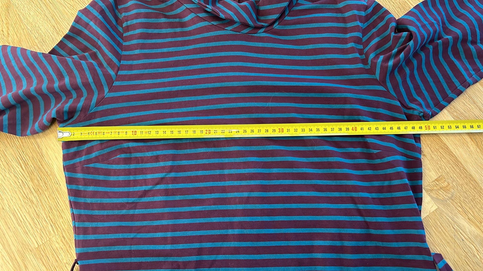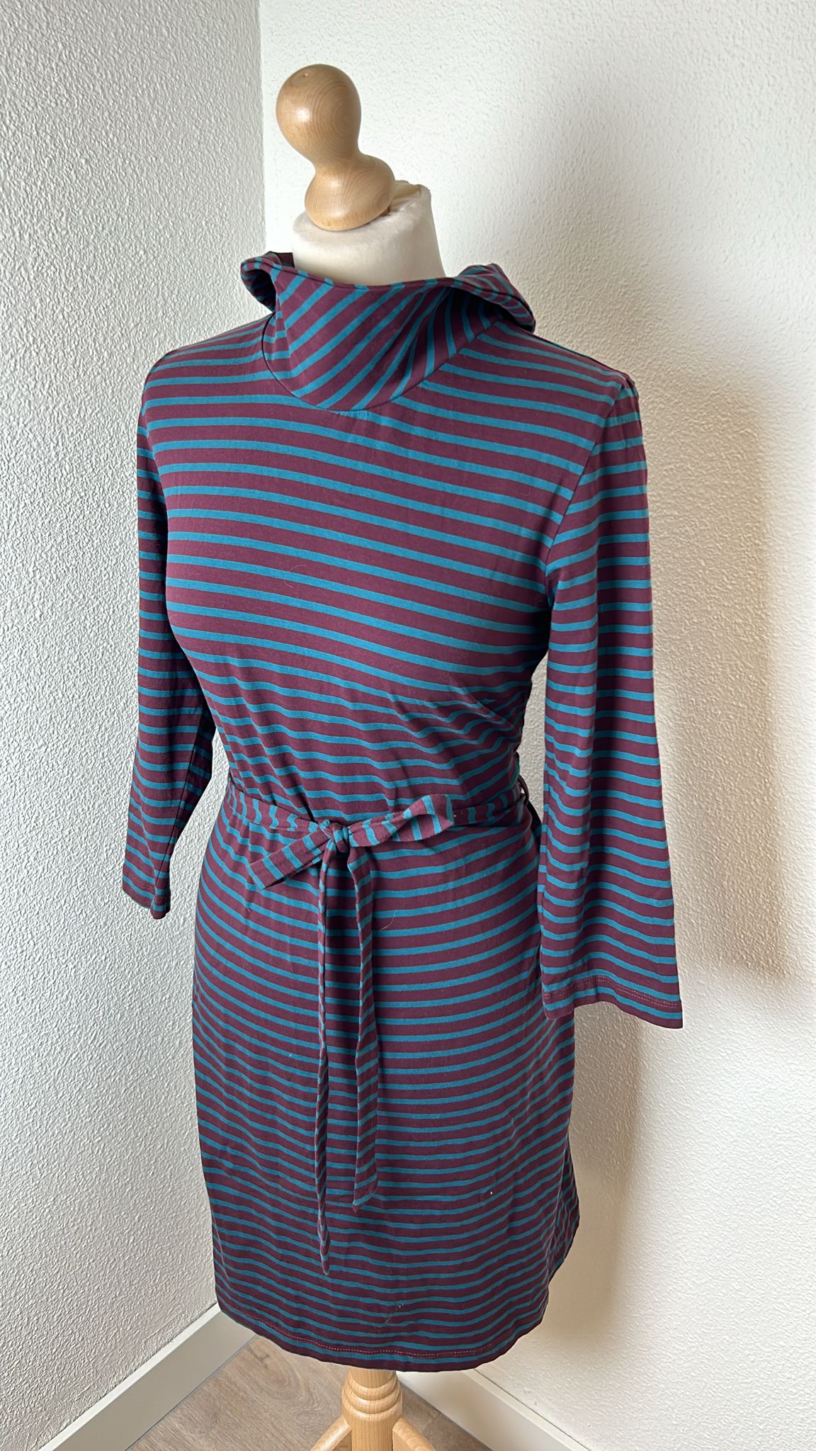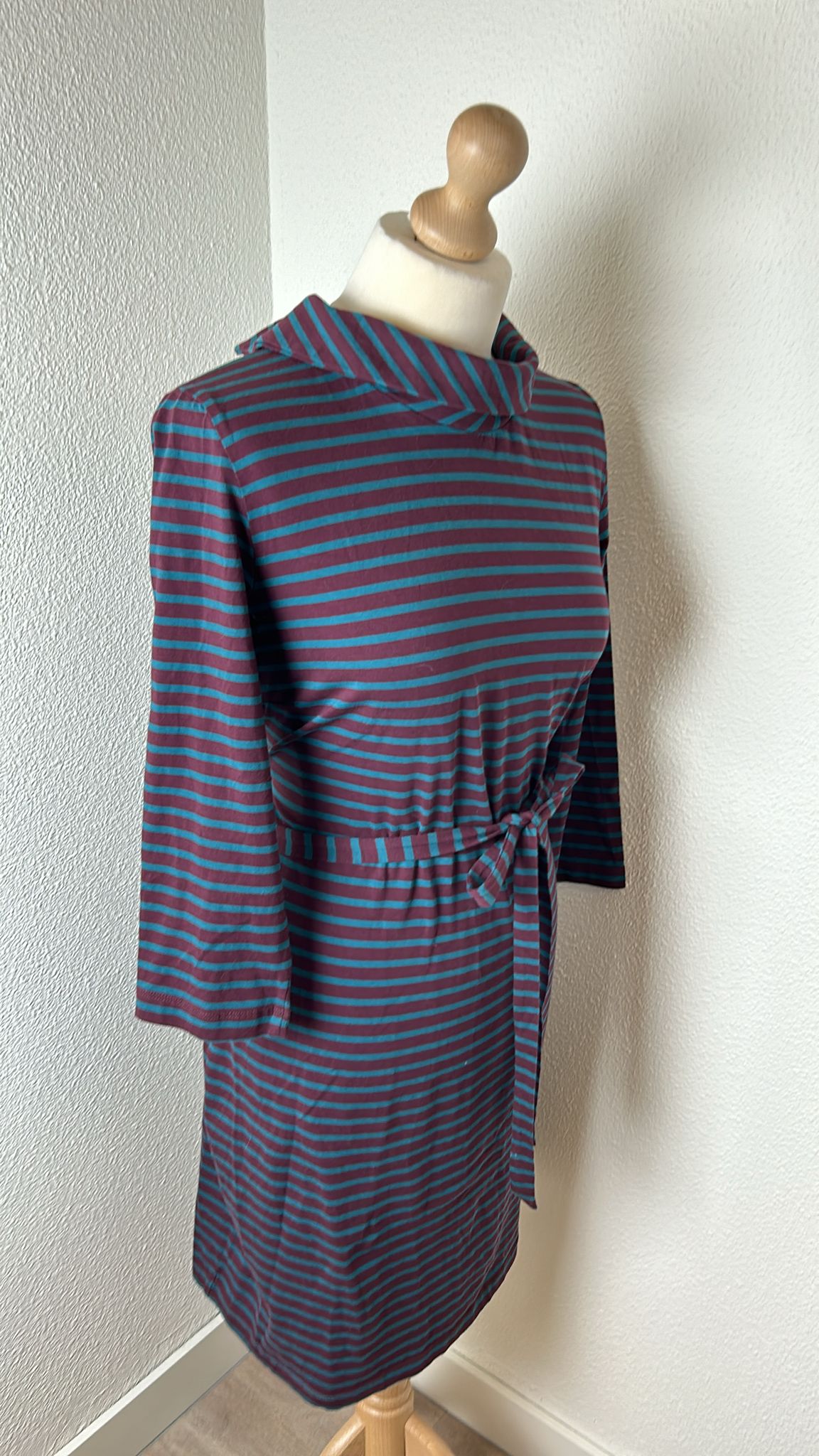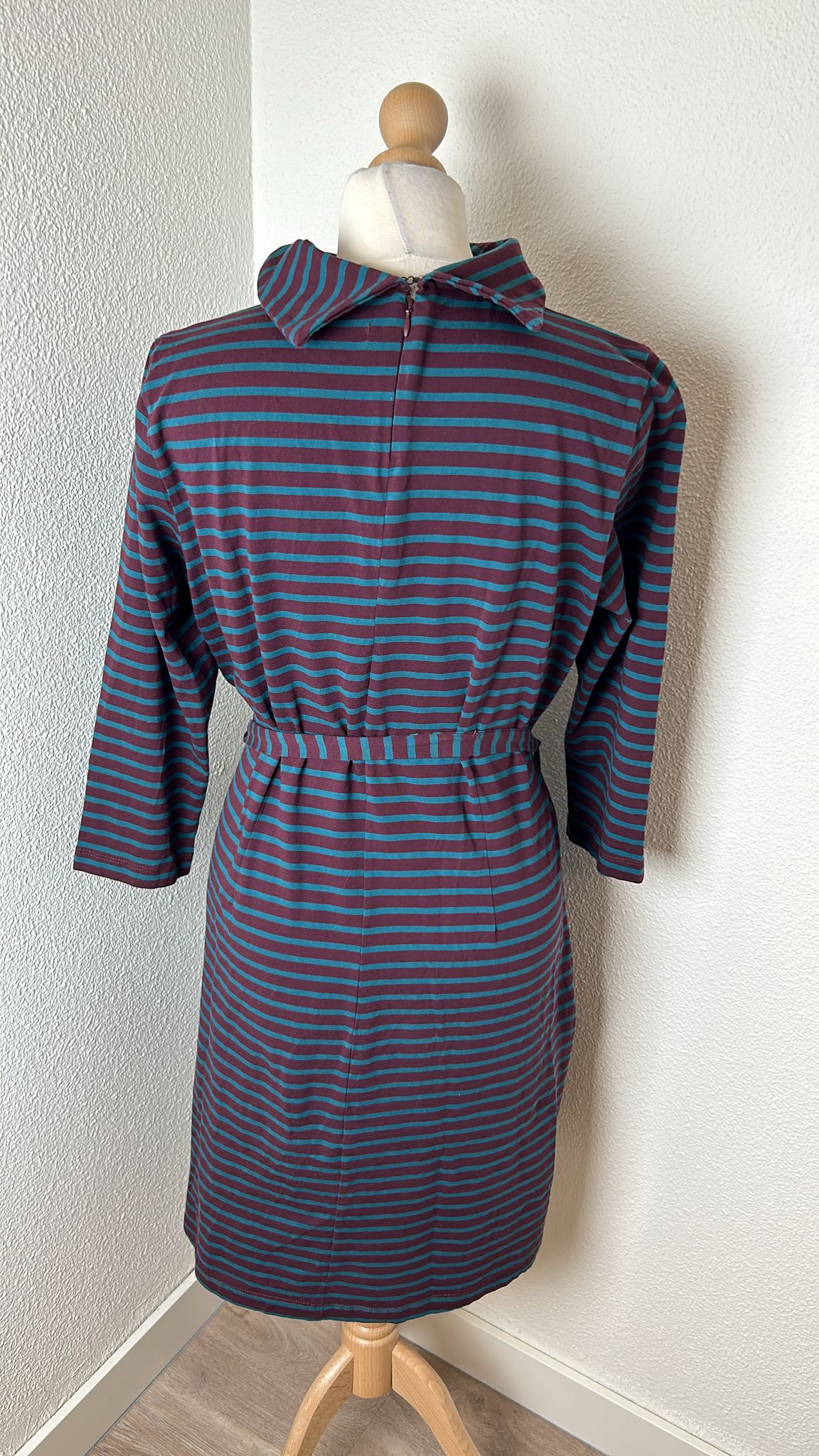 - Aubergine paars met marine blauwe strepen