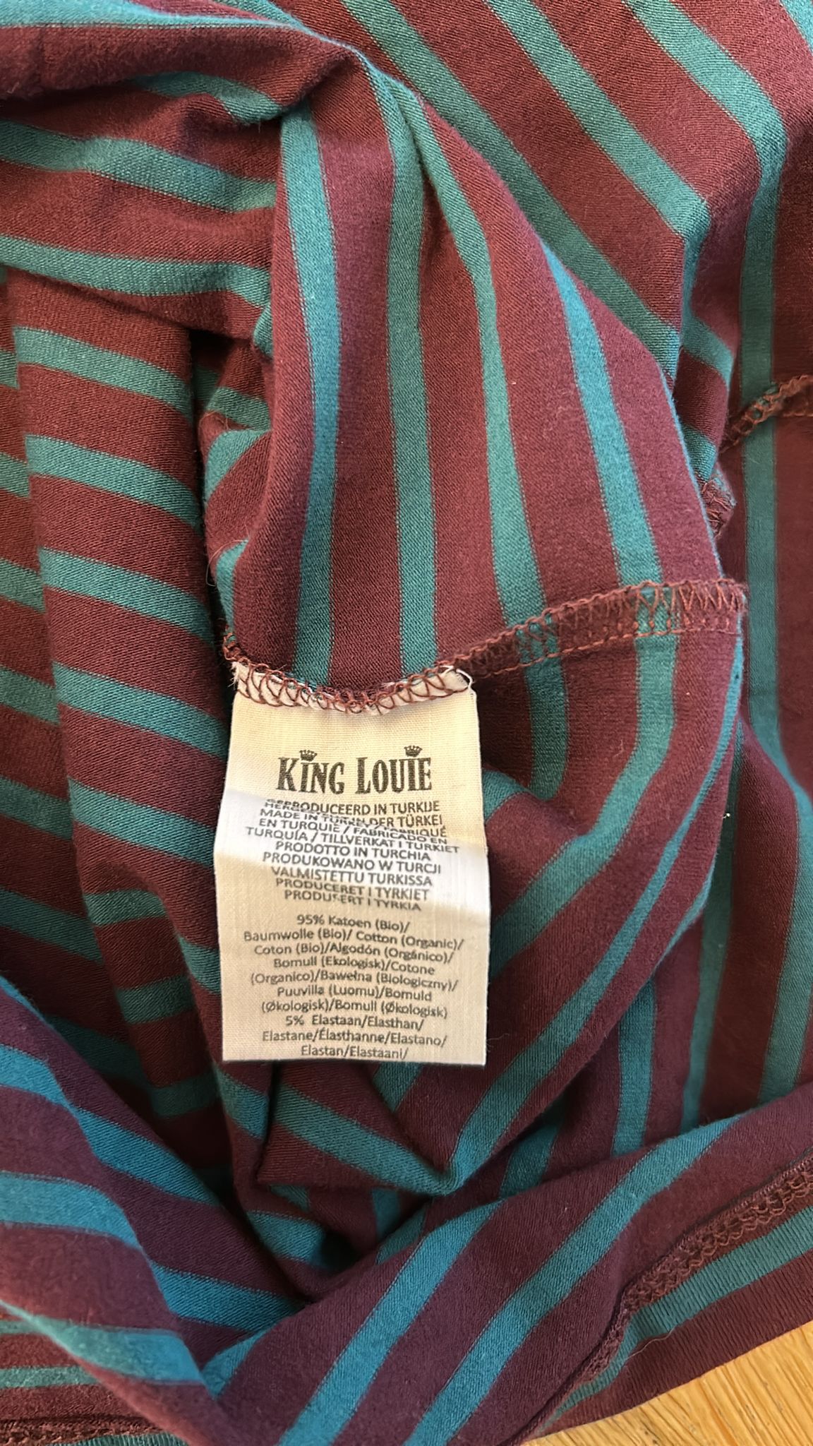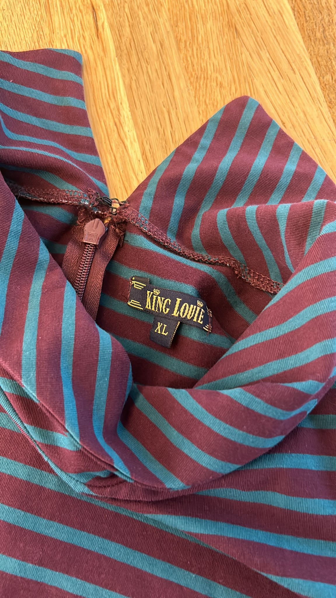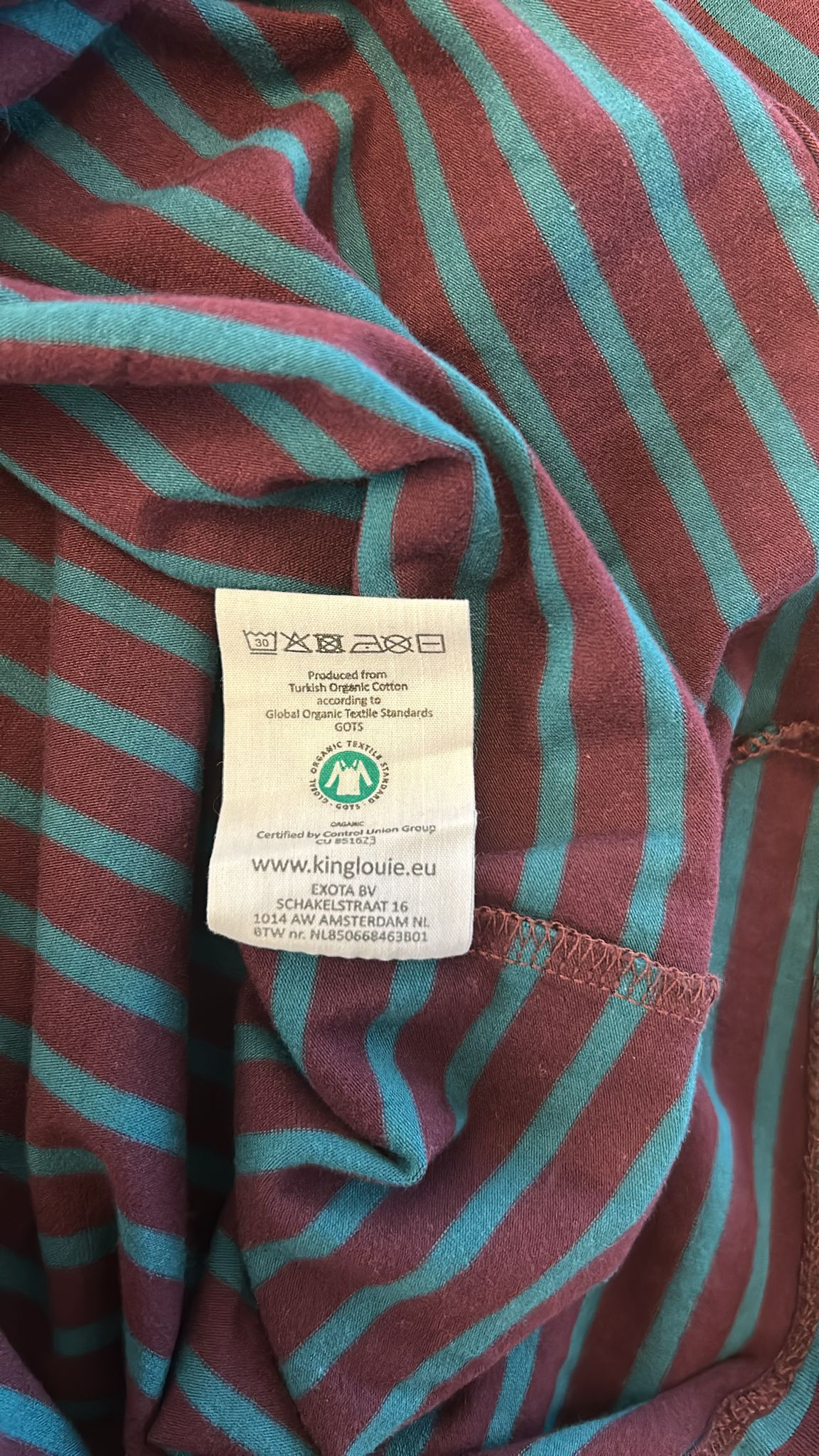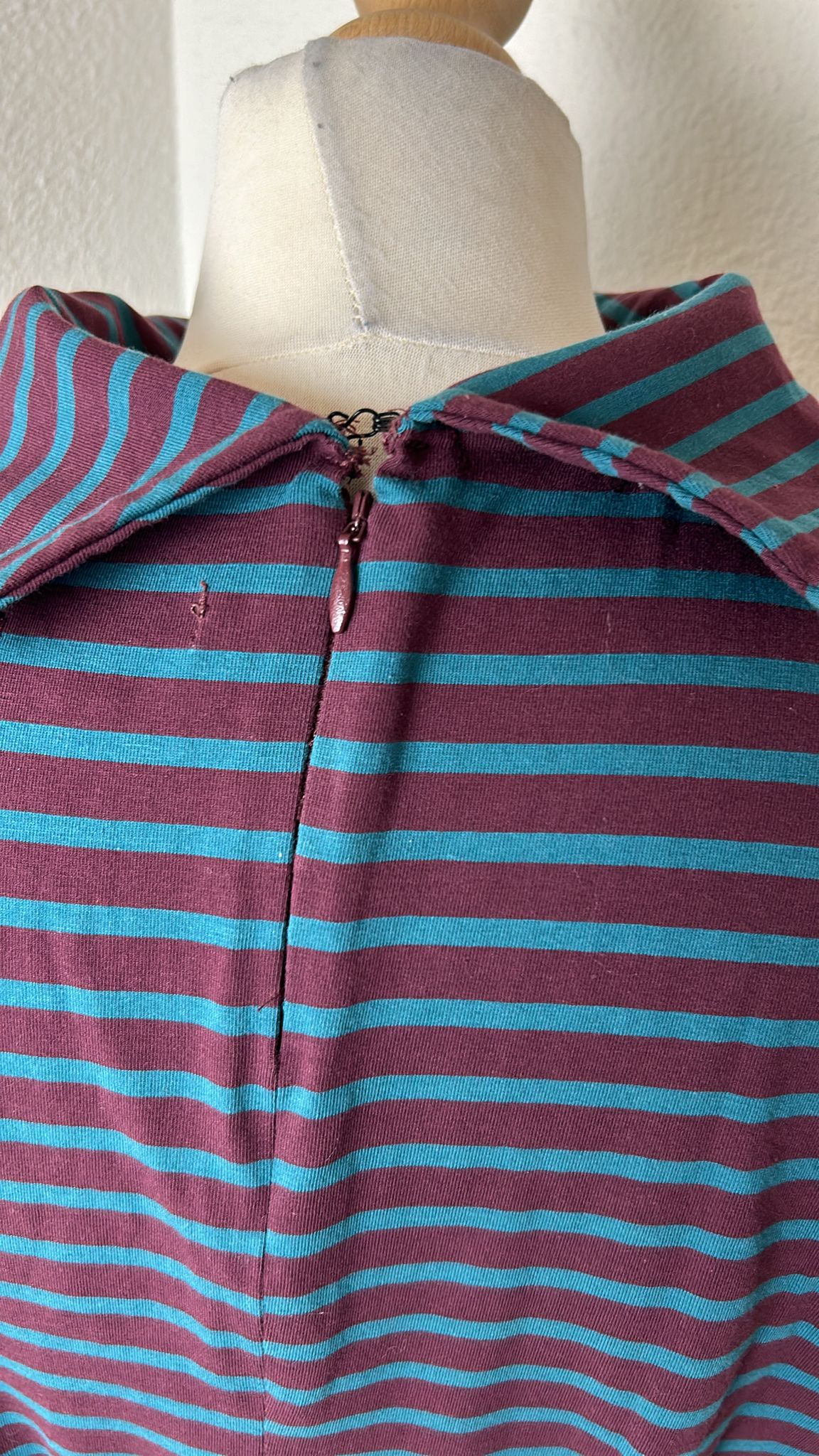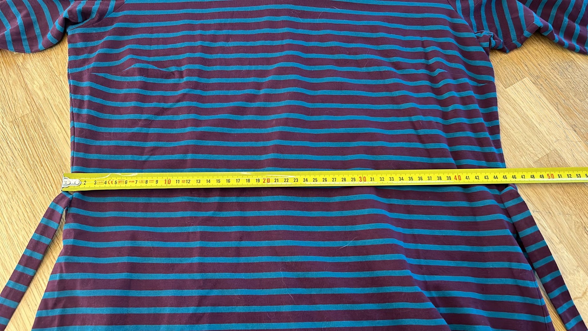 - Aubergine paars met marine blauwe strepen