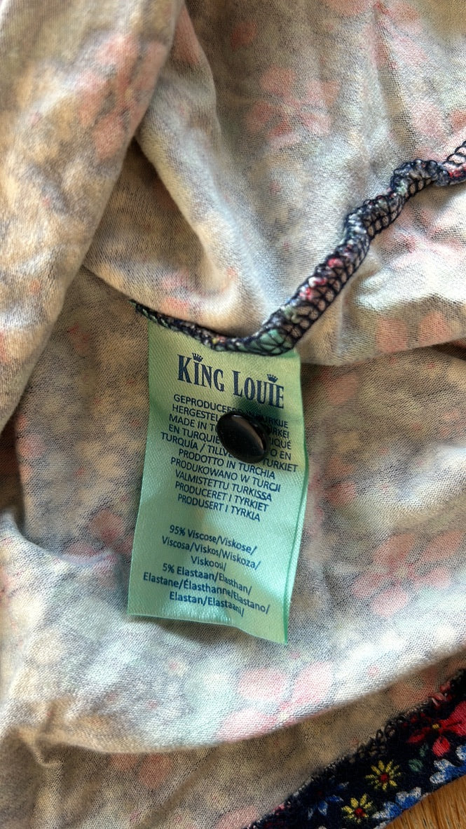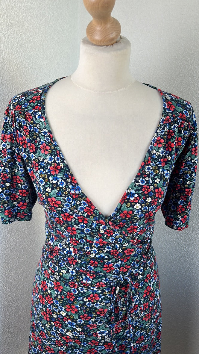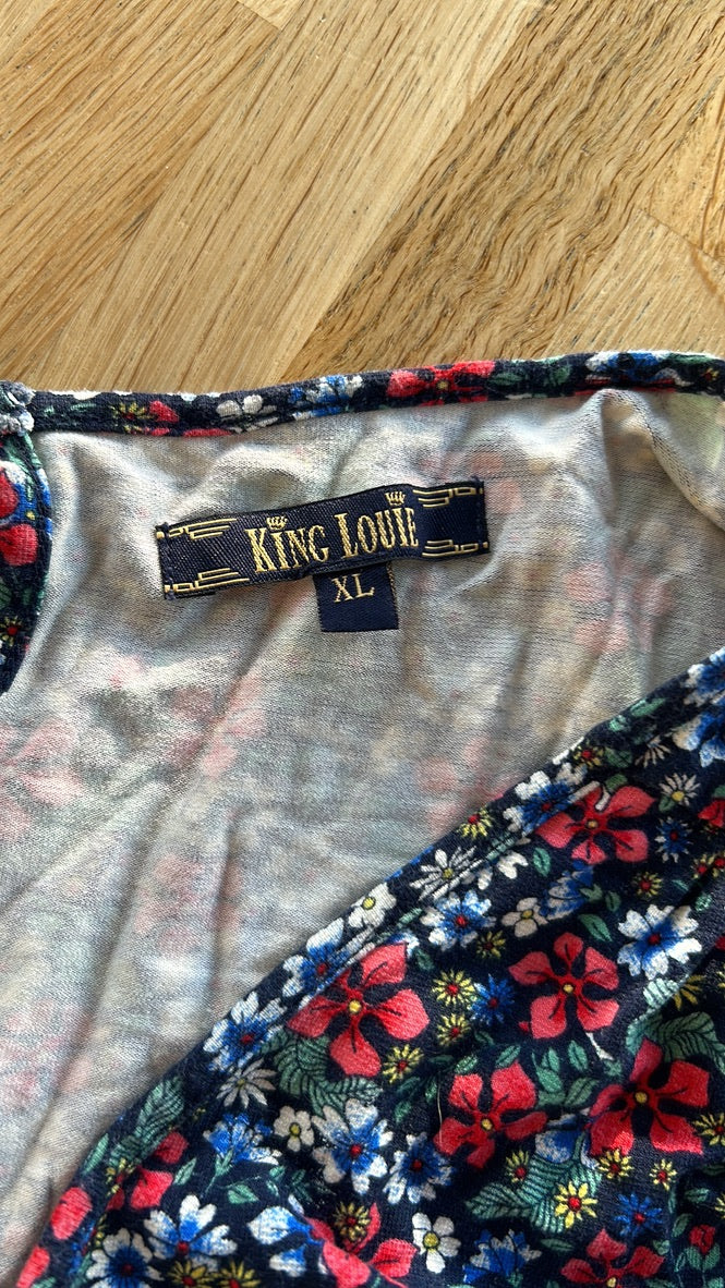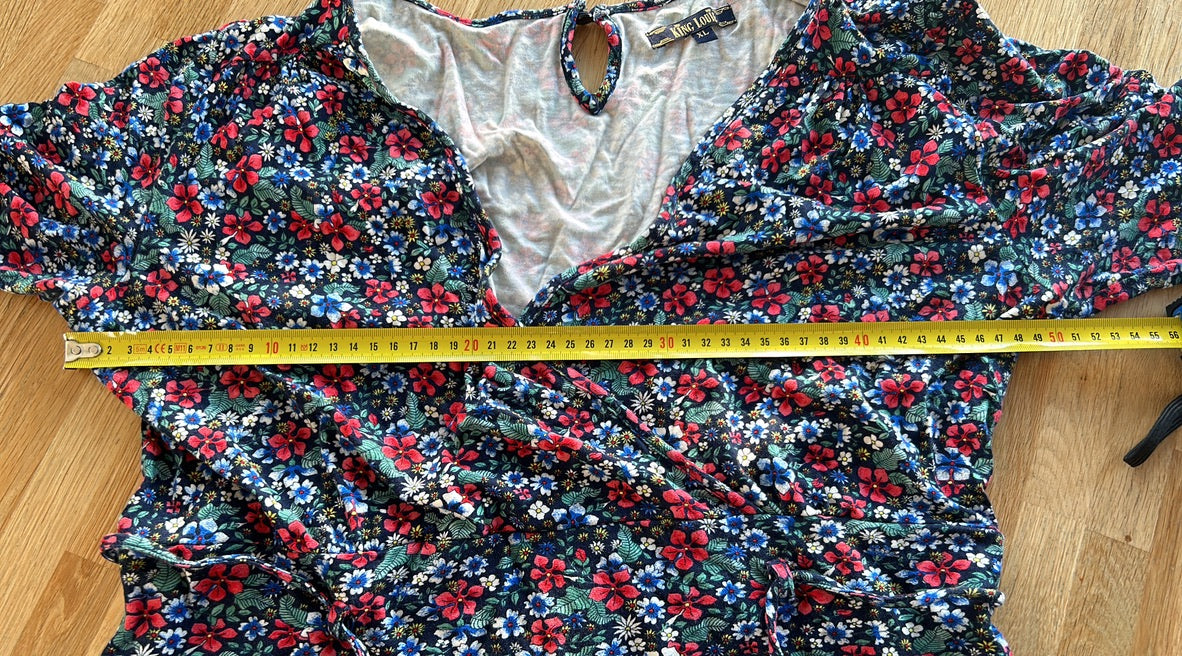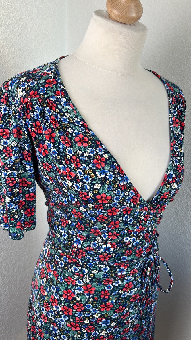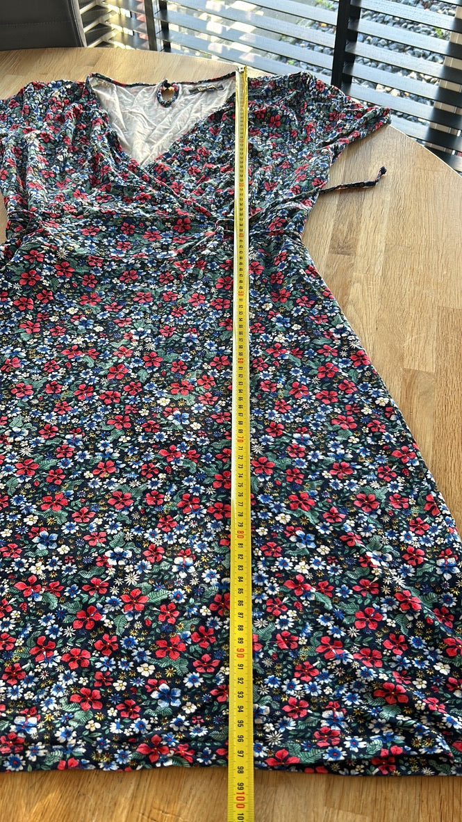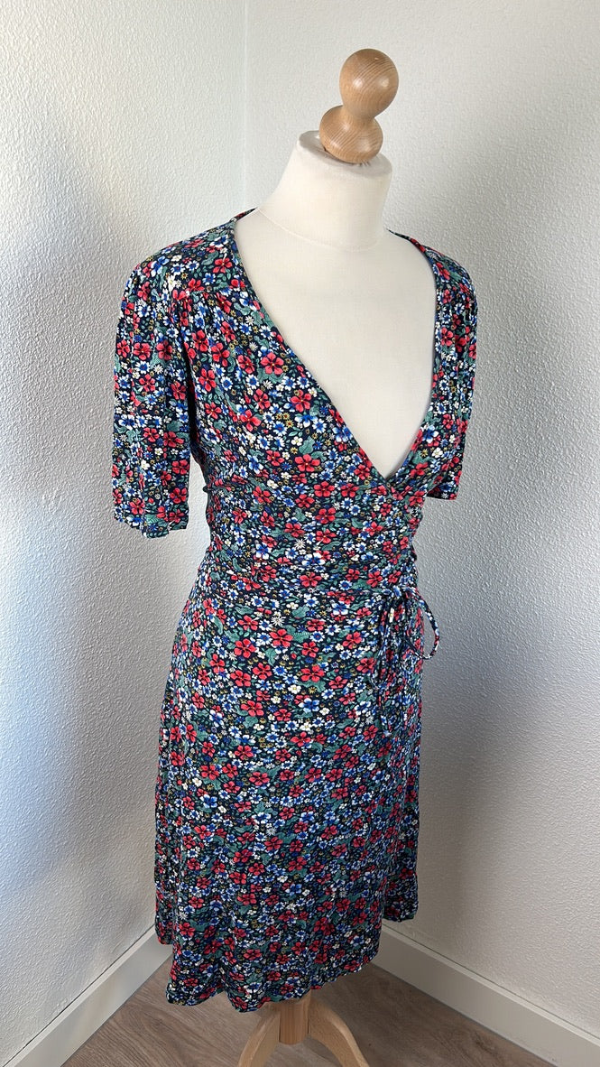 - Donkerblauw met gekleurde bloemen print in wit rood en groen