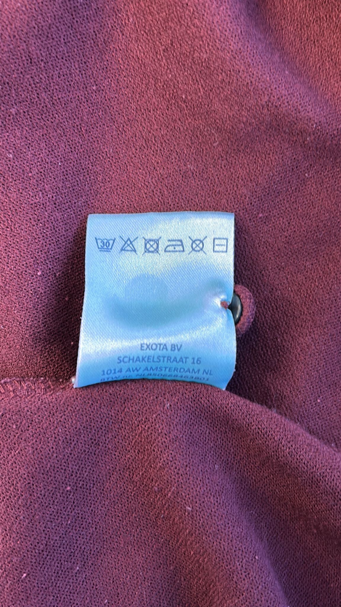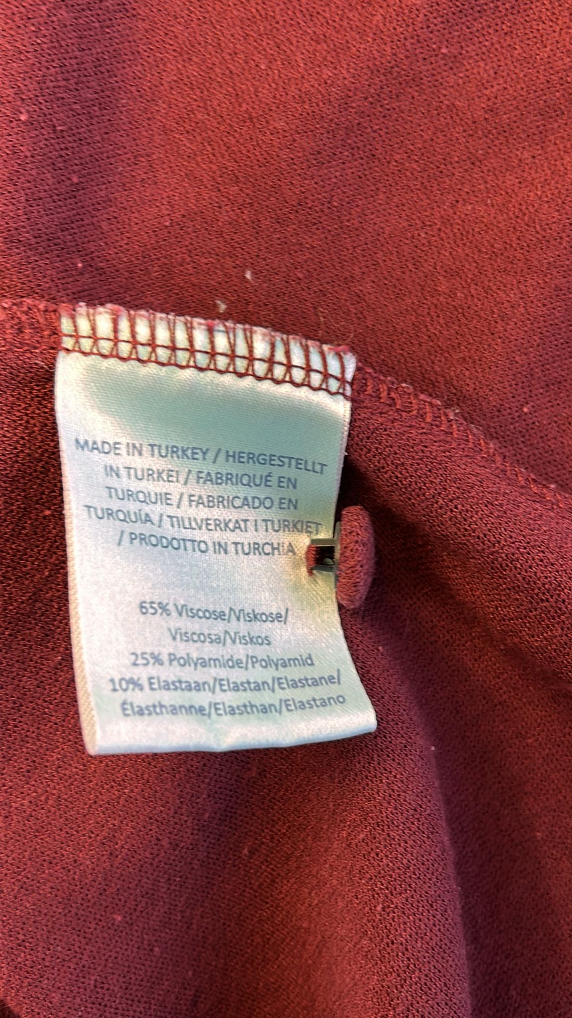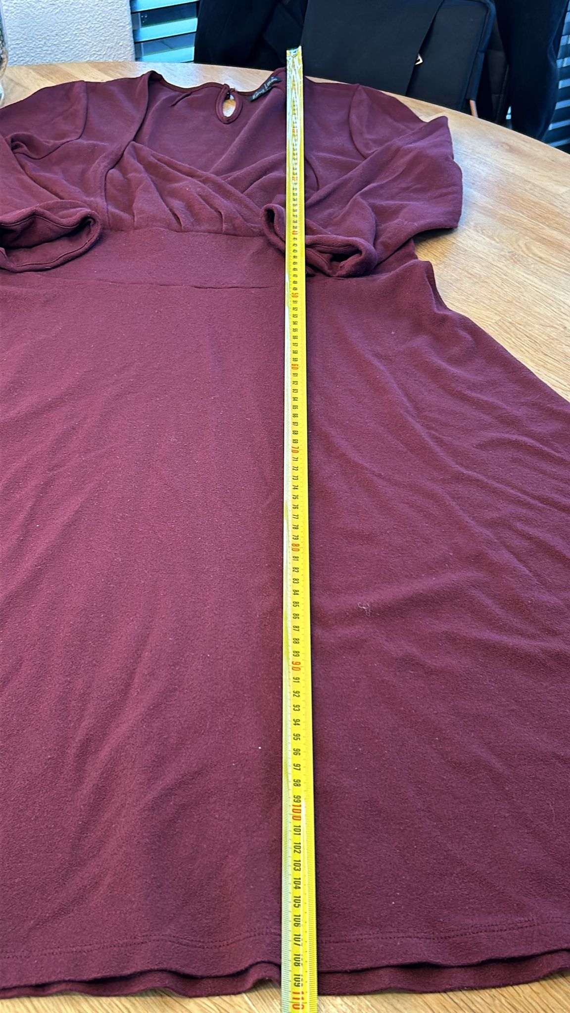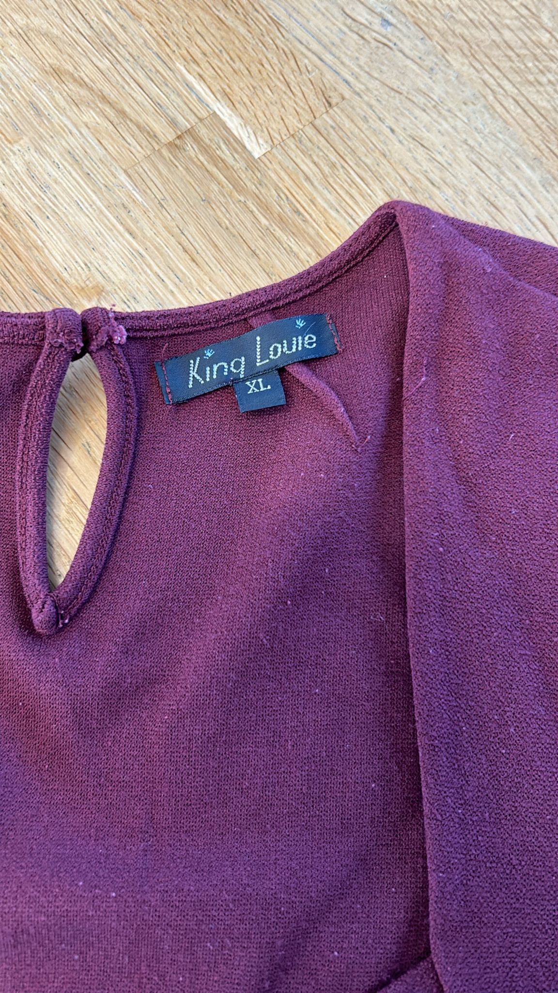 - Hartvormige halslijn, lange mouwen, taille met stoffen knoopjes