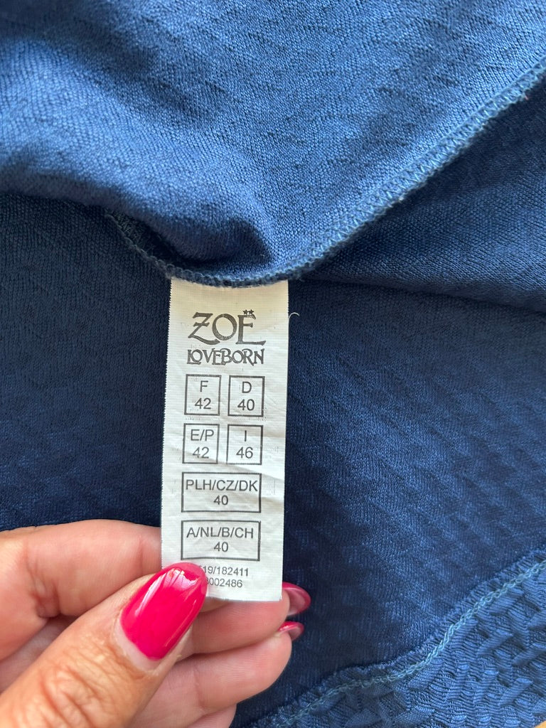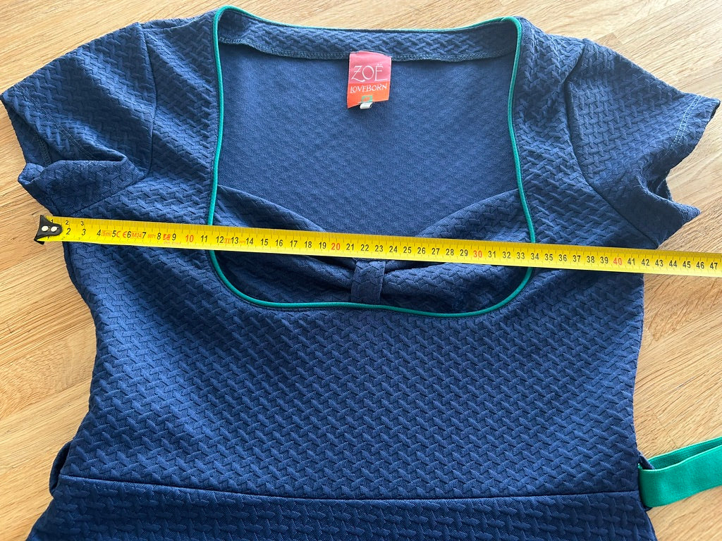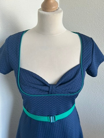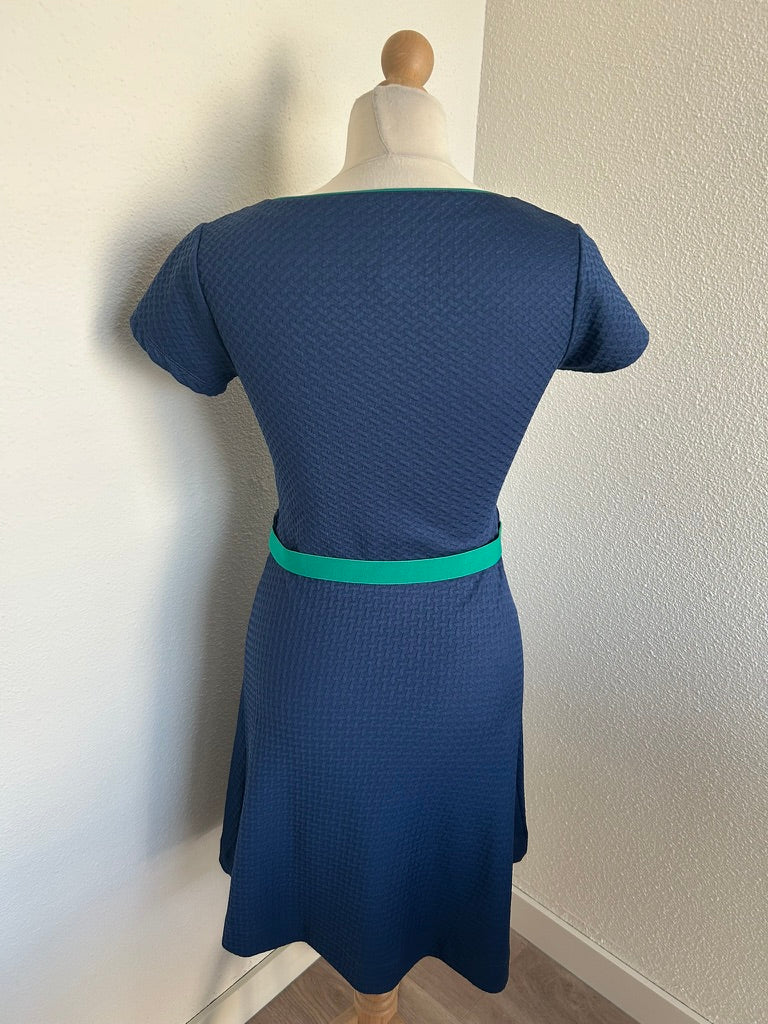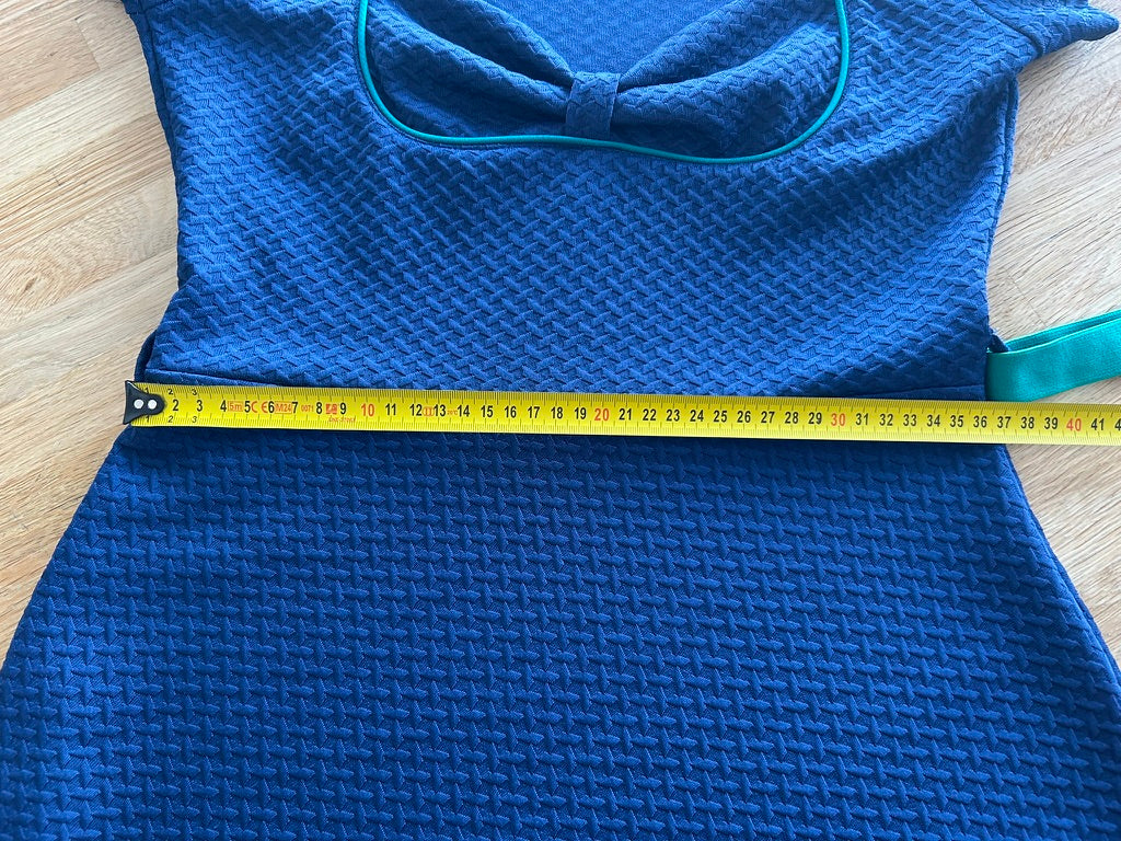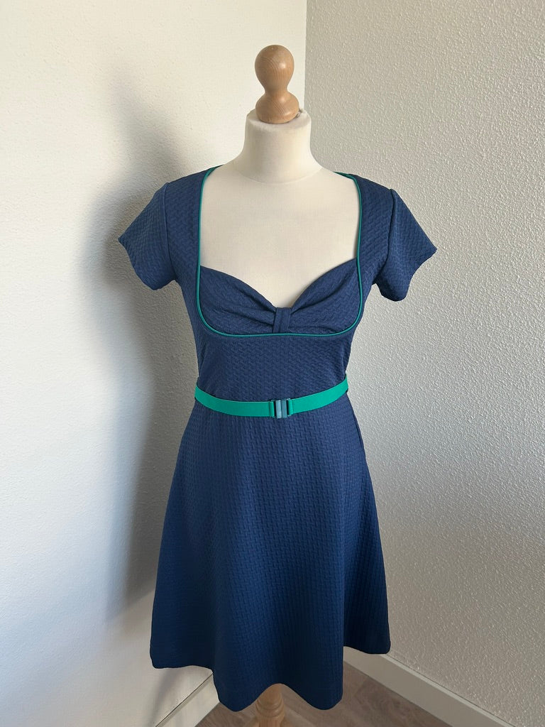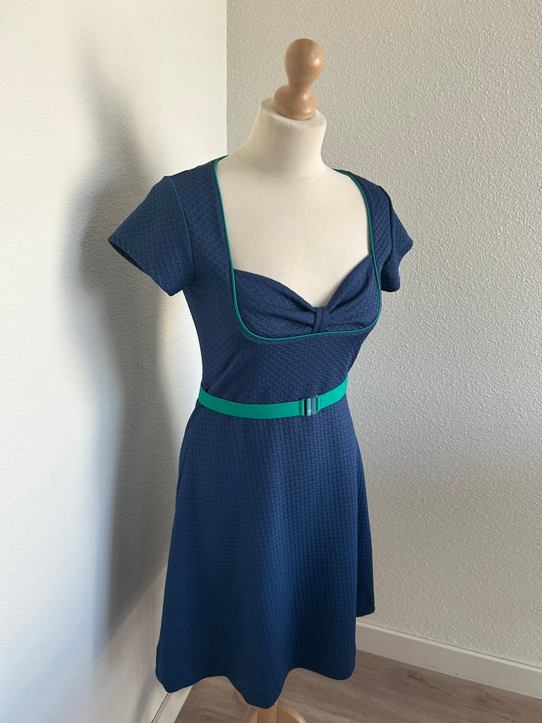 - Prachtige blauwe kleur met patroon in de stof en groene details