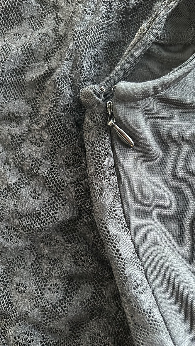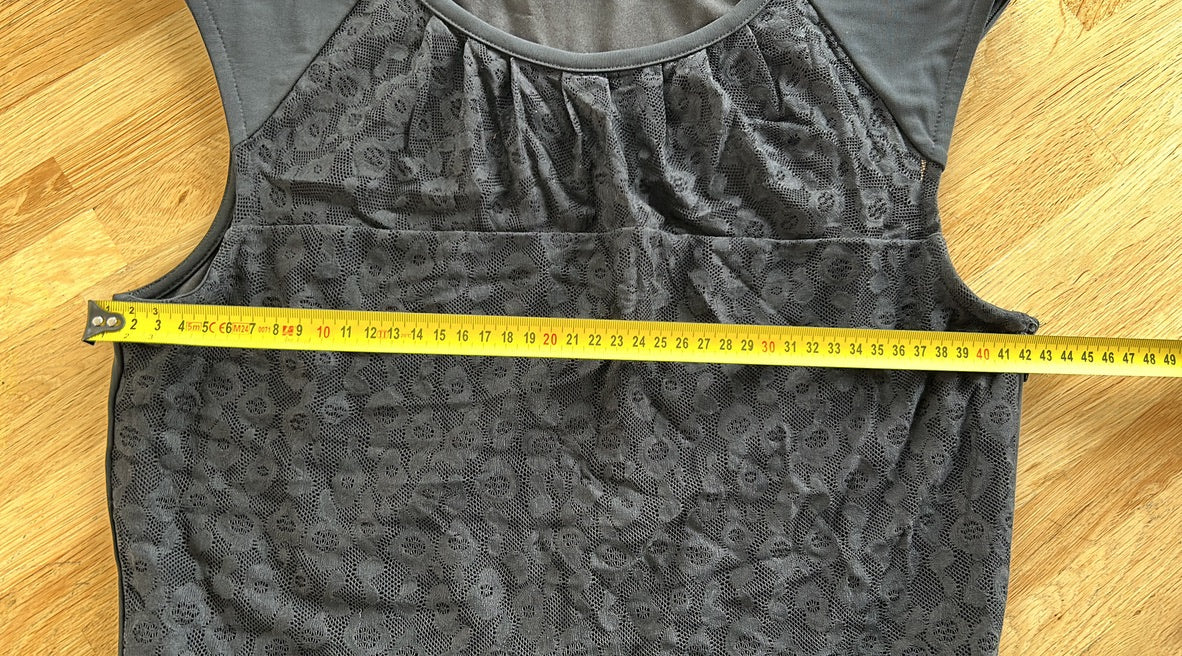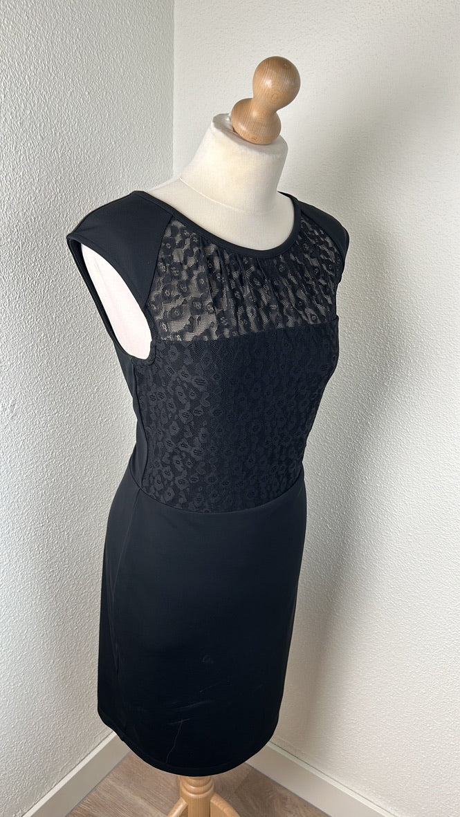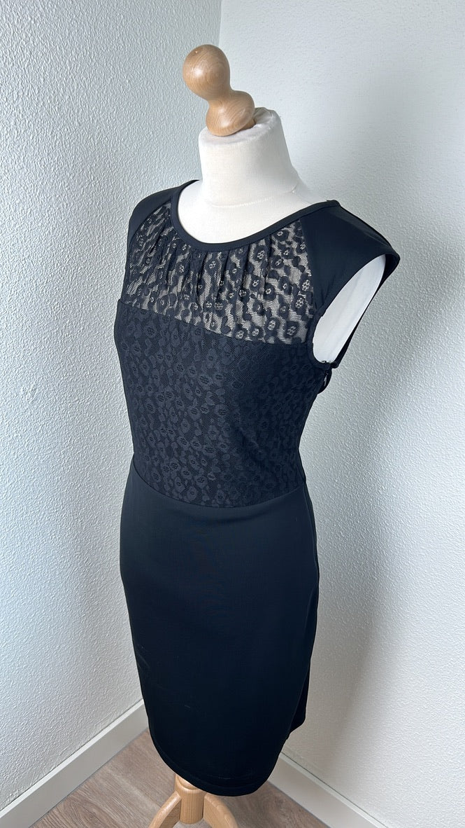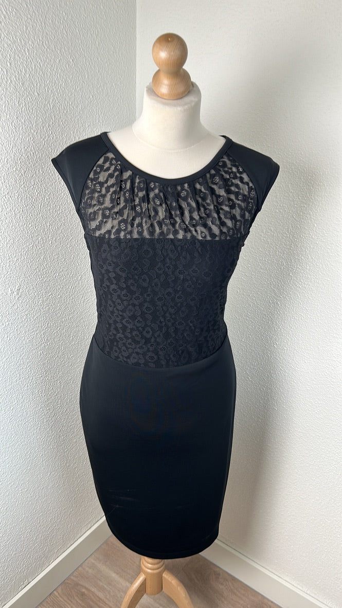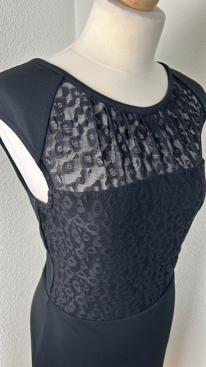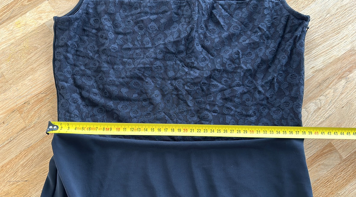 - Ronde halslijn met kant op de borst, mouwloos, getailleerd, rits in de zij