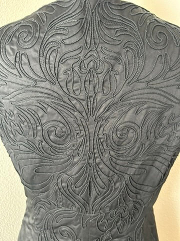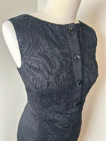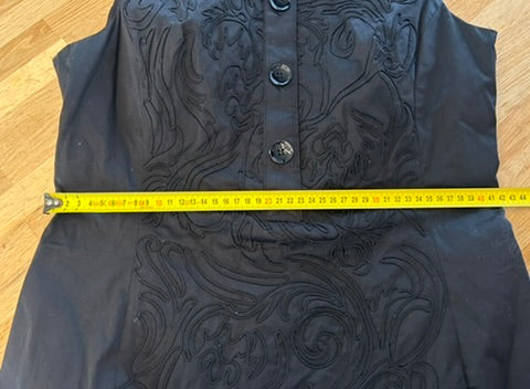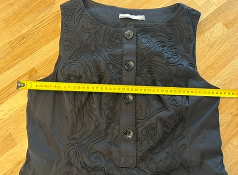 - Ronde halsijn , mouwloos, knopen op de borst, getailleerd