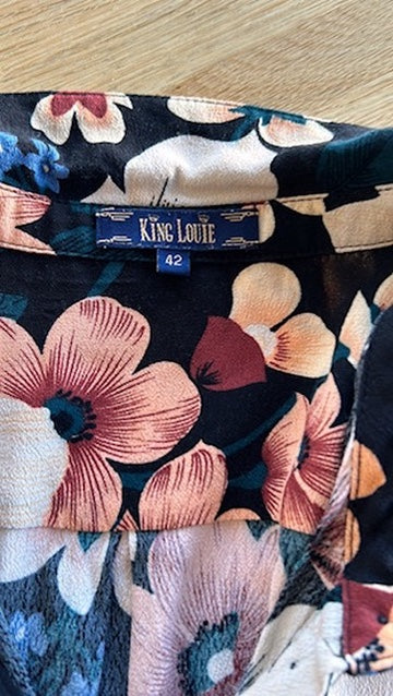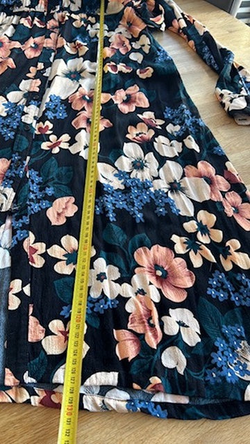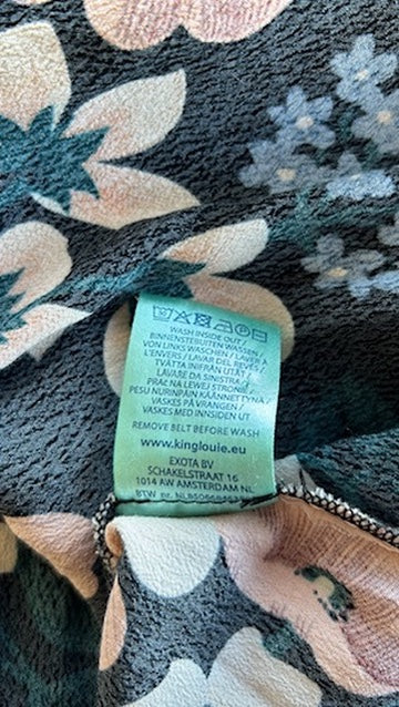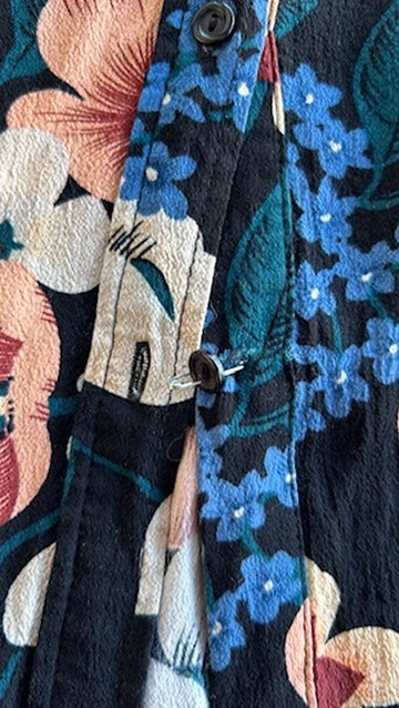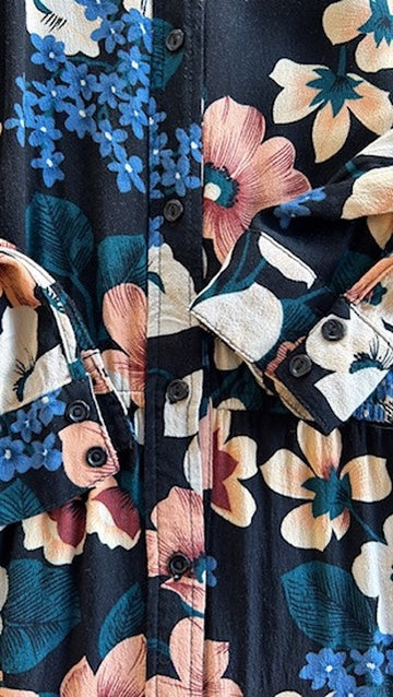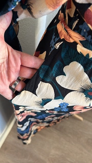 - Zwart met pastel kleurige bloemen print in beige oranje blauw