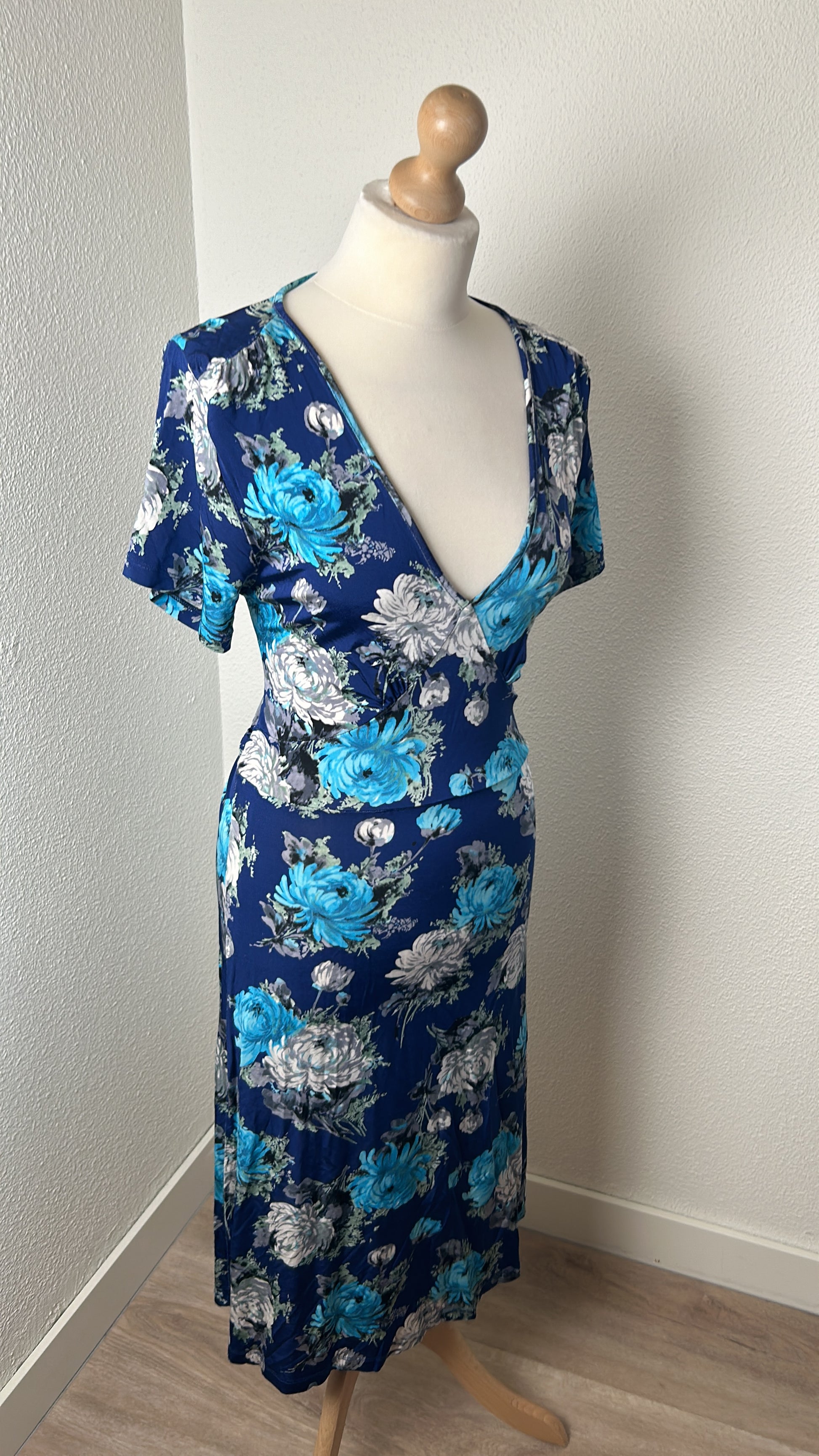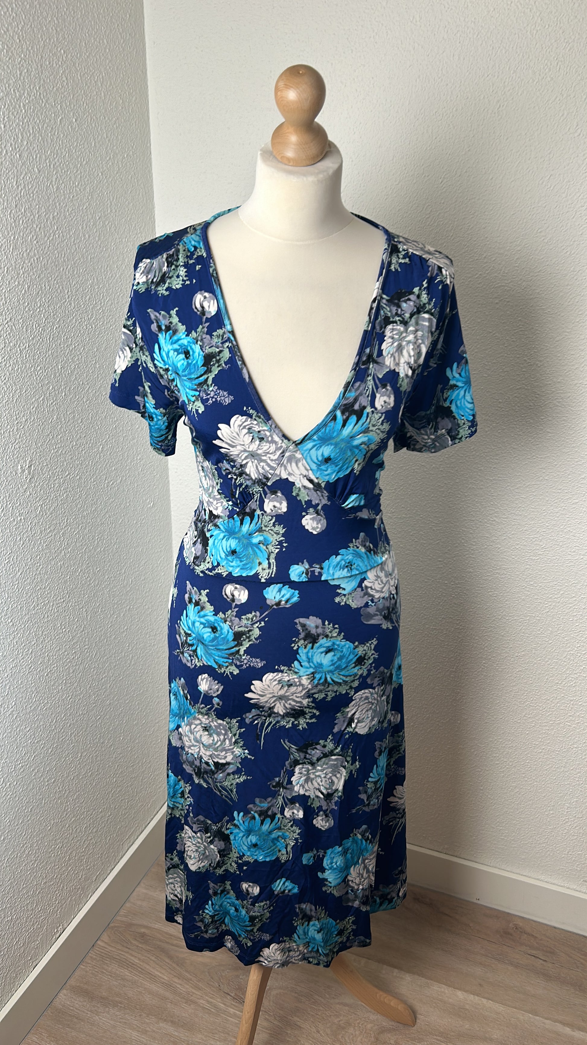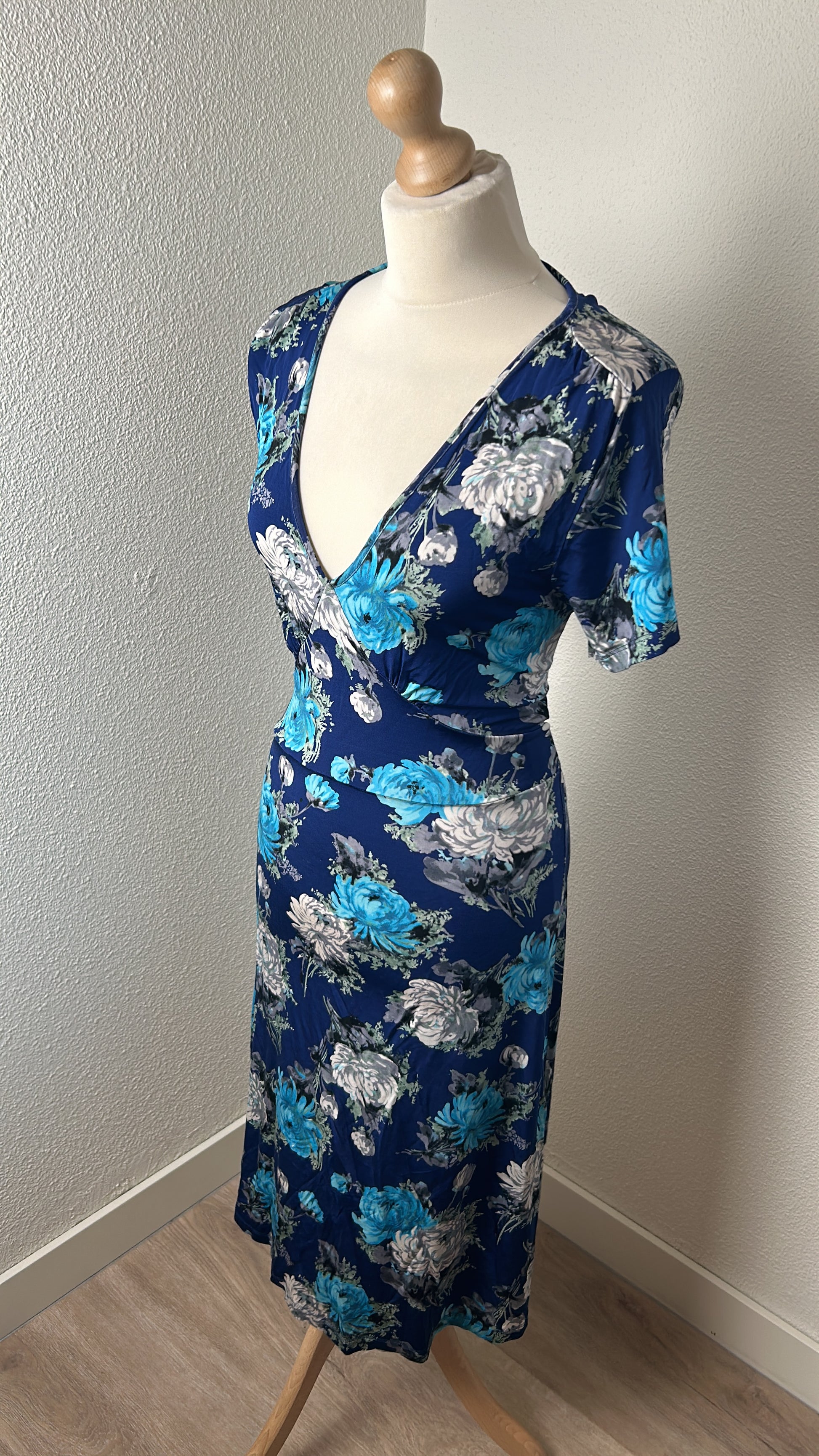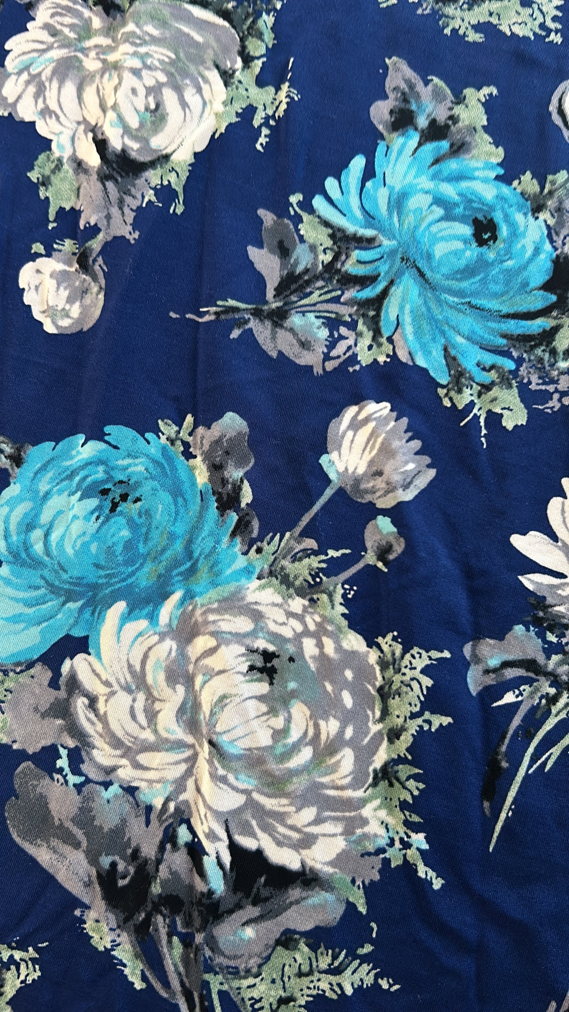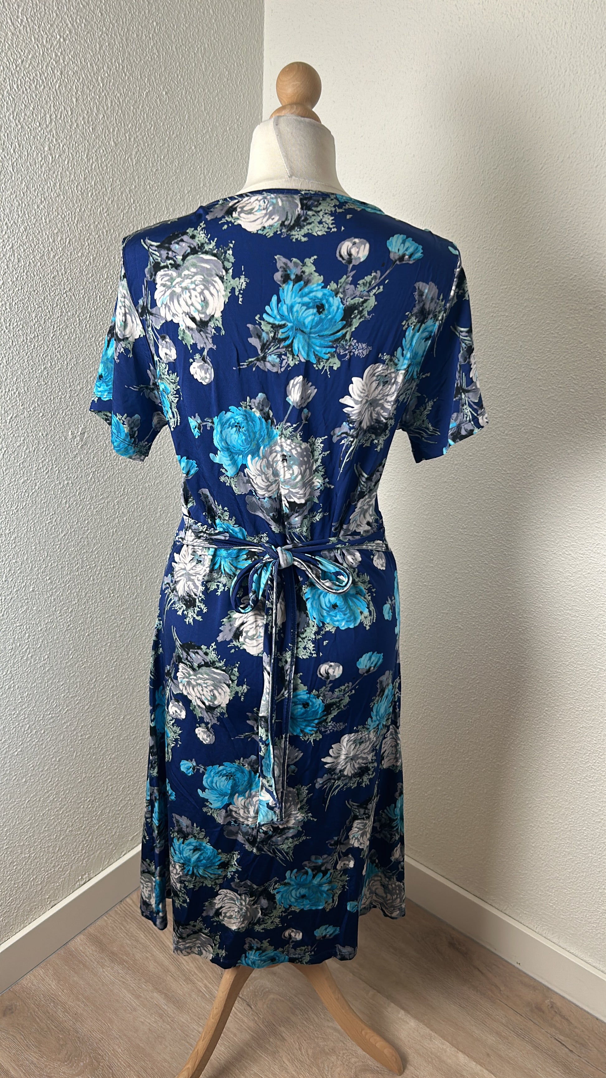 - Blauw met zilvergrijze, licht en donker blauwe bloemen print