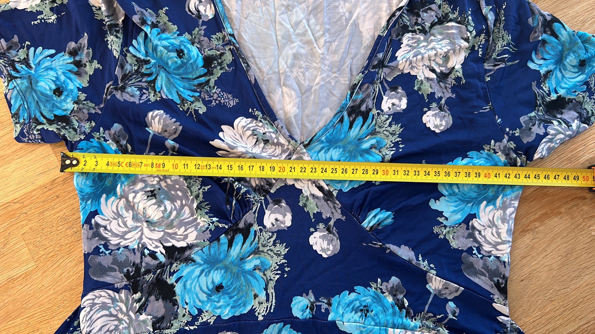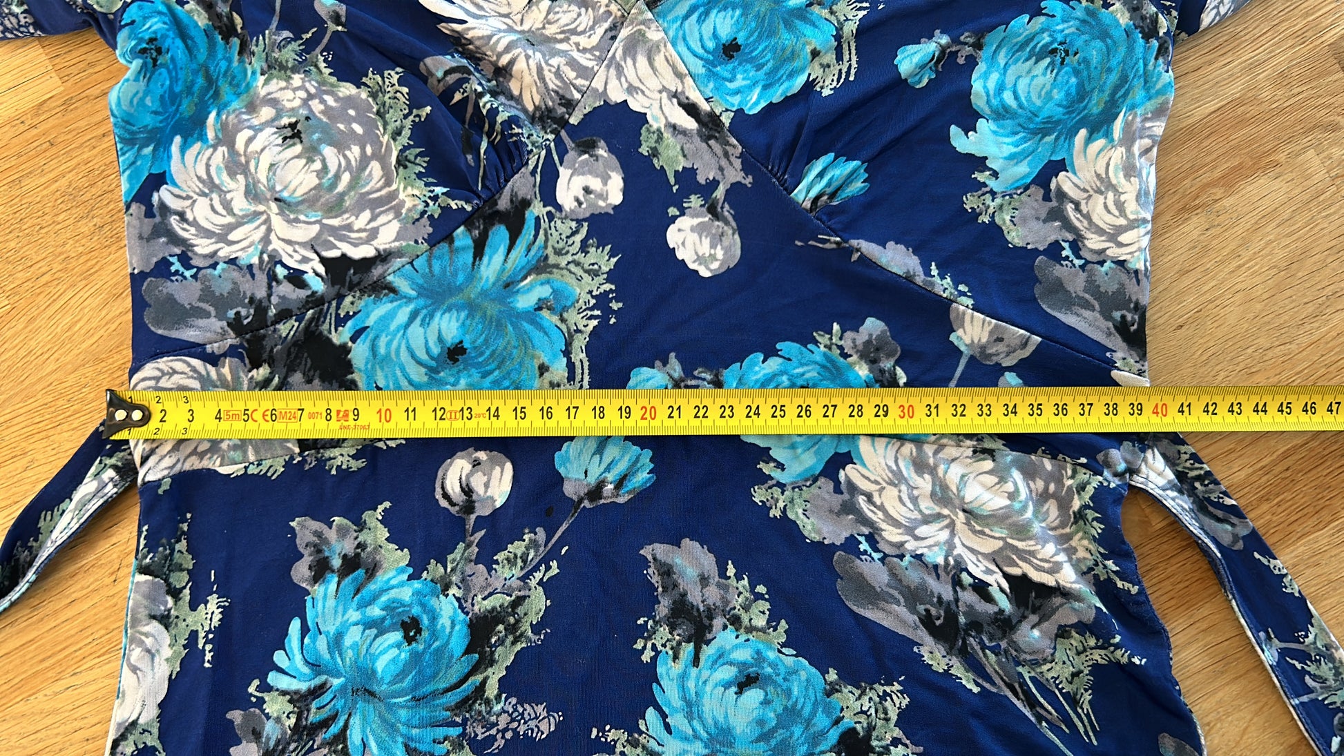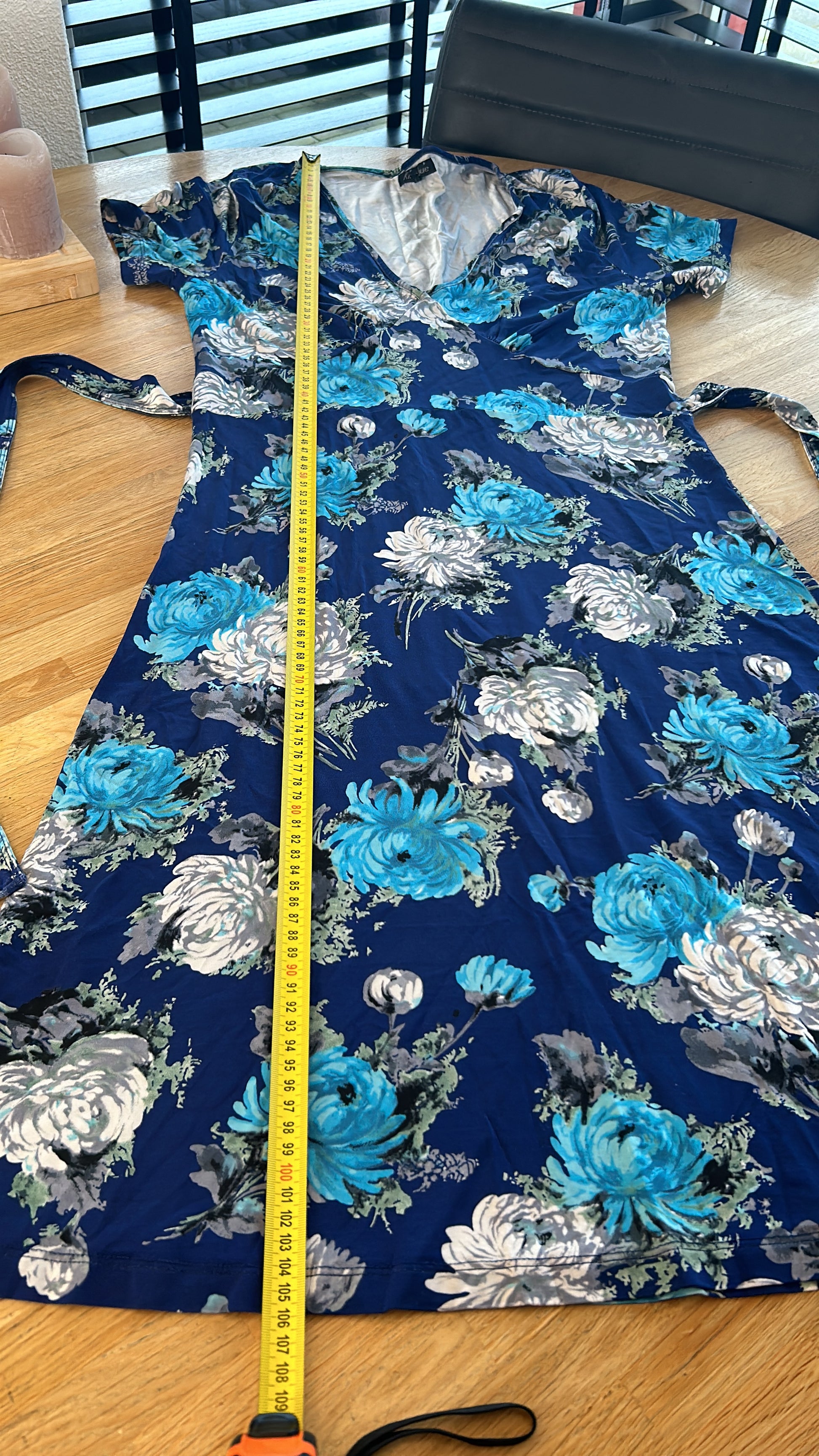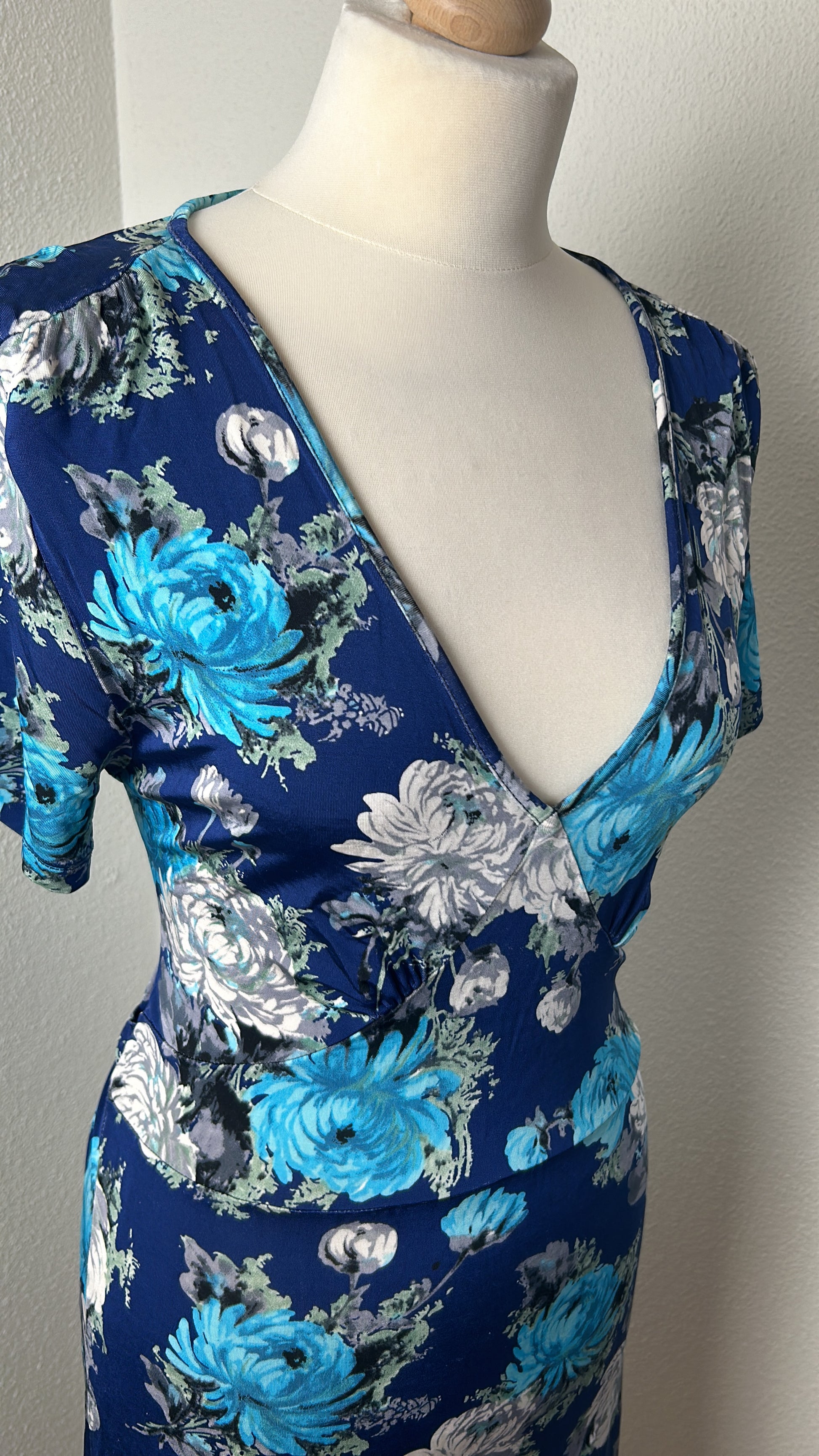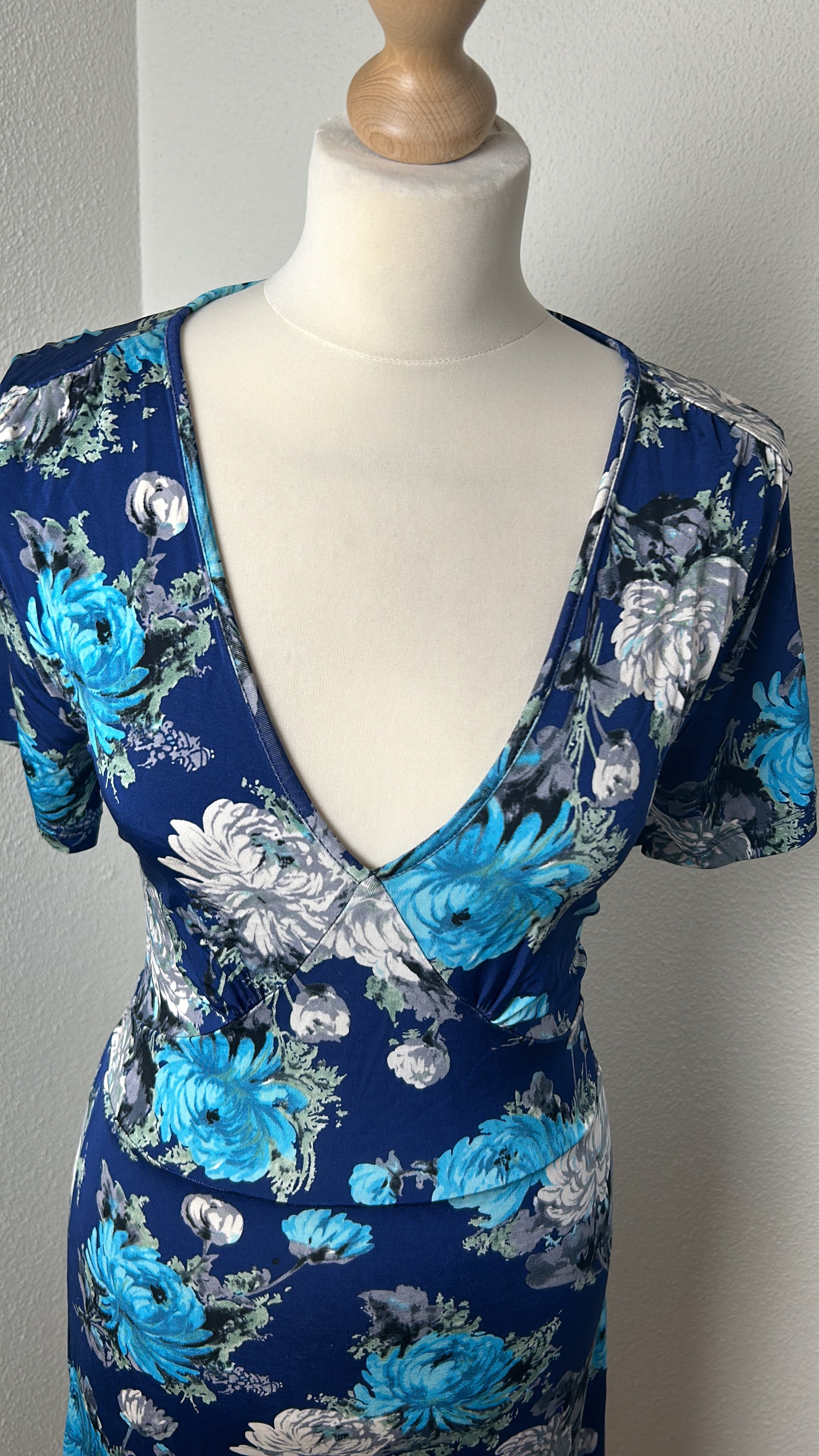 - Blauw met zilvergrijze, licht en donker blauwe bloemen print