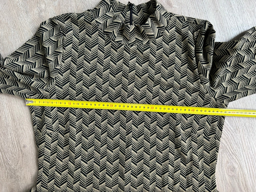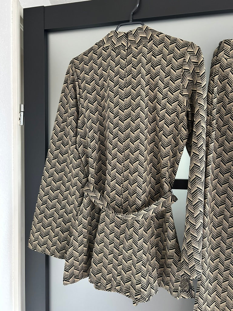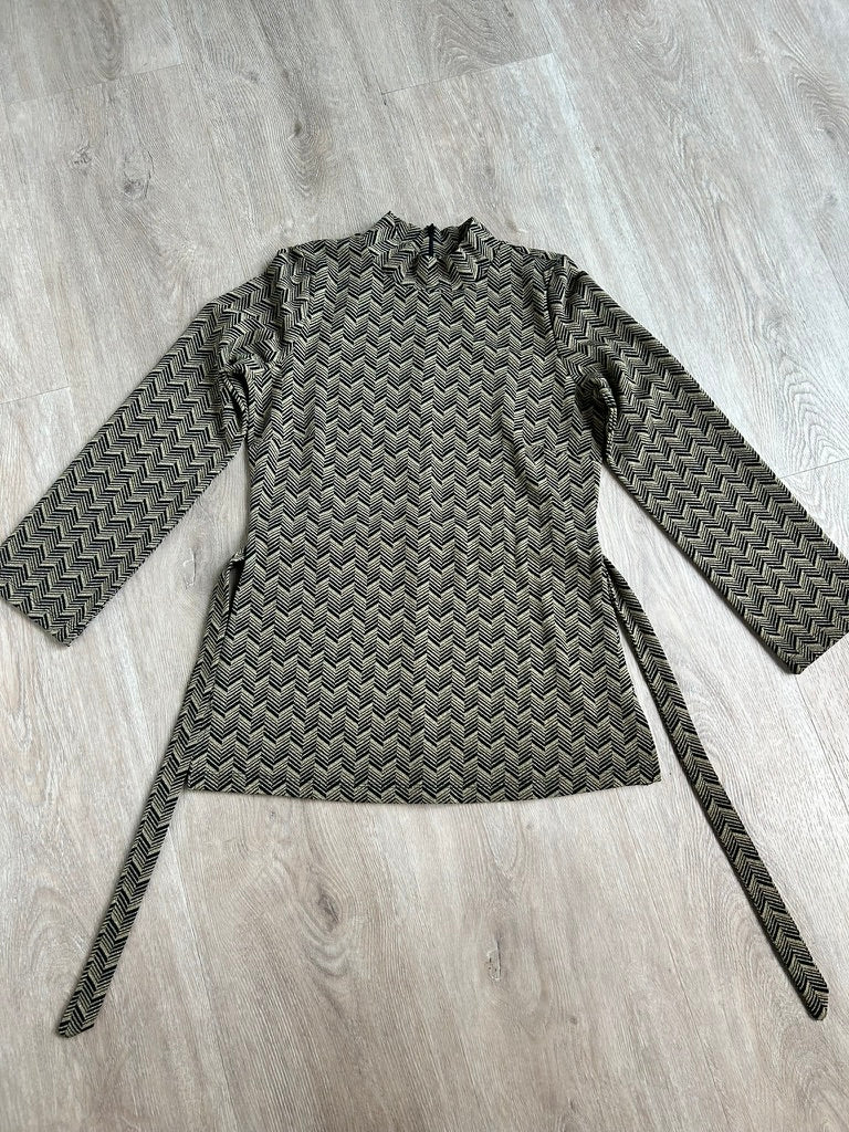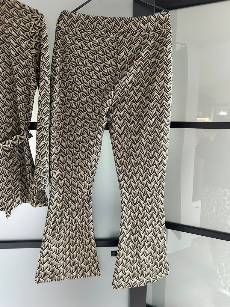 Zwart met gouden visgraat/zigzag print