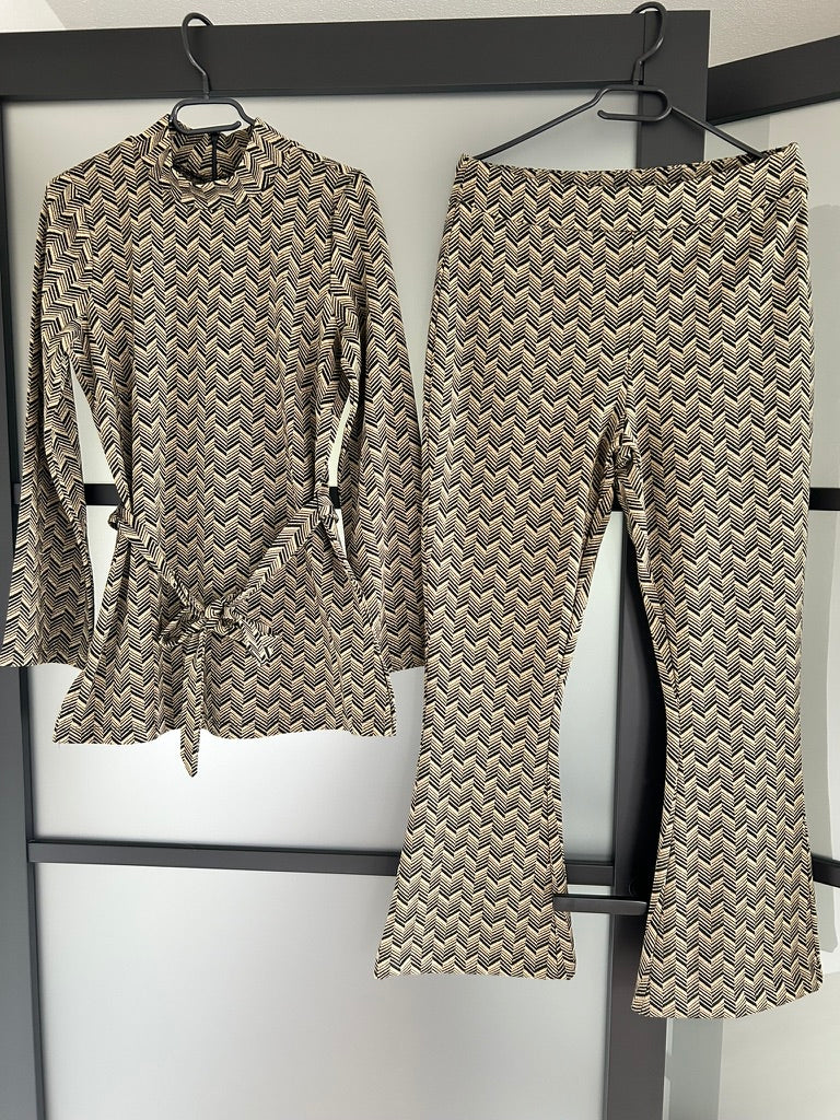 Facet Black met Heliosa top en Flare pants