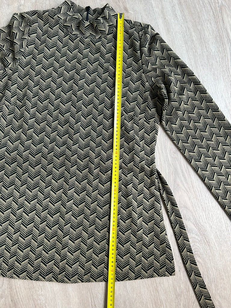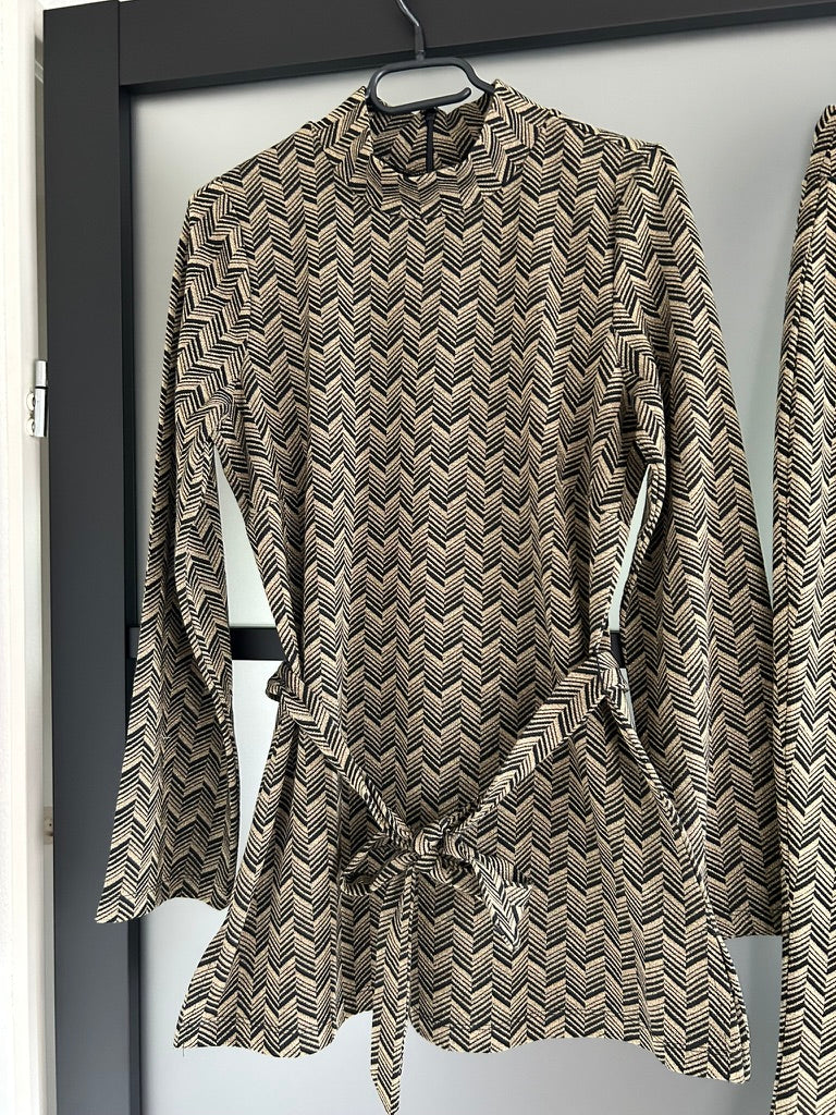 Heliosa tunic top; kraagje met rits in de nek, lange mouwen, knooppunt rond het middel