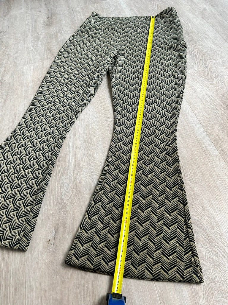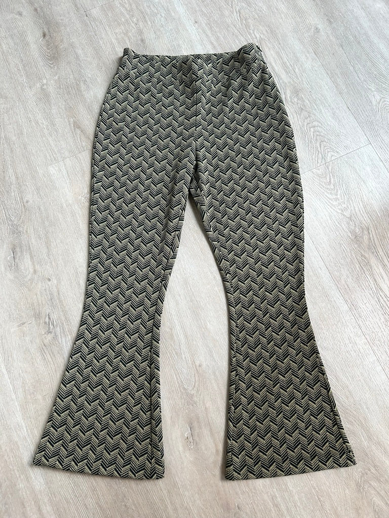 Flare pants; tailleband met rits in de zij, uitlopende broekspijpen