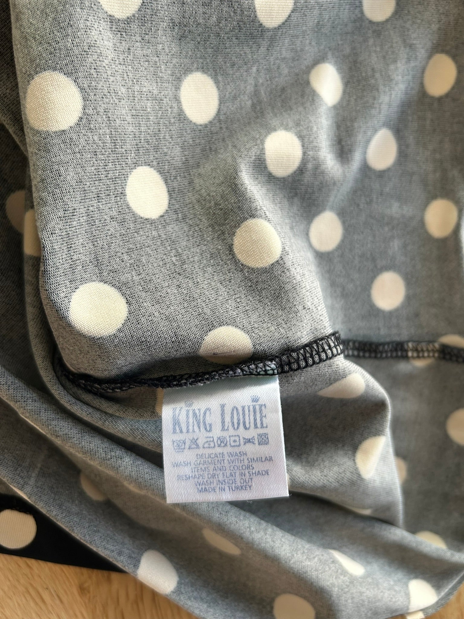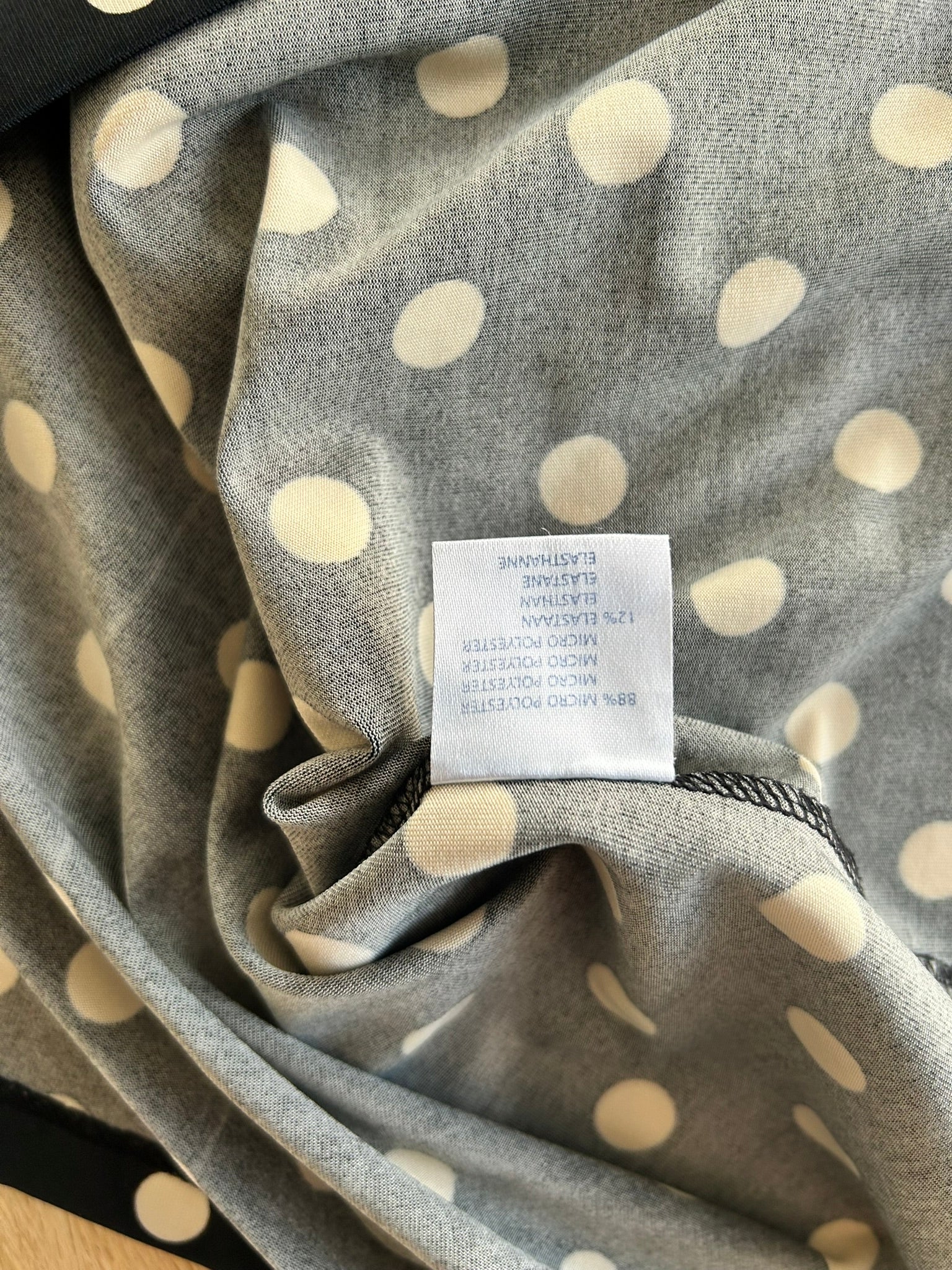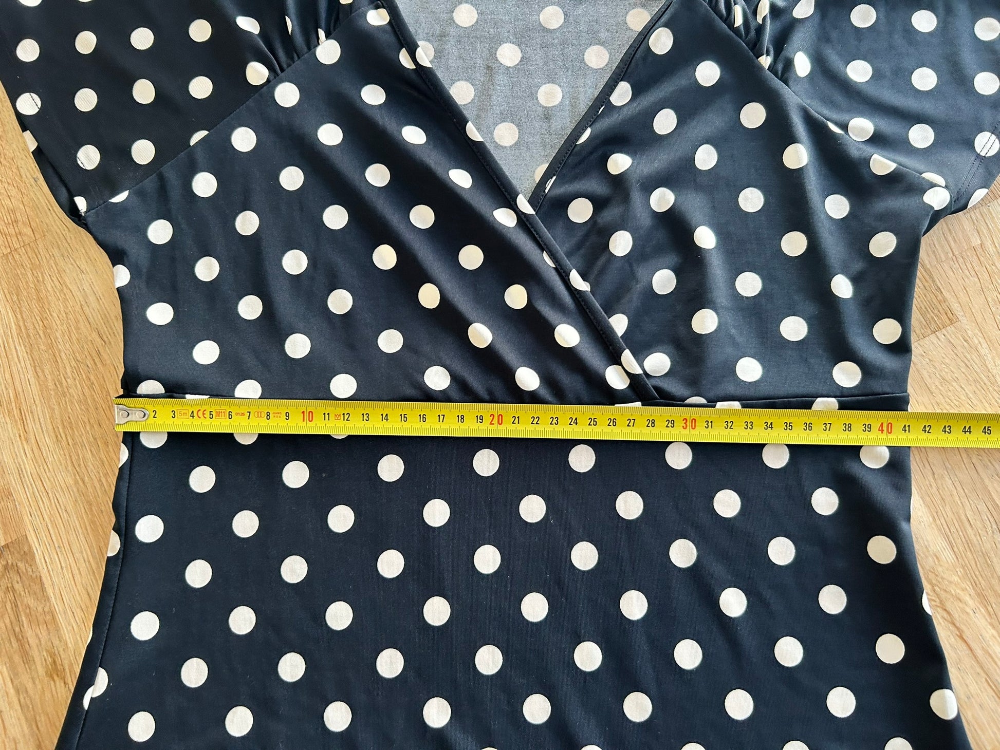 - Zwarte jurk met creme witte stippen print