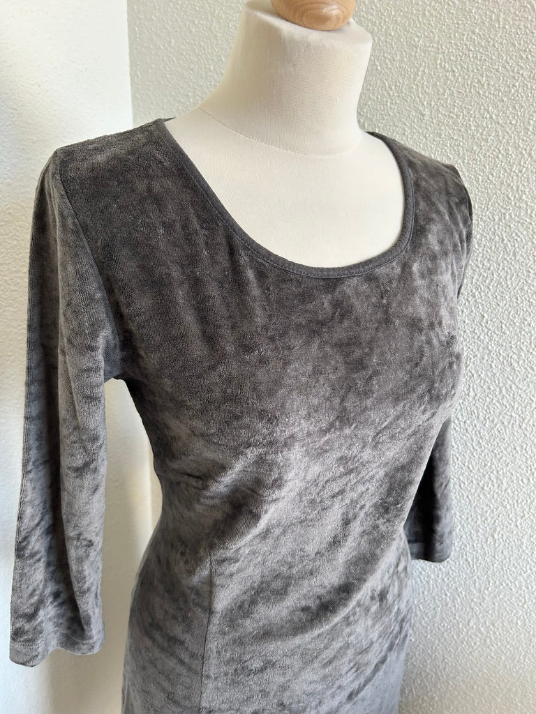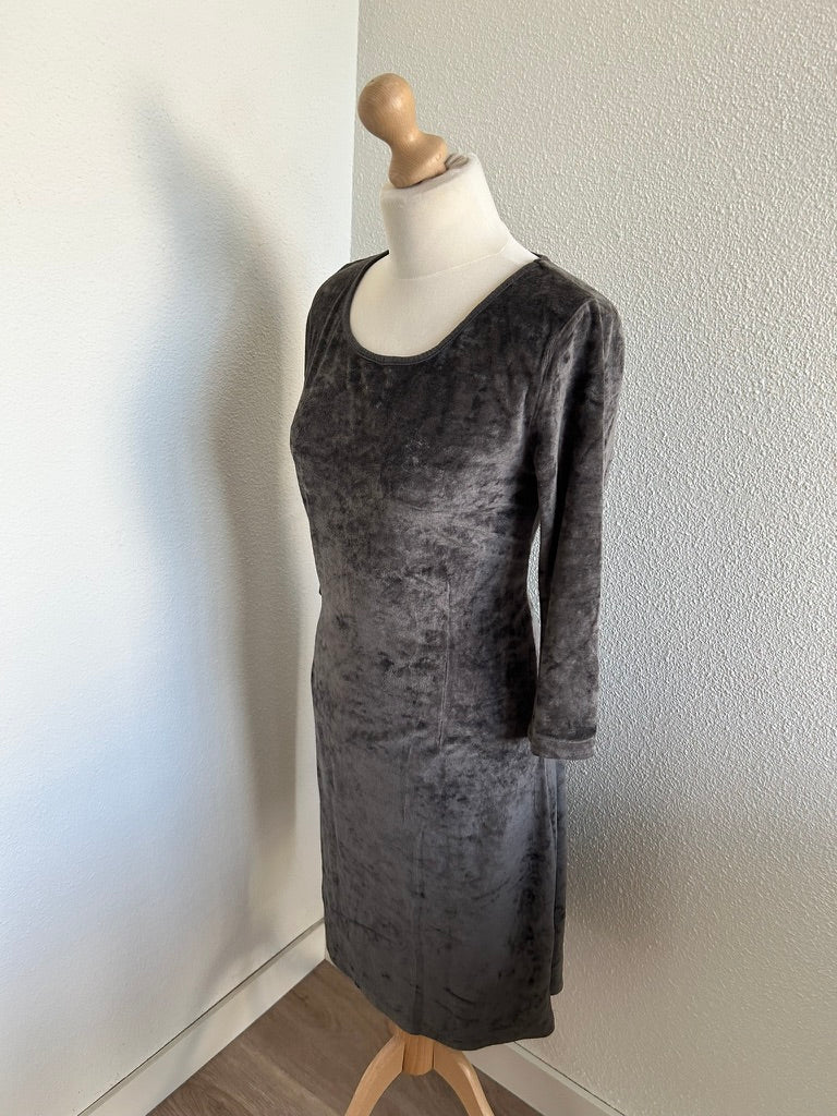 - Leuke retro jurk in zilver grijs met glans door het velours/velvet/fluweel