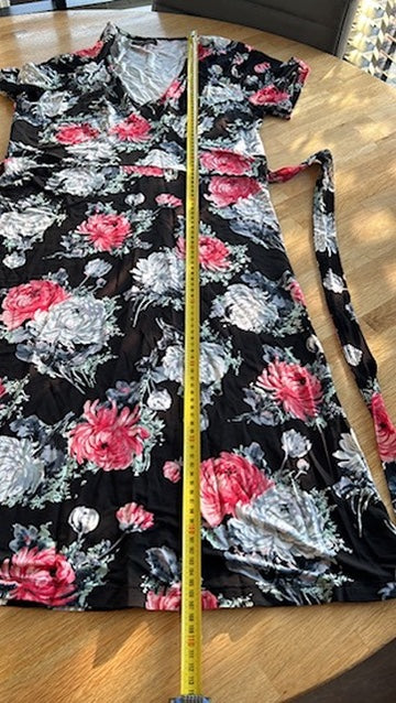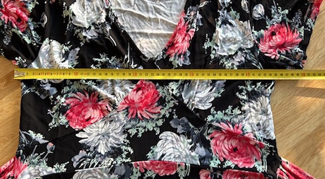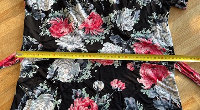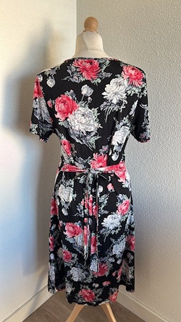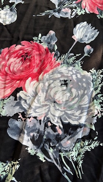 - Zwart met zilvergrijze en roze-rode roosjes/bloemen print