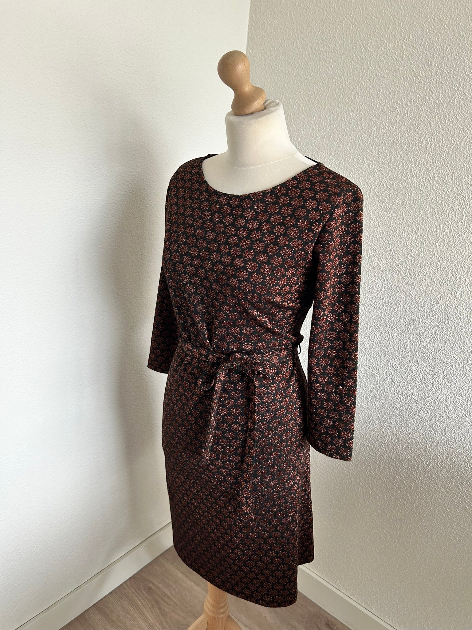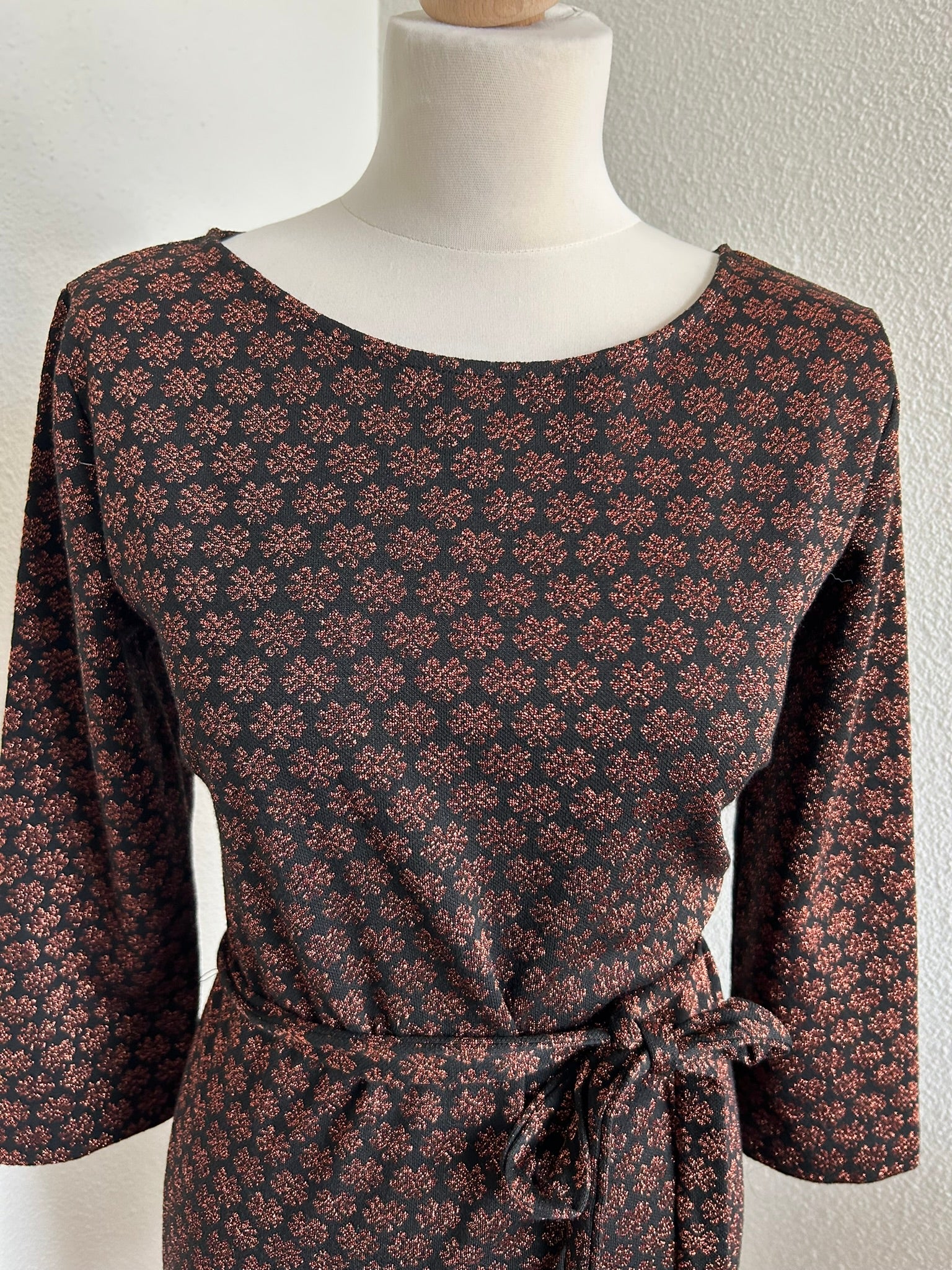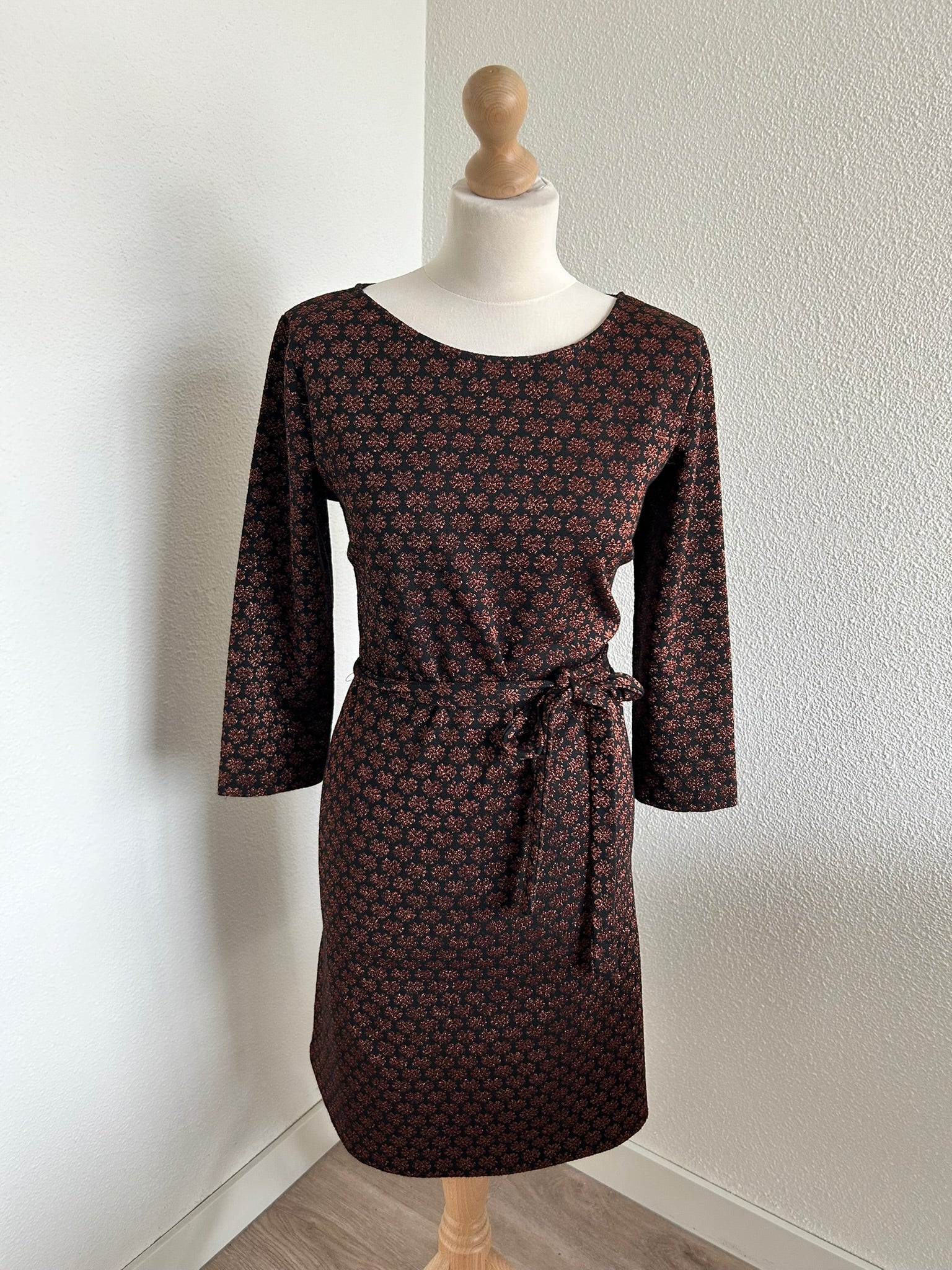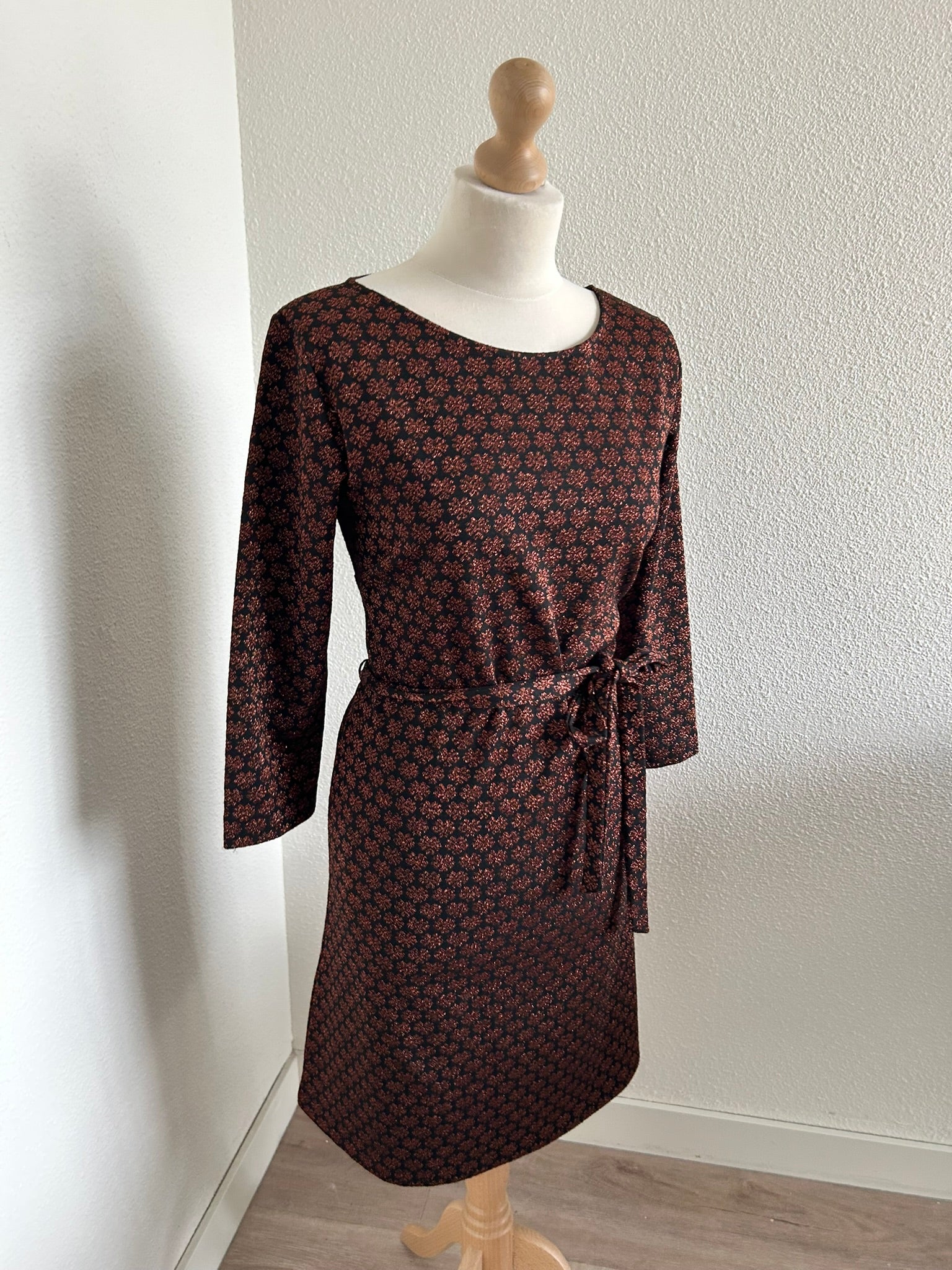 - Mooie boot-halslijn, lange mouwen, getailleerd door knooplintje