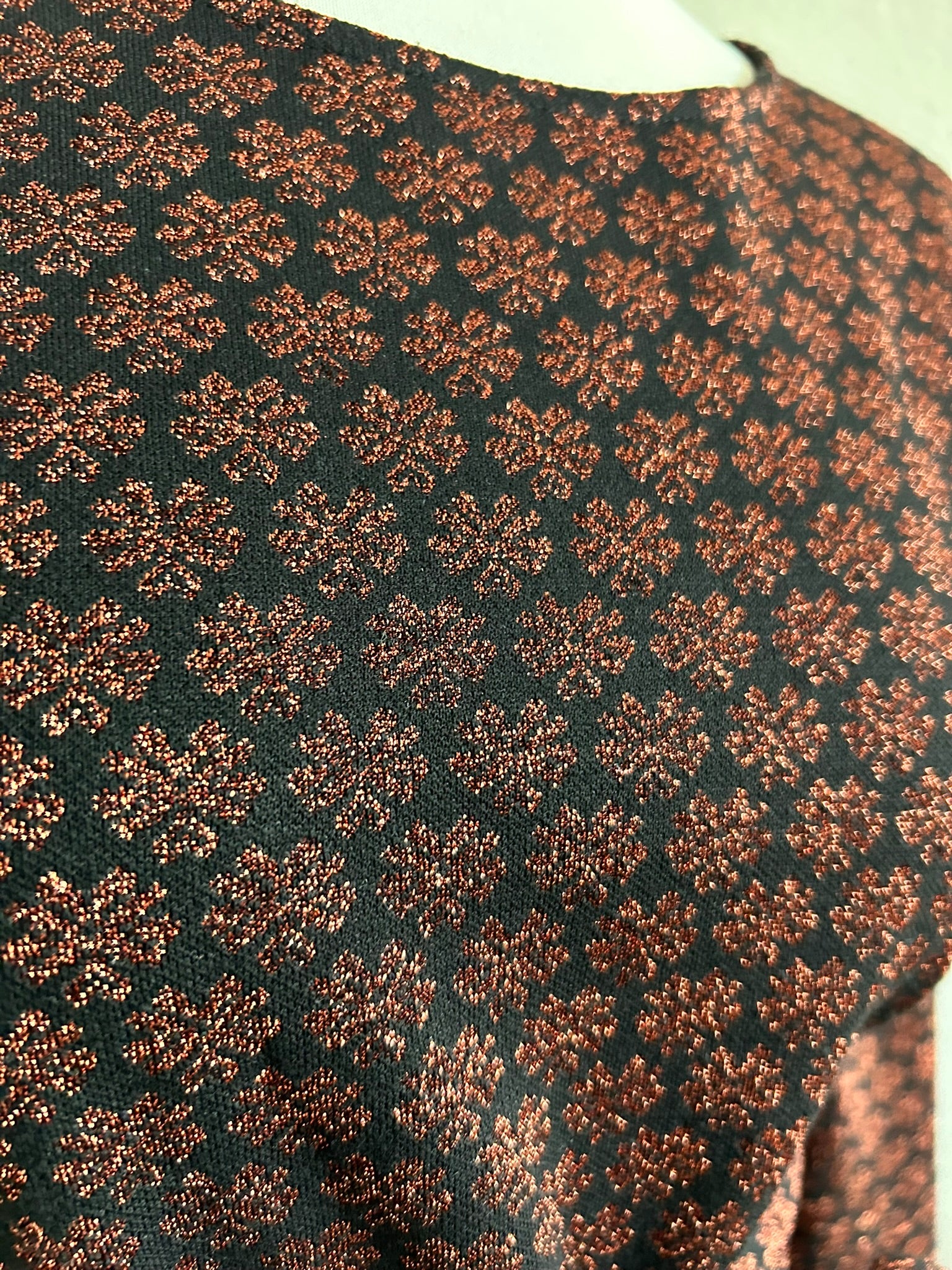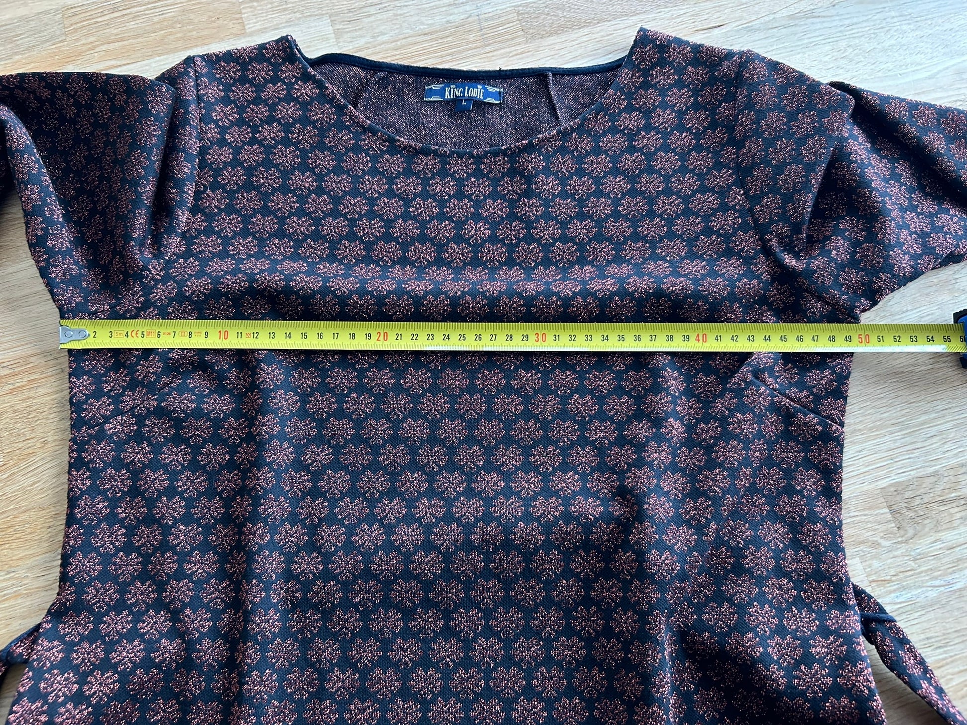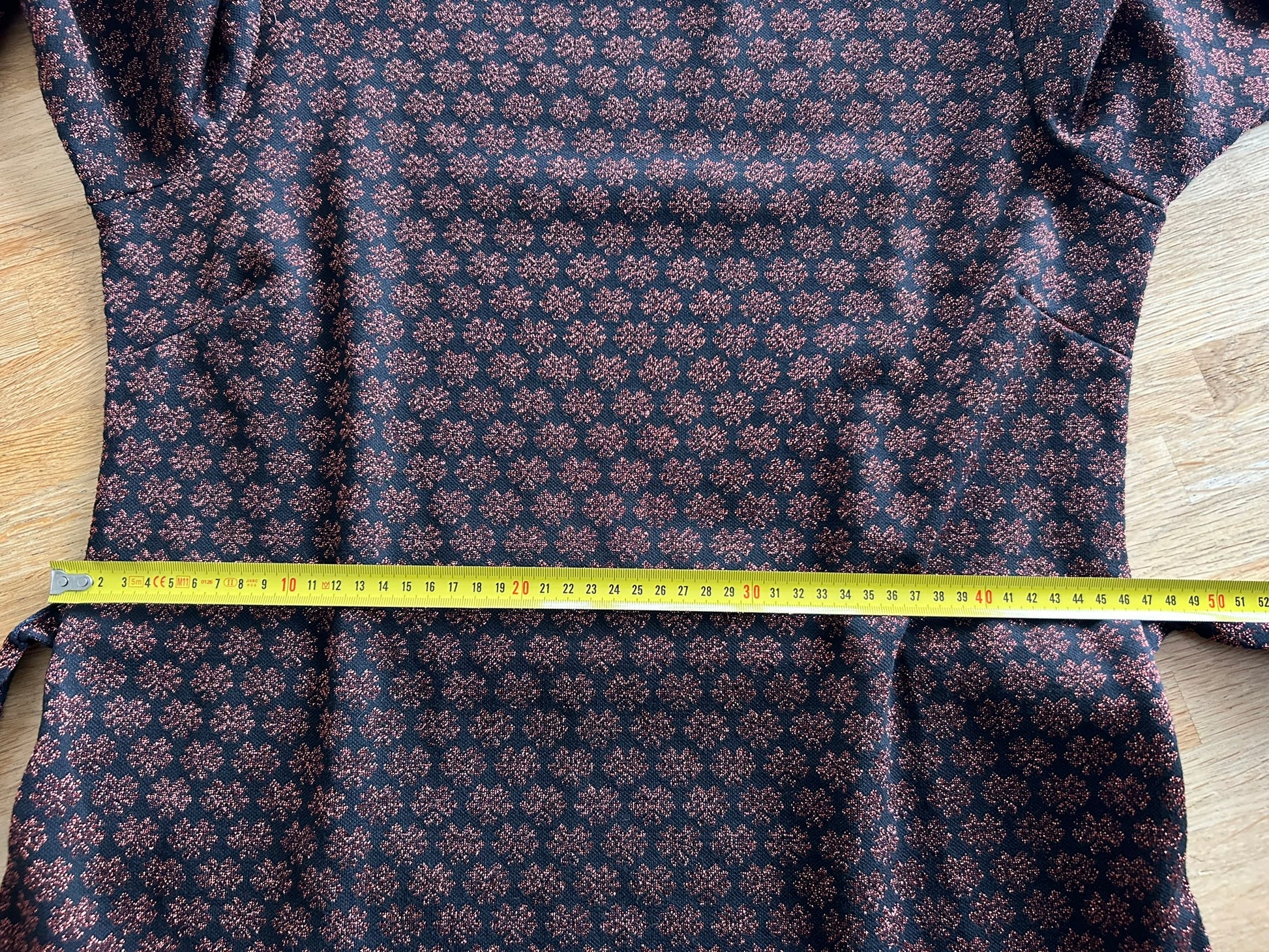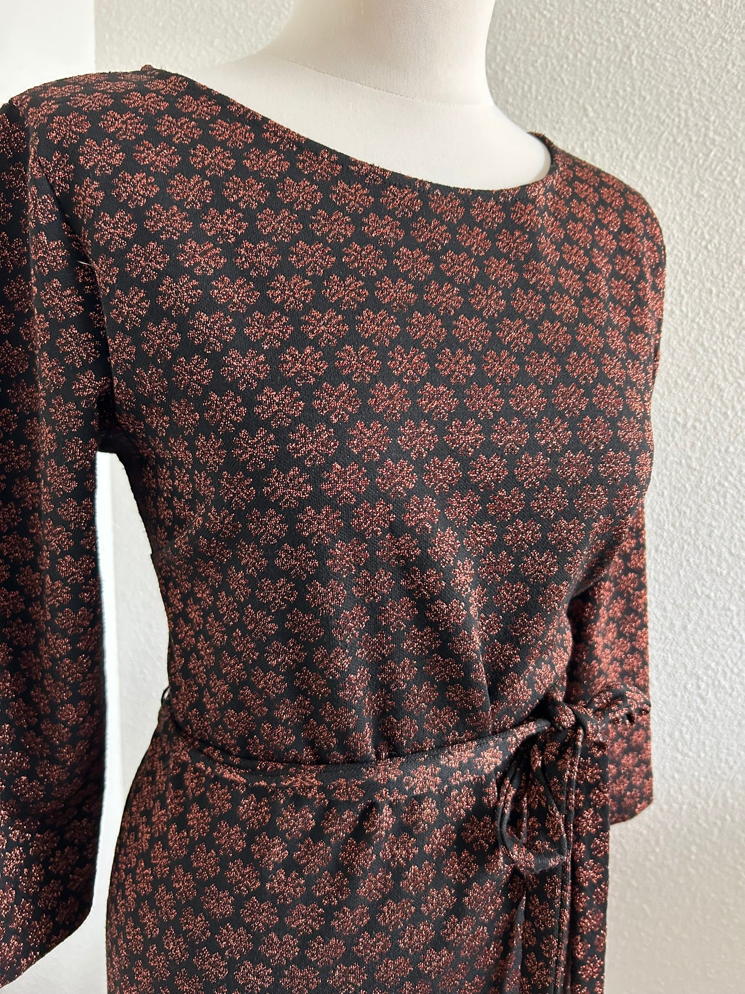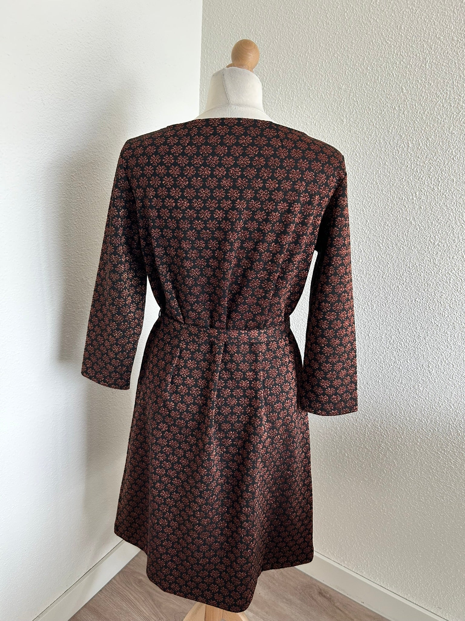 - Mooie boot-halslijn, lange mouwen, getailleerd door knooplintje