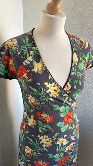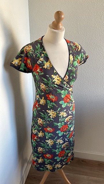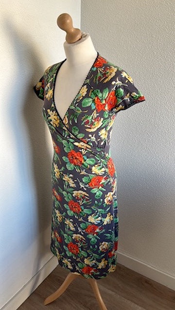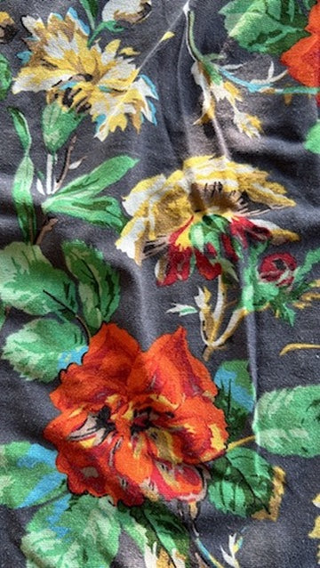 - Grijz, lichtgrijs met gele rode en groene rozen/bloemen print