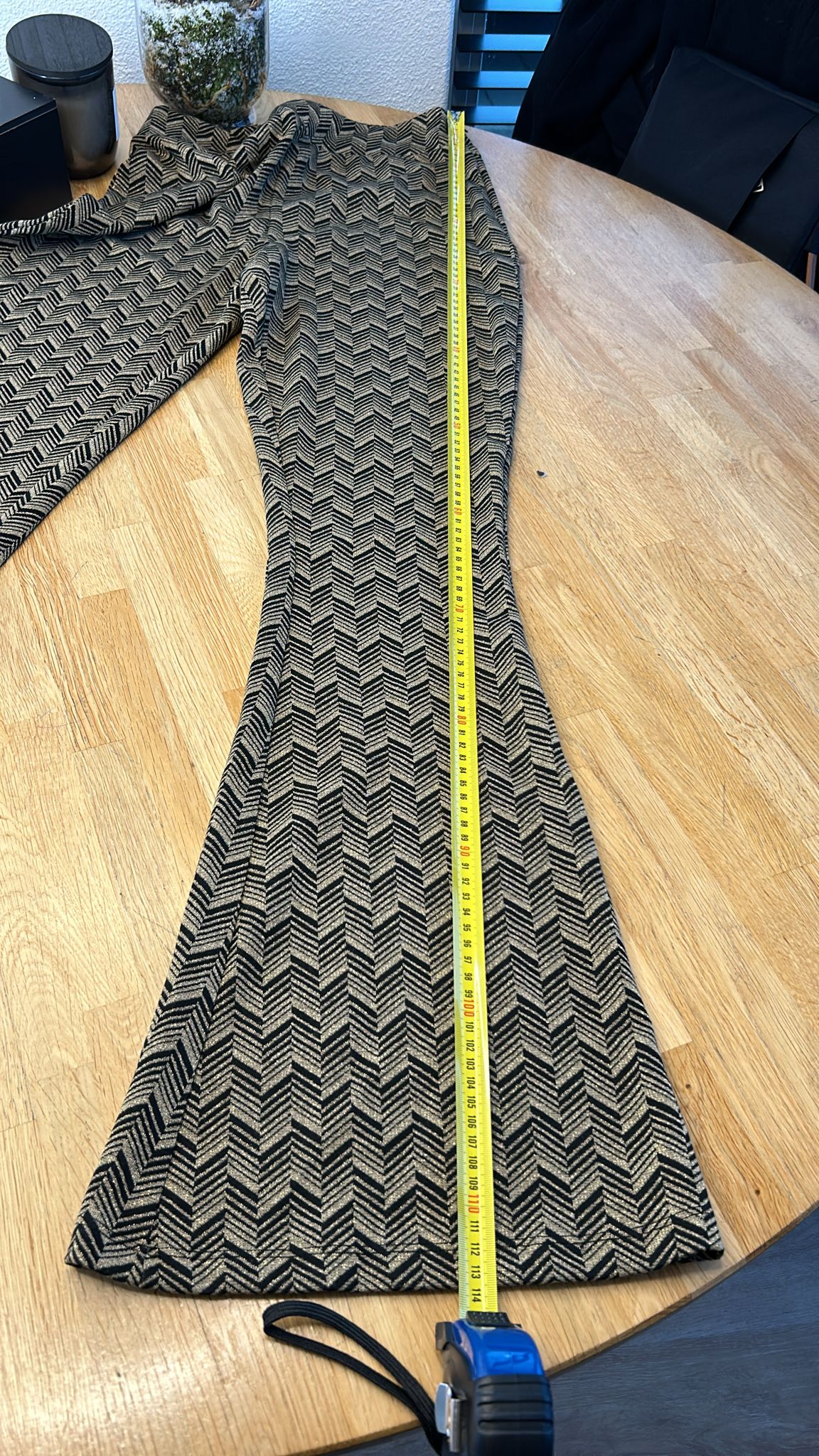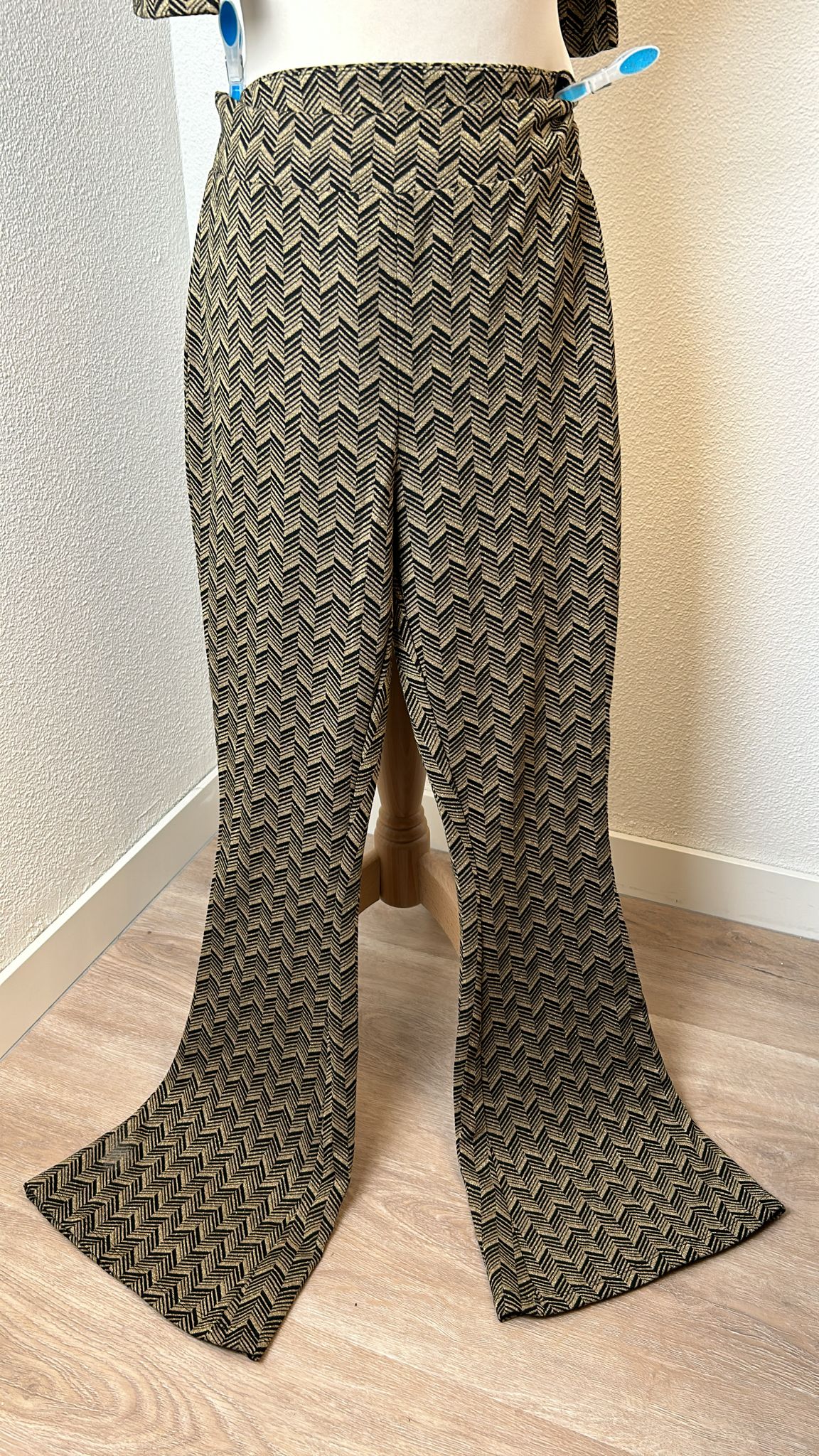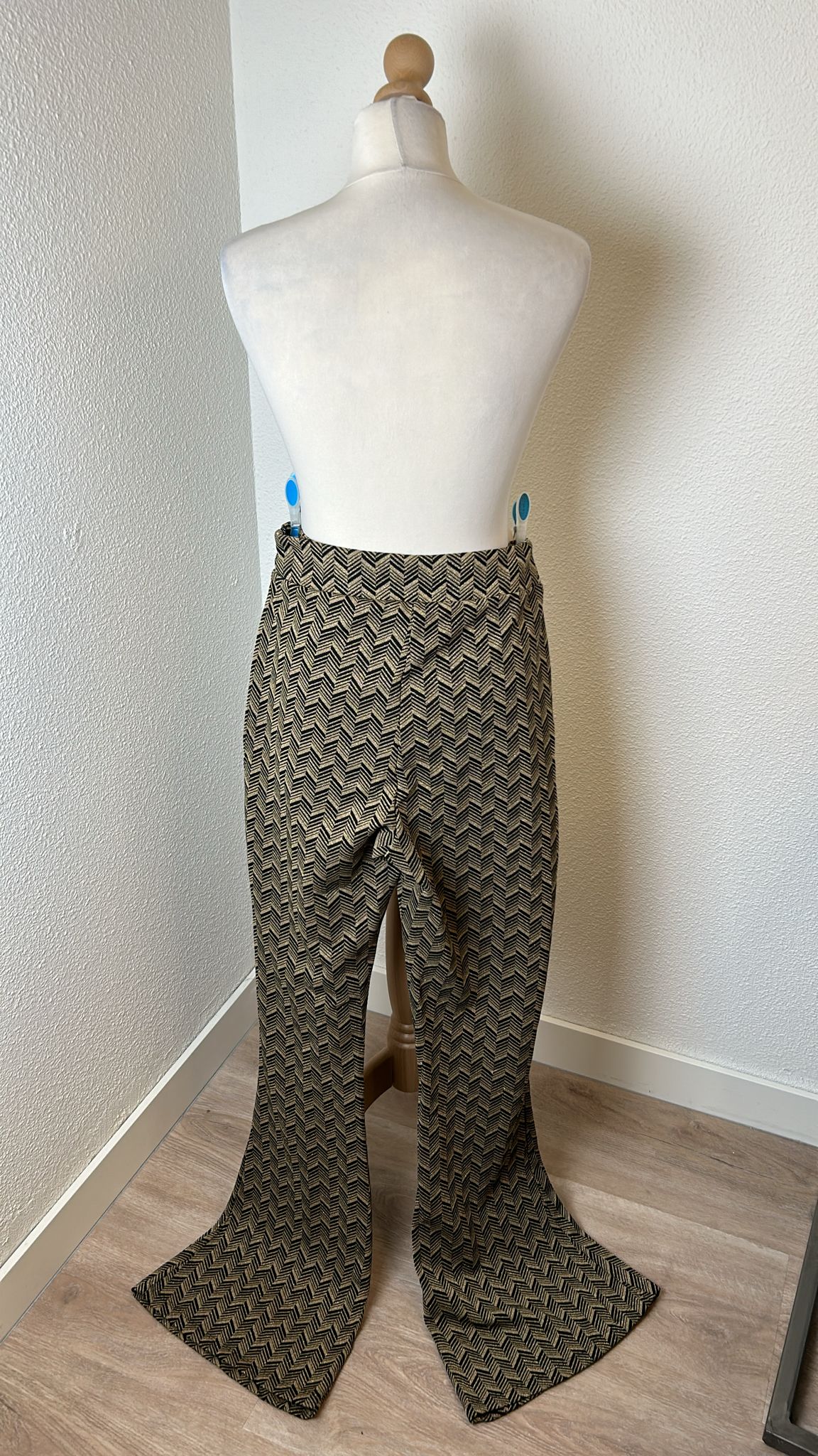 - Flare pants; tailleband met rits in de zij, uitlopende broekspijpen