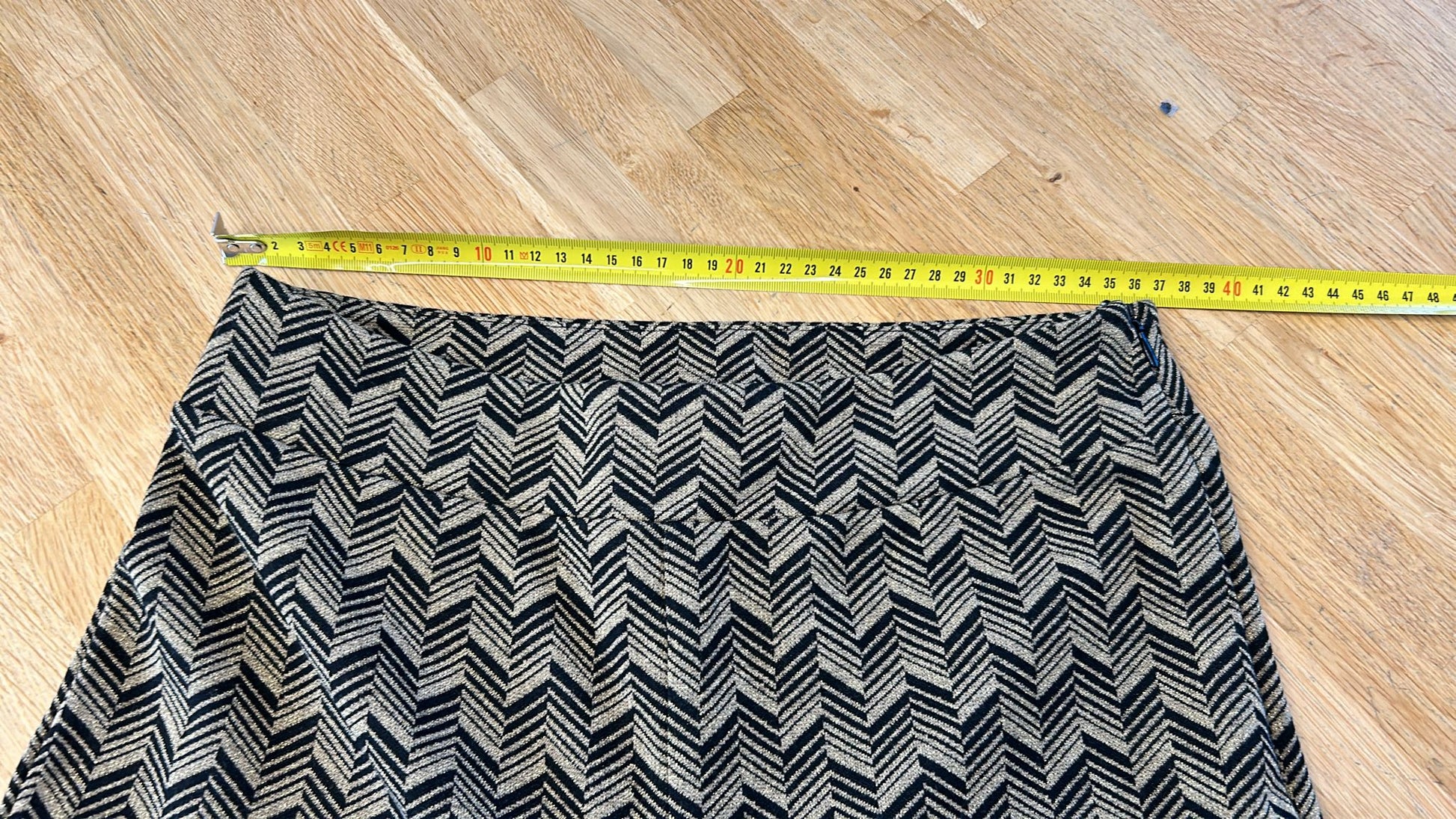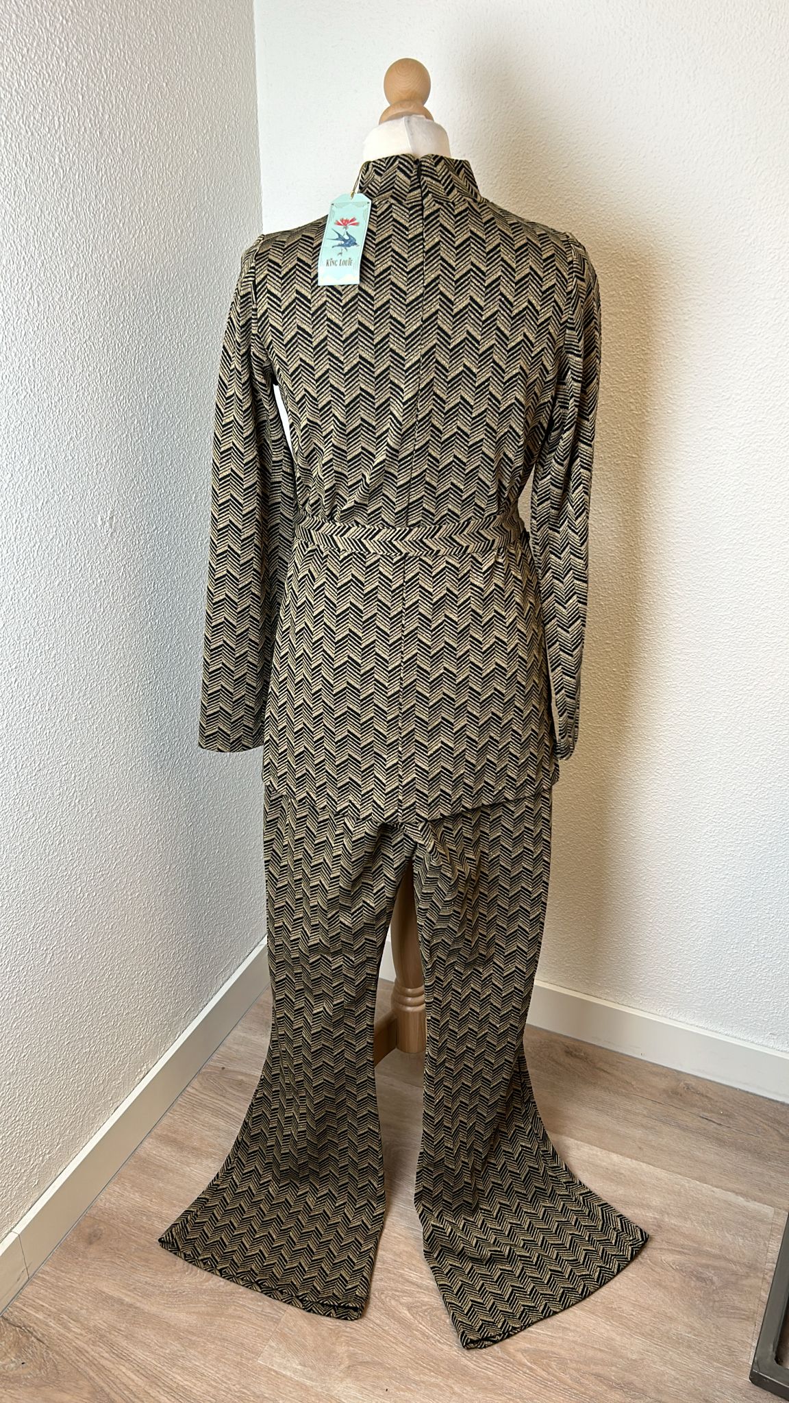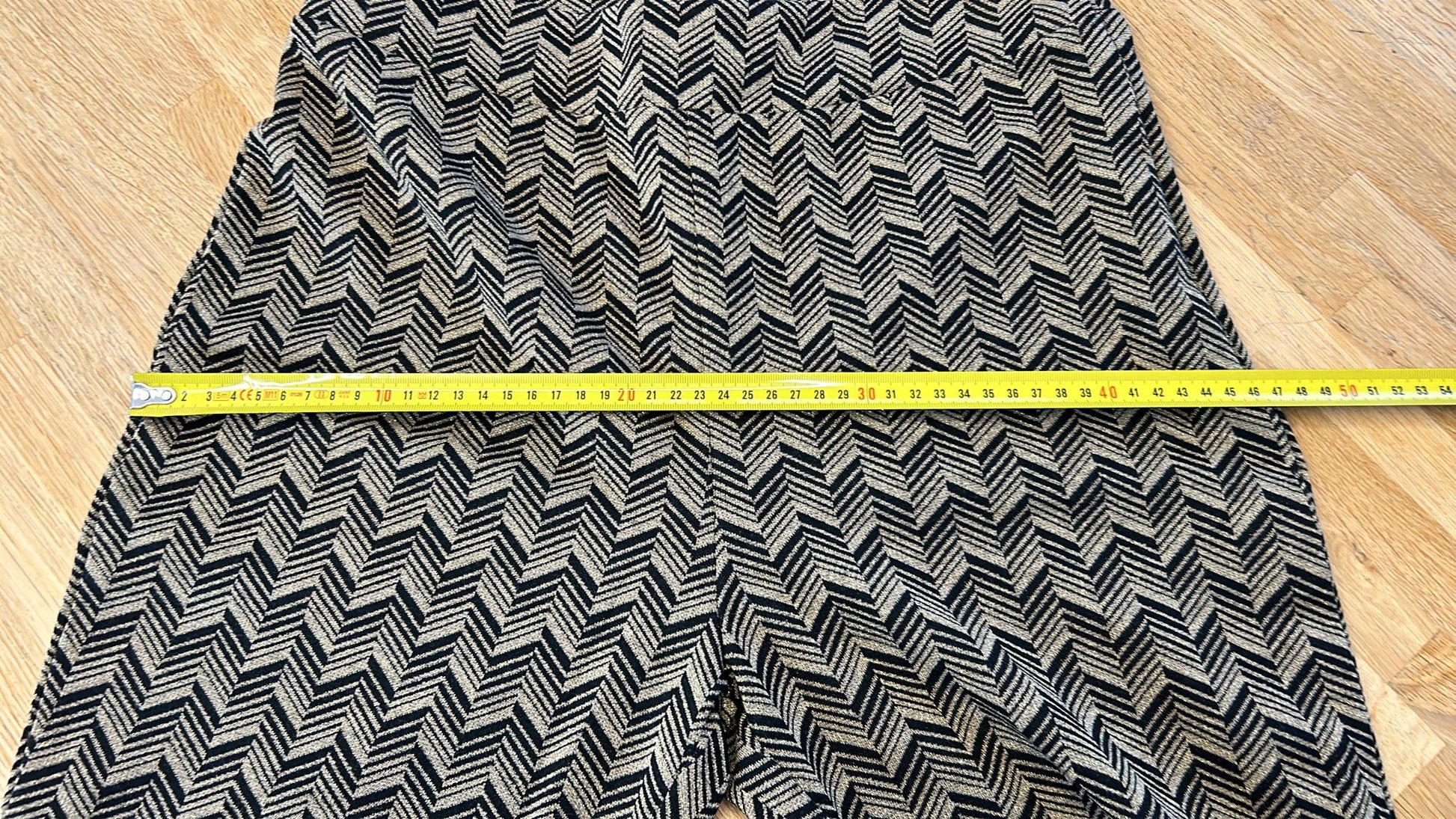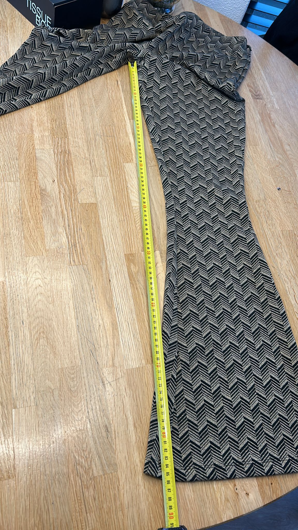 - Flare pants; tailleband met rits in de zij, uitlopende broekspijpen