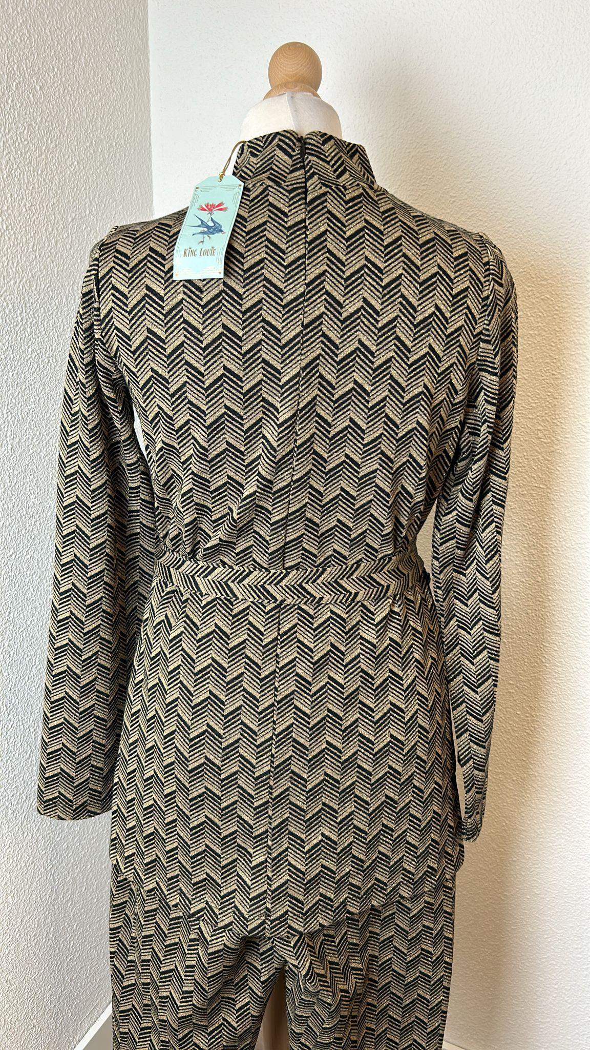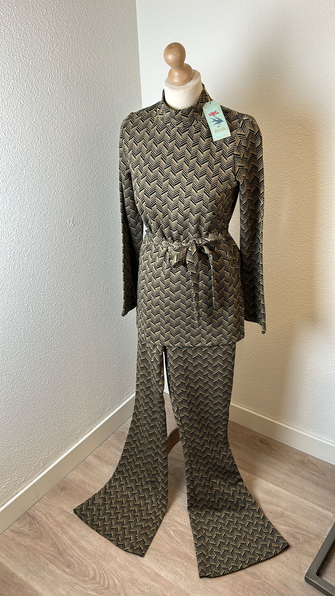 - Heliosa tunic top; kraagje met rits in de nek, lange mouwen, knooppunt rond het middel