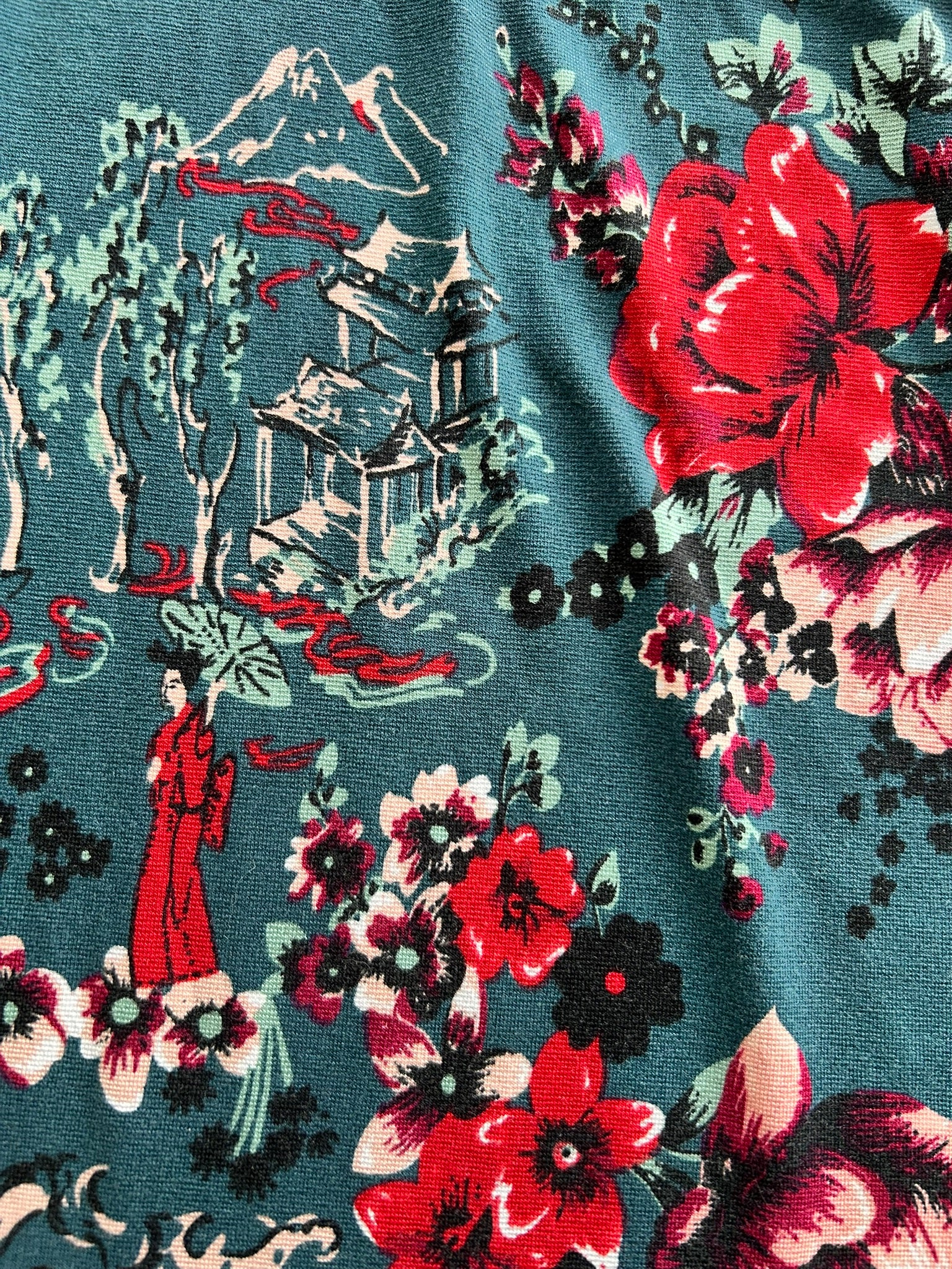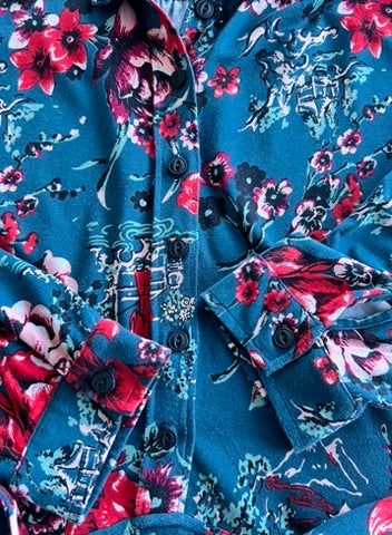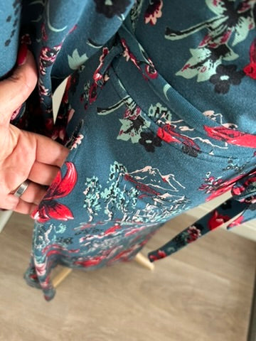 - Leuke najaars jurk in blauw met aziatische print in wit zwart rood en roze