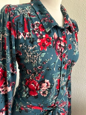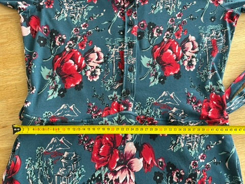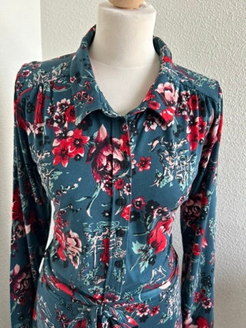 - Mooie retro grafische jurk, blouse jurk, polo model