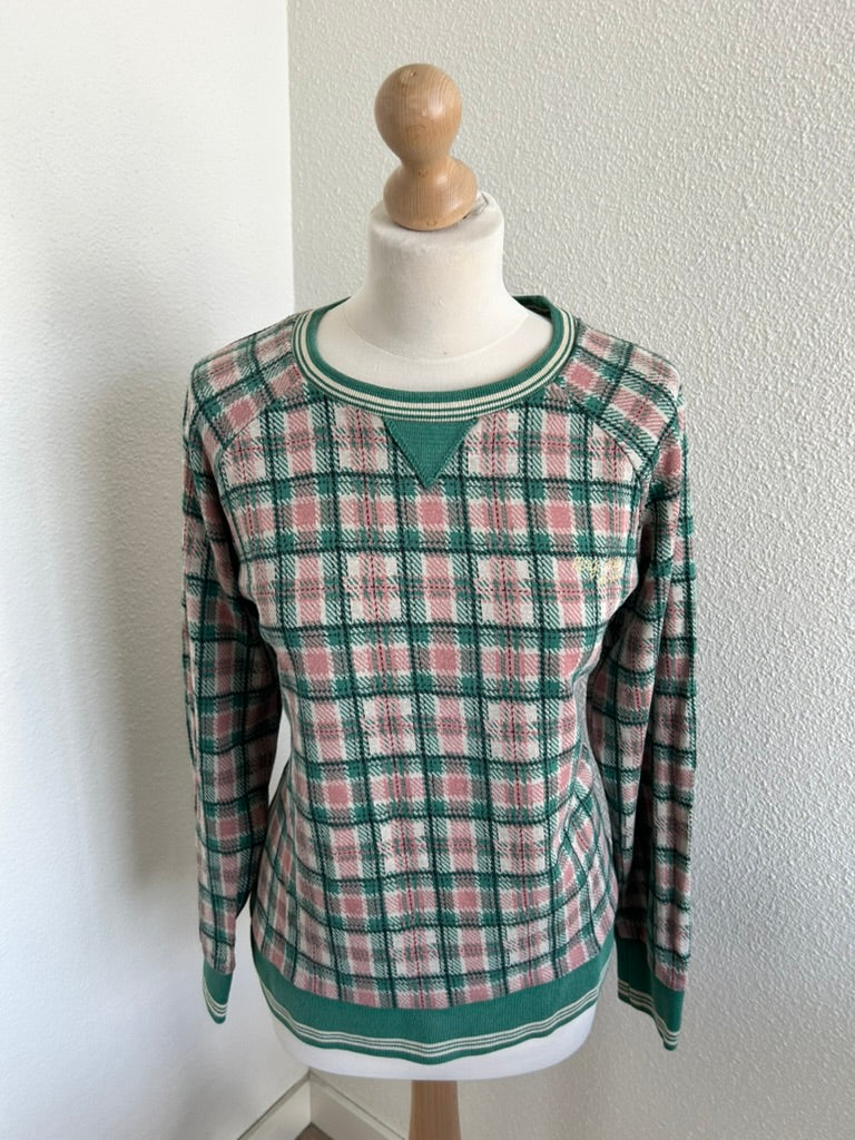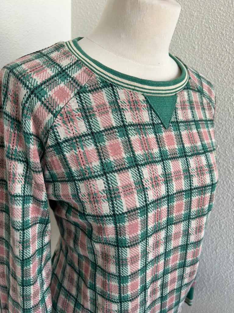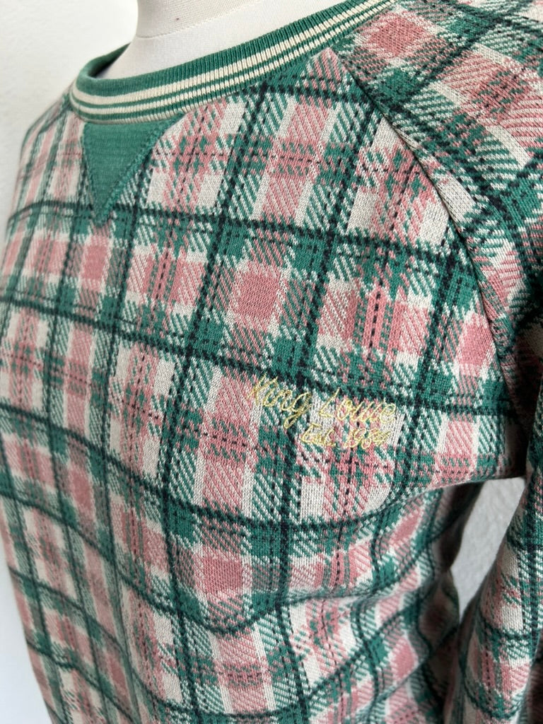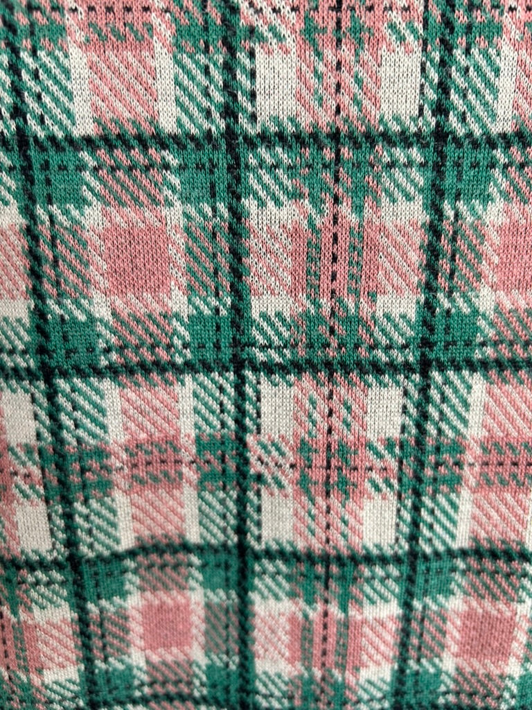 - Geruit patroon in groen met lichtroze en creme, en goud borduurwerk